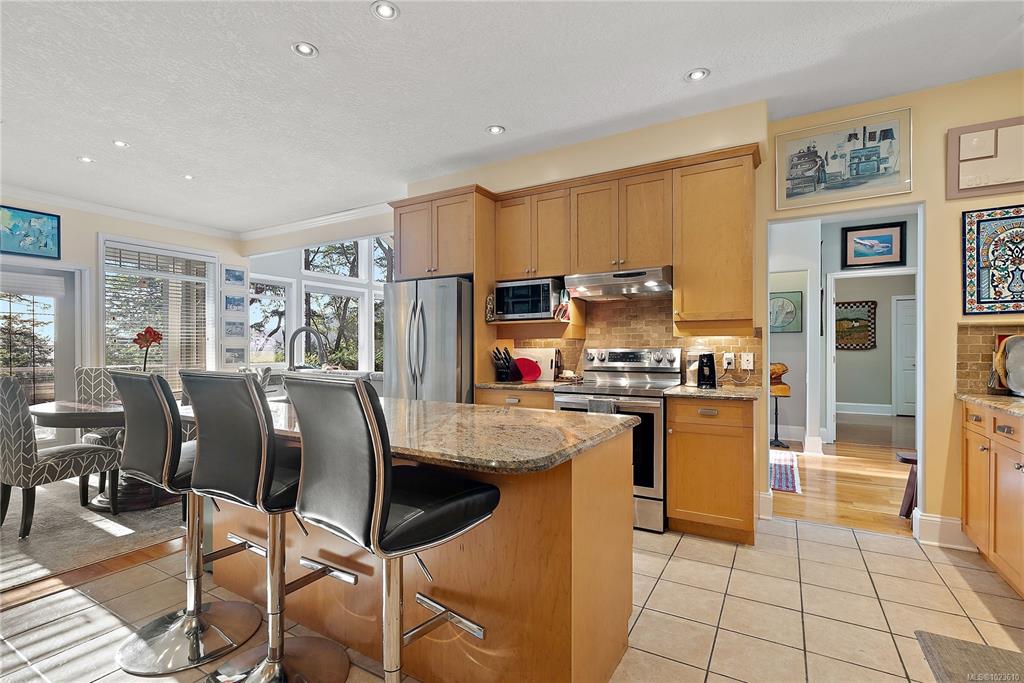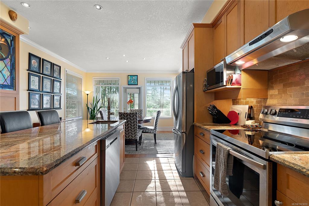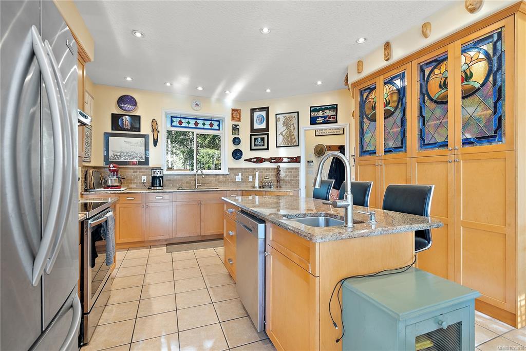 This warm & inviting custom-built rancher is set on a quiet, private forested acreage just 10 mins from Langford. The thoughtfully designed home has 3 beds, 3 baths, bonus family/hobby room which would be easy to suite with a plumbed in sink & access to the garage. This home for families or those seeking a peaceful lifestyle. Inside, vaulted ceilings & oversized windows in main living area & nine-foot ceilings throughout create a bright, open feel w/ forest views from every room. The kitchen features granit...