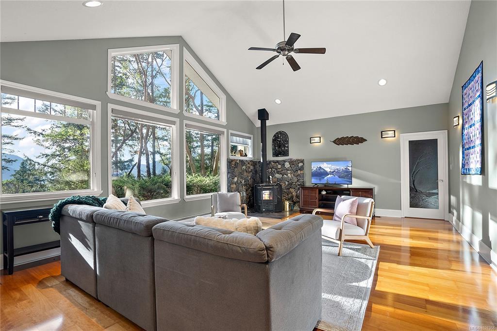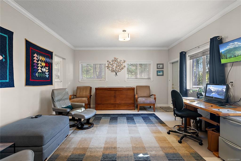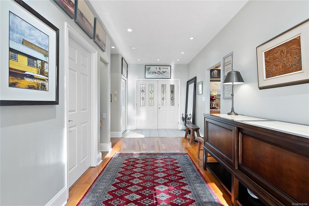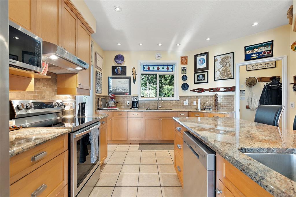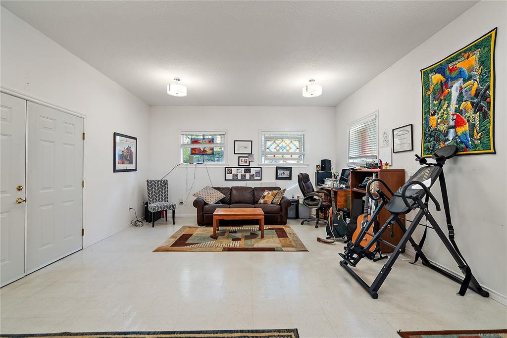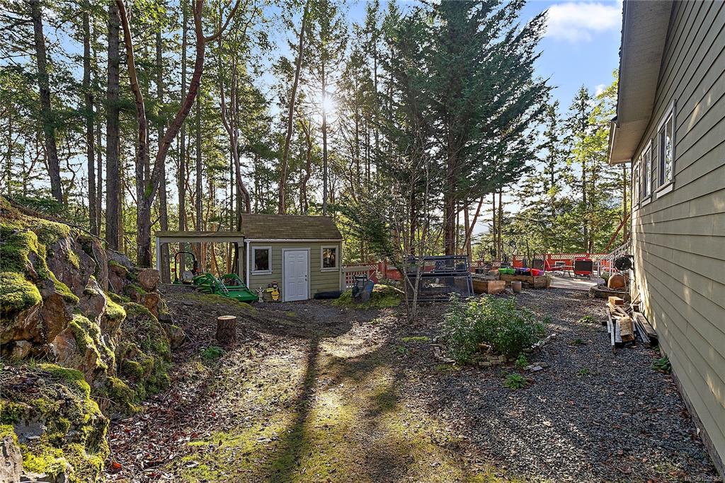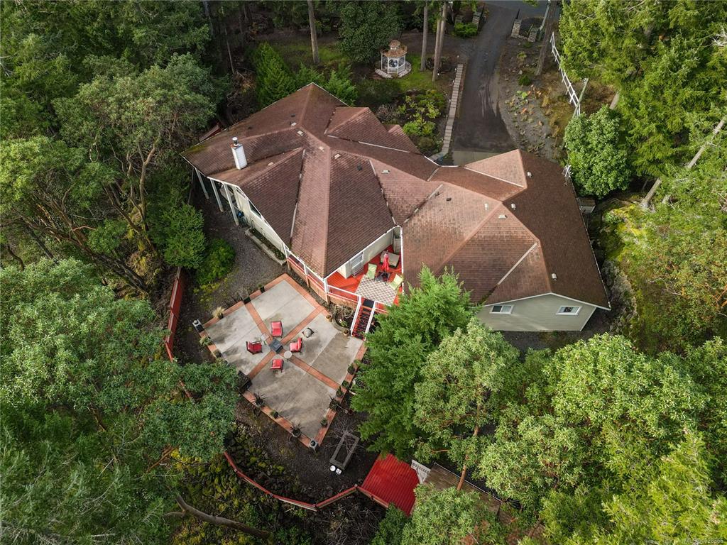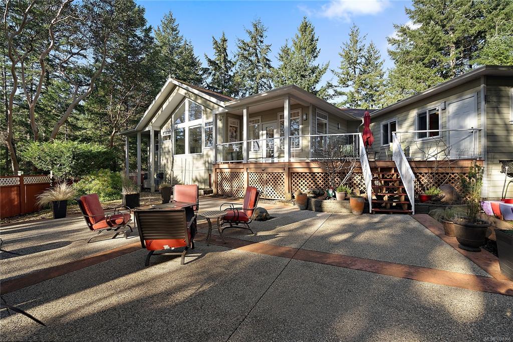 A warm & inviting custom-built rancher set on a quiet, private forested acreage just 10 mins to Langford. The thoughtfully designed home has 3 beds (one previously used as art studio, executive office, gym & music studio), 3 baths & family room. Vaulted ceilings & oversized windows in main living area & nine-foot ceilings throughout create a bright, open feel w/forest views from every room. The modern kitchen features granite counters, eating bar, abundant storage & custom stained-glass accents. The spaciou...