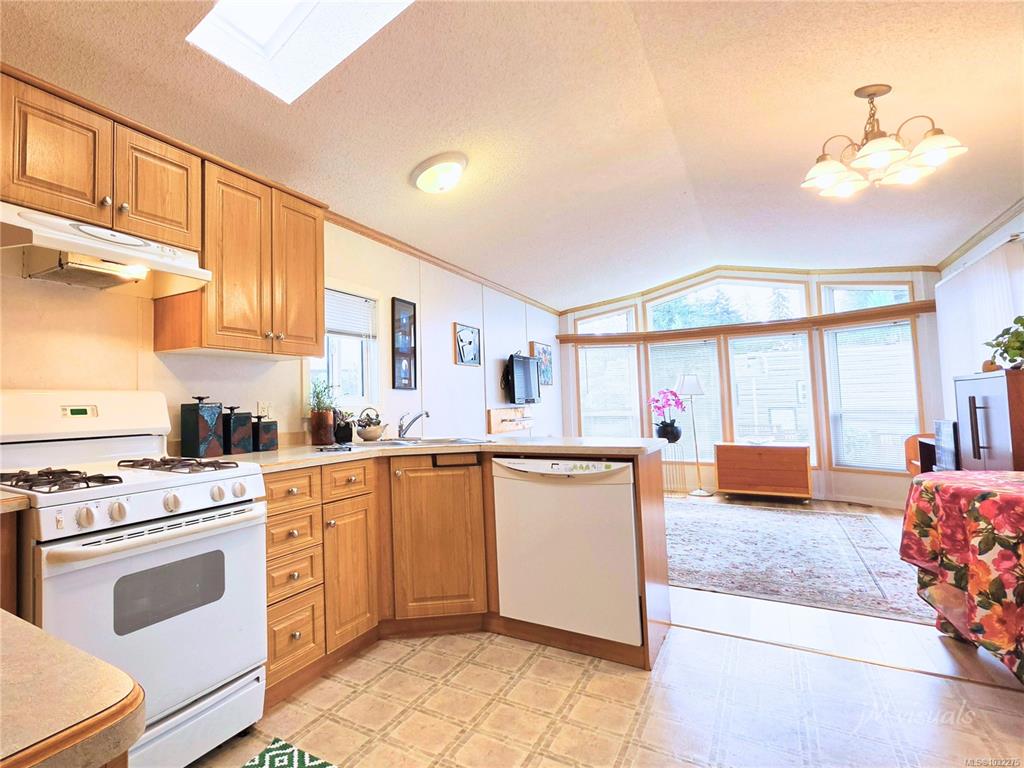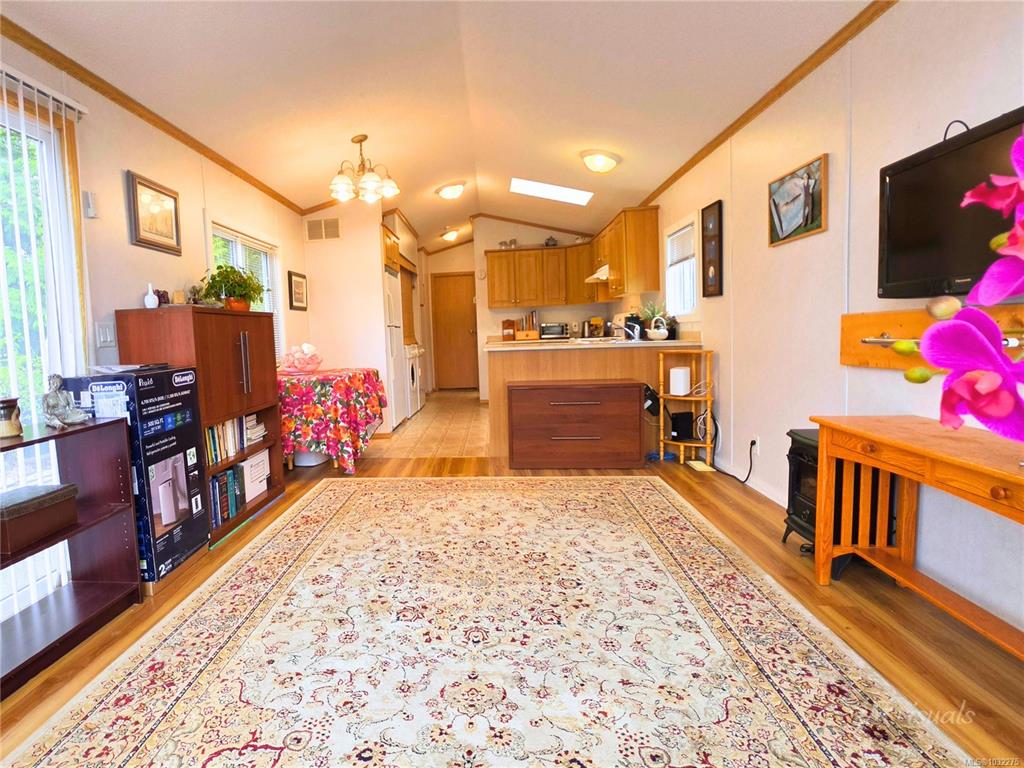 Welcome to 1128 Woss Lake Drive in Resort on the Lake, Nanaimo’s premier lakeside community on beautiful Westwood Lake. This bright, southeast facing 2004 Moduline Pacific Park Model enjoys warm morning sun and natural light into late afternoon. Inside, a cathedral style ceiling, eyebrow windows, and a kitchen skylight enhance the open layout. The kitchen features an NG stove, dishwasher, and fridge, w/dining area nearby. An in-suite washer & dryer and NG furnace add comfort. The private rear bedroom includ...