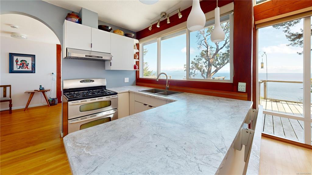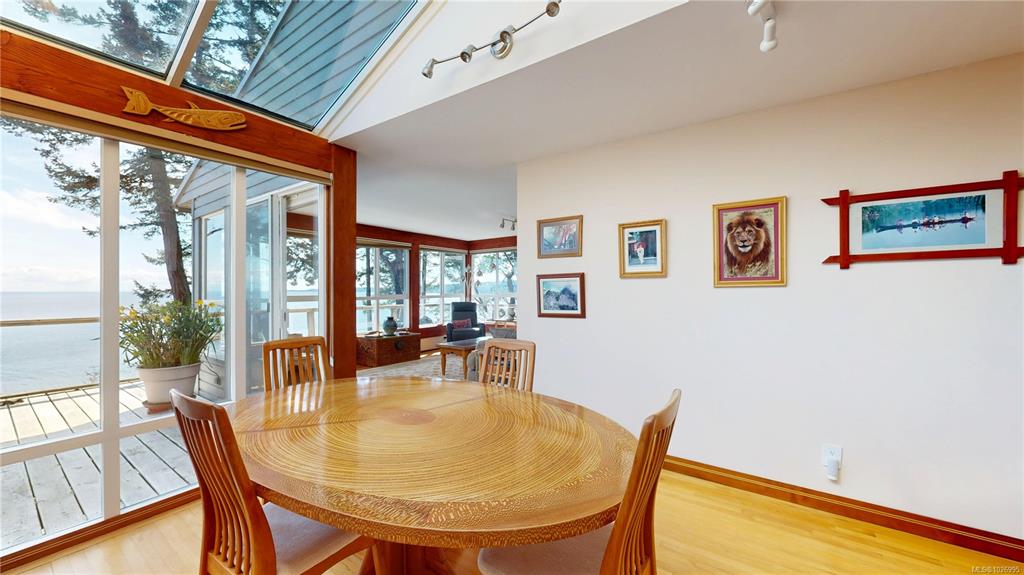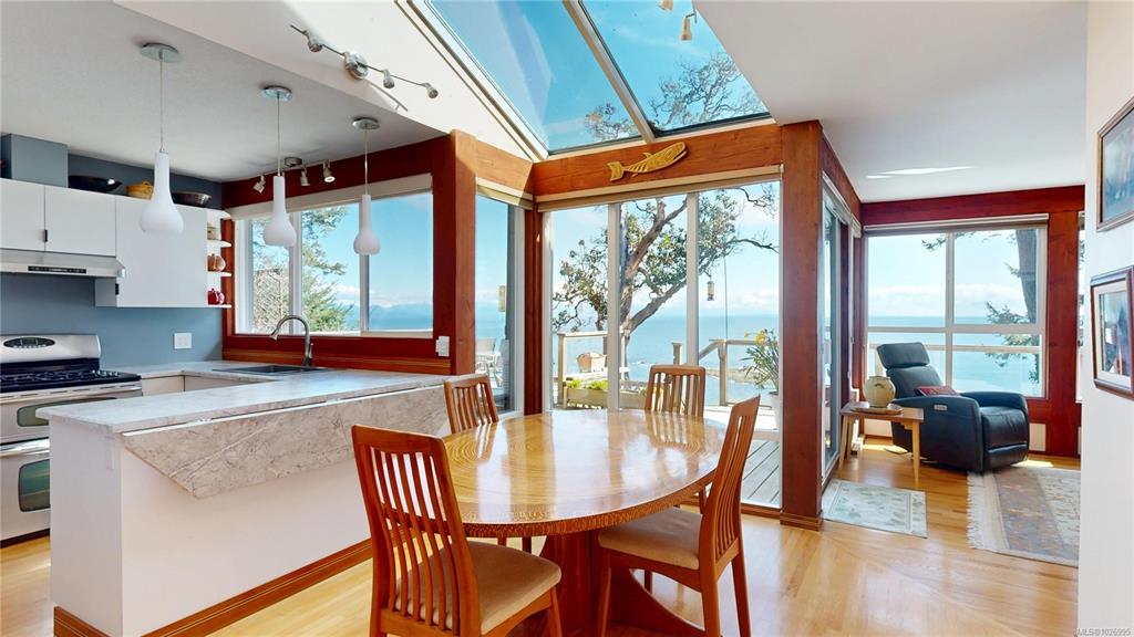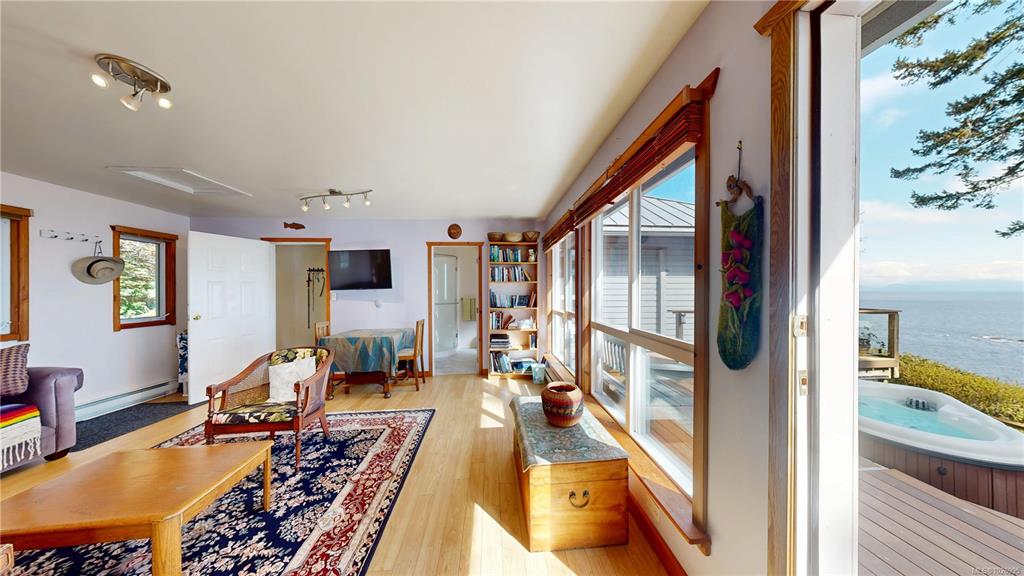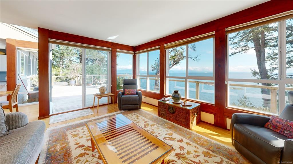 Set on 1.16 acres in a very private waterfront setting, this architect-designed 3-bedroom, 3-bathroom home takes full advantage of its incredible position, with sweeping views across the Salish Sea to the snow-covered mountains beyond. The open-plan design feels connected, comfortable, and full of light, with large windows framing the views from almost every room.It’s a home that immediately draws you in—feeling like stepping into a picture.Wood siding blends into the natural setting, with a heat pump and ...