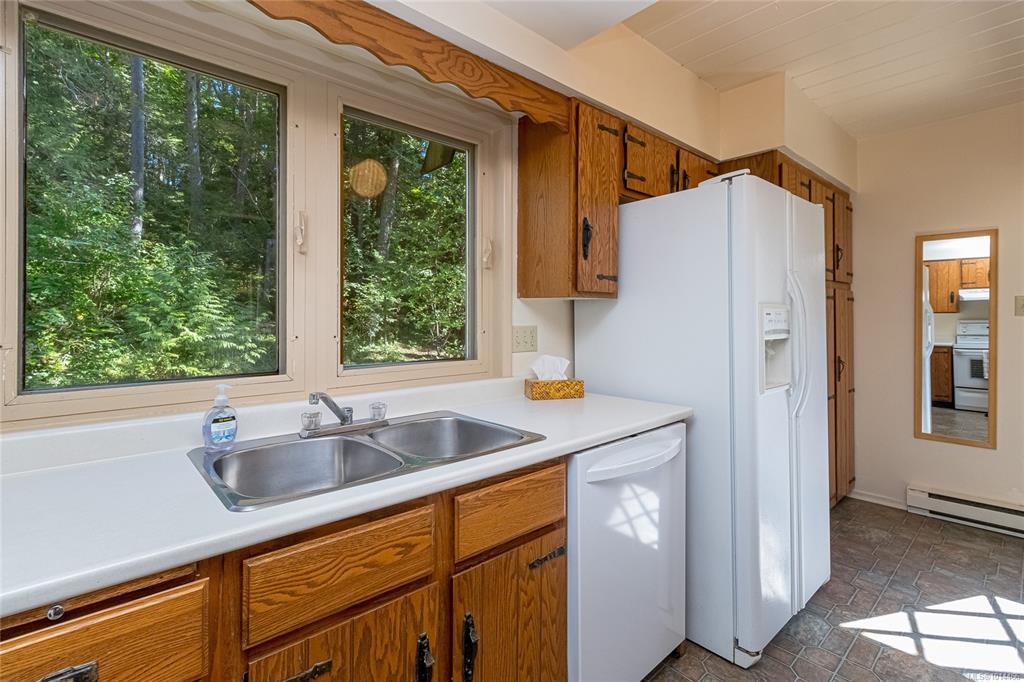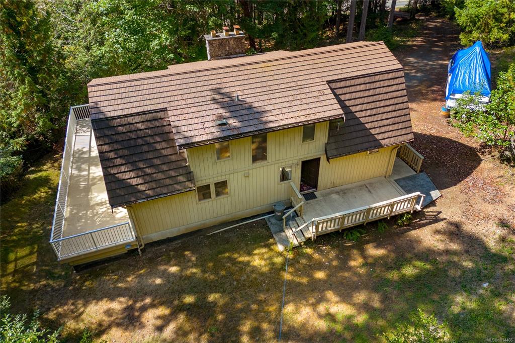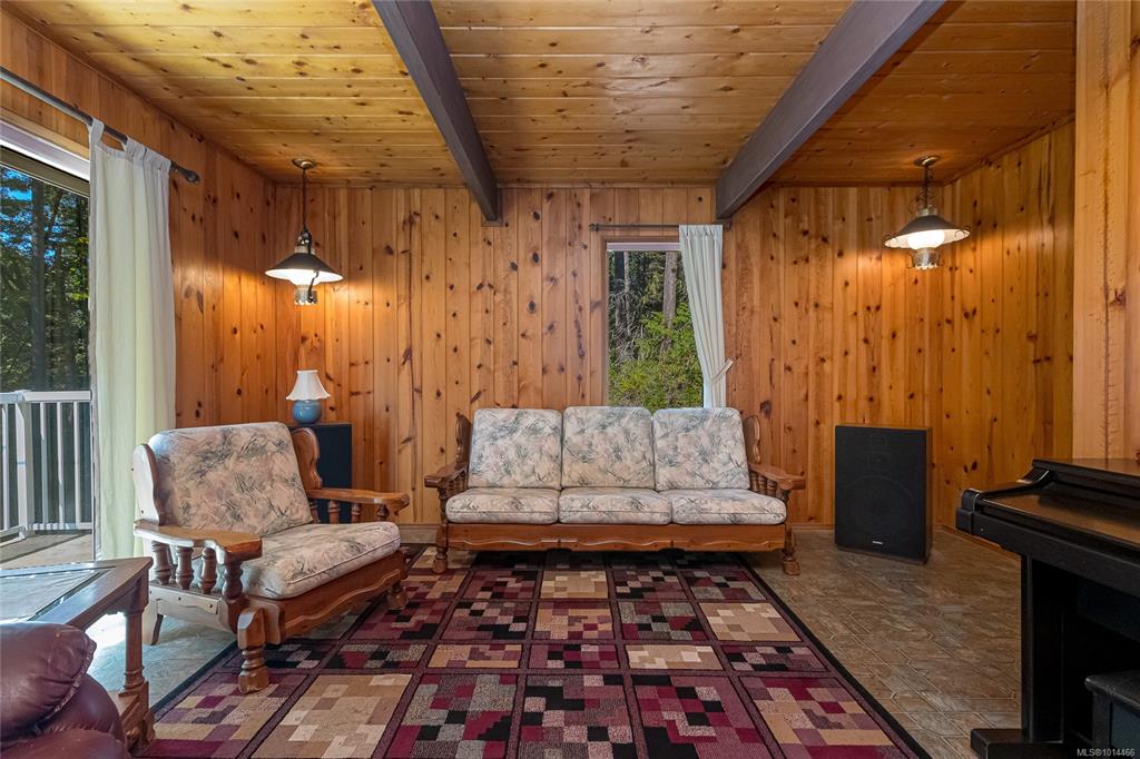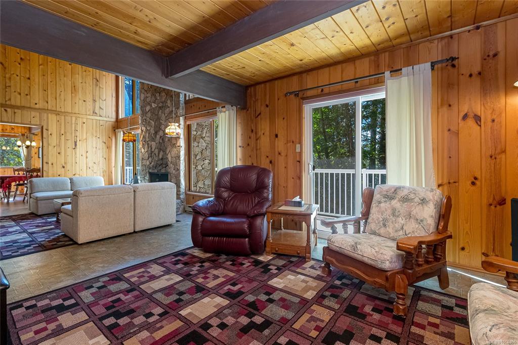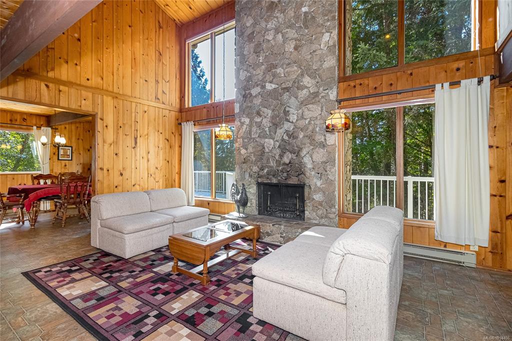 Escape to a private, serene 2-acre retreat, offering exceptional subdivision potential with 2 road frontages. This unique Lindal Cedar home welcomes you with a stunning, 2-story vaulted living room featuring a cozy rock fireplace & expansive windows that frame beautiful forest views. The main level has a classic kitchen & dining area, both with doors leading to a spacious, wrap-around sundeck. Inside, enjoy natural beauty with tongue-and-groove pine walls, ceilings, & exposed wooden beams. The durable metal...