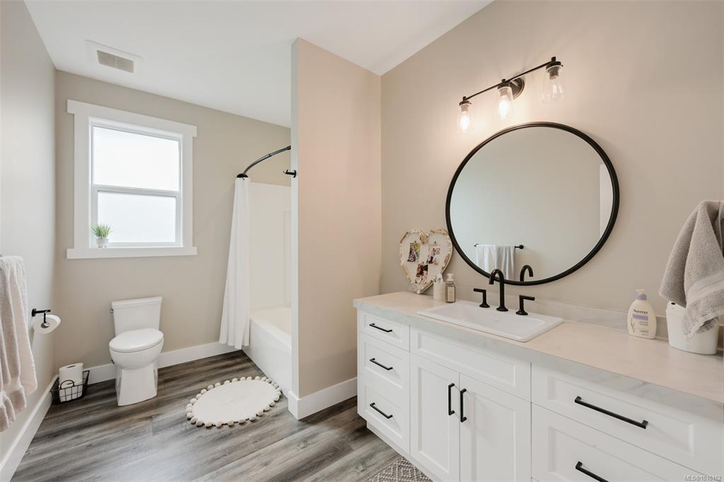 2022 built 2500+sqft four bedroom three bathroom home at Malahat Forest Estates! Three bed two bath main residence with bonus 500+sqft rec room and two garages on the lower level. Legal one bedroom suite with private entry and insuite laundry is an ideal mortgage helper. Well laid out floorplan with open concept main level featuring vaulted ceilings, heat pump for year round comfort, 16x12 primary bedroom with luxurious ensuite, gourmet kitchen with quartz countertops, shaker cabinets and stainless steel ap...