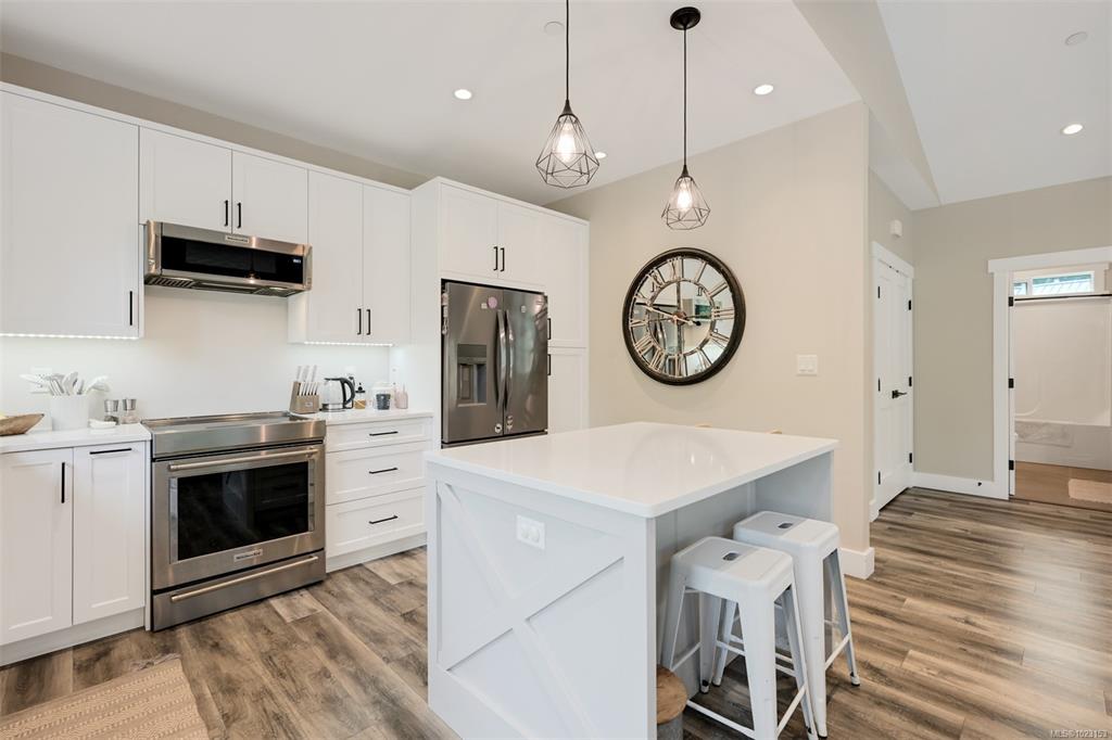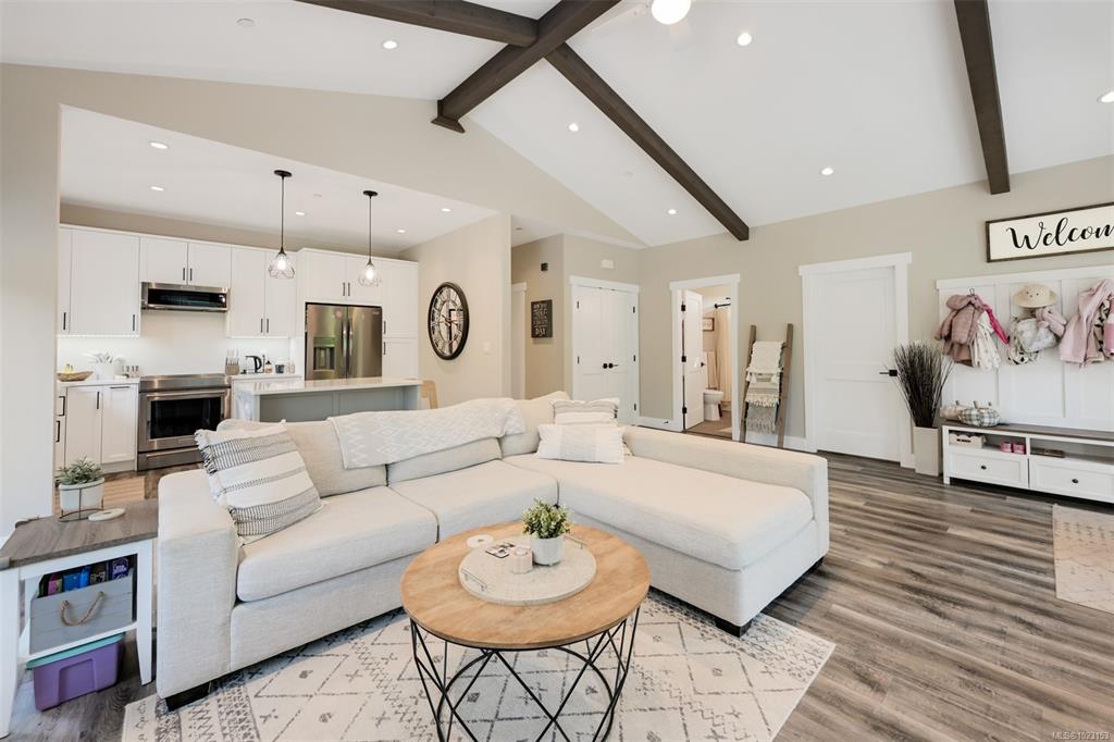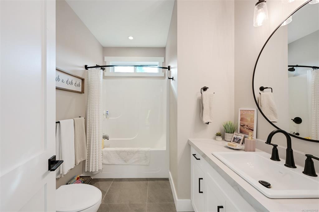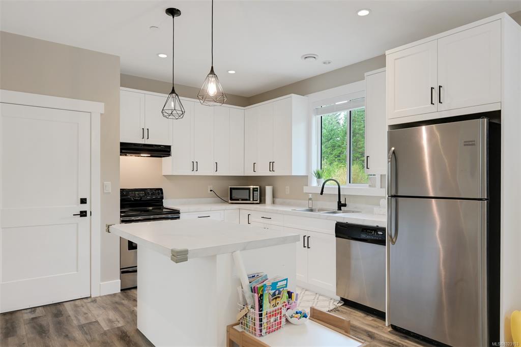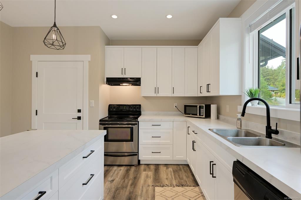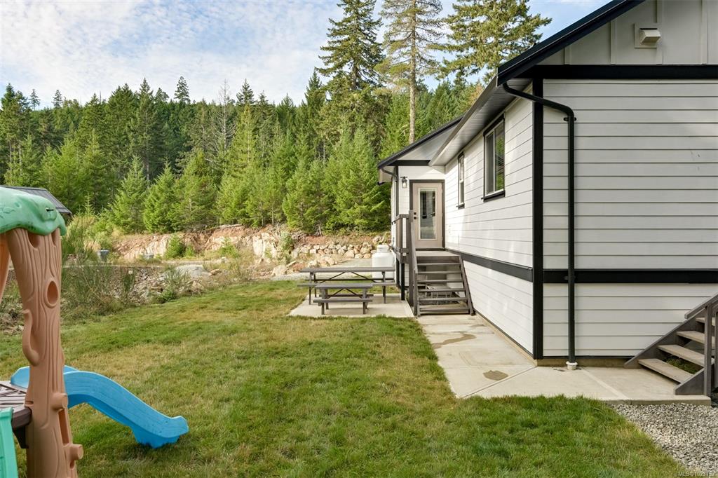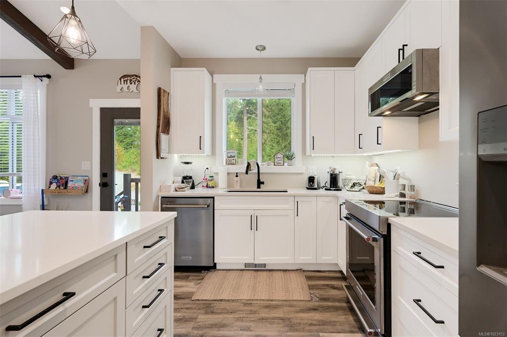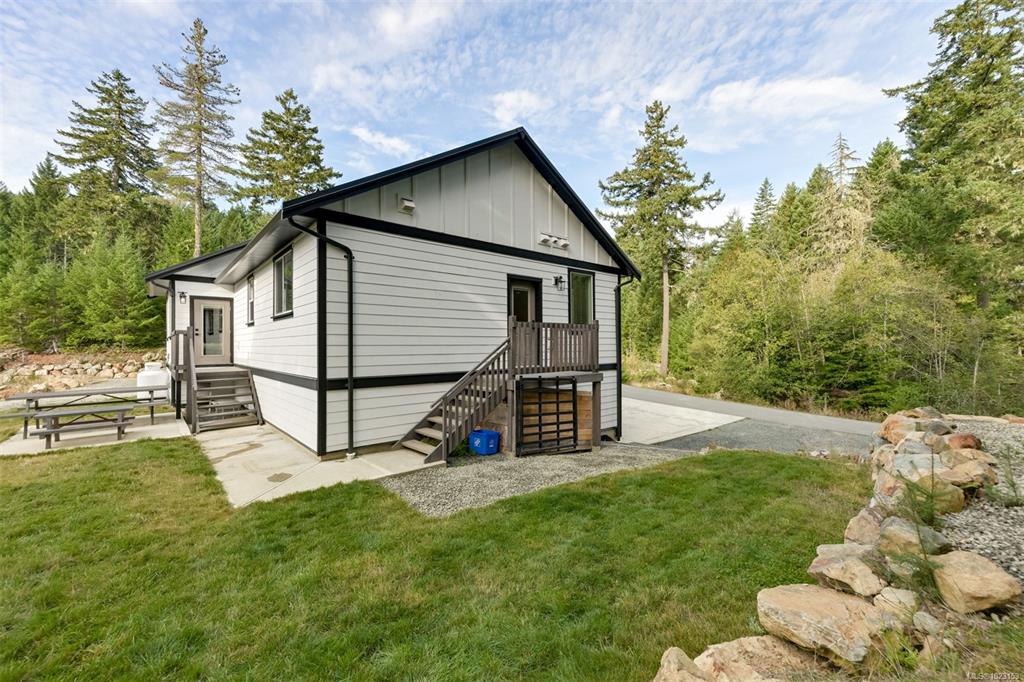 2022 built 2500+sqft four bedroom three bathroom home at Malahat Forest Estates! Three bed two bath main residence with bonus 500+sqft rec room and two garages on the lower level. Legal one bedroom suite with private entry and insuite laundry is an ideal mortgage helper. Well laid out floorplan with open concept main level featuring vaulted ceilings, heat pump for year round comfort, 16x12 primary bedroom with luxurious ensuite, gourmet kitchen with quartz countertops, shaker cabinets and stainless steel ap...