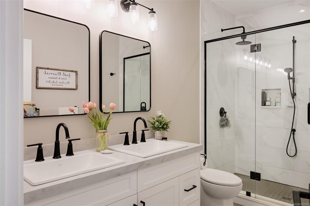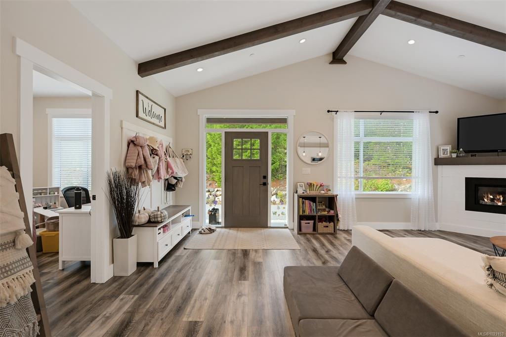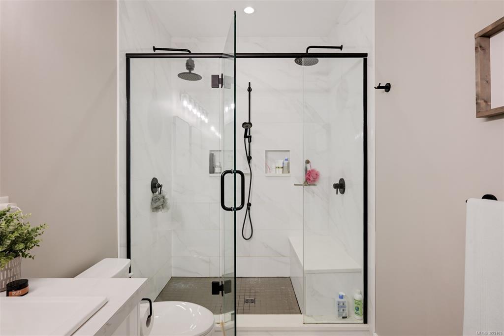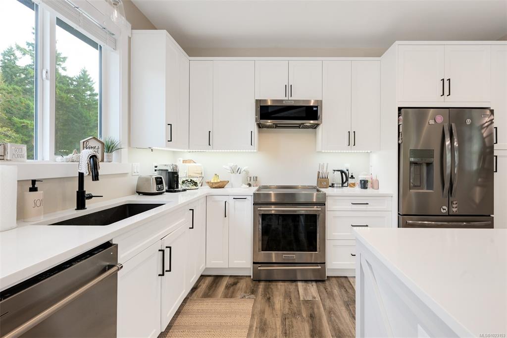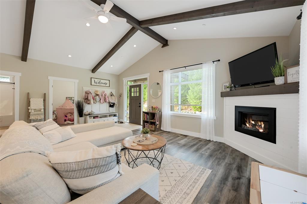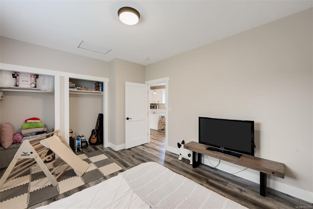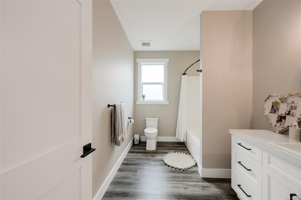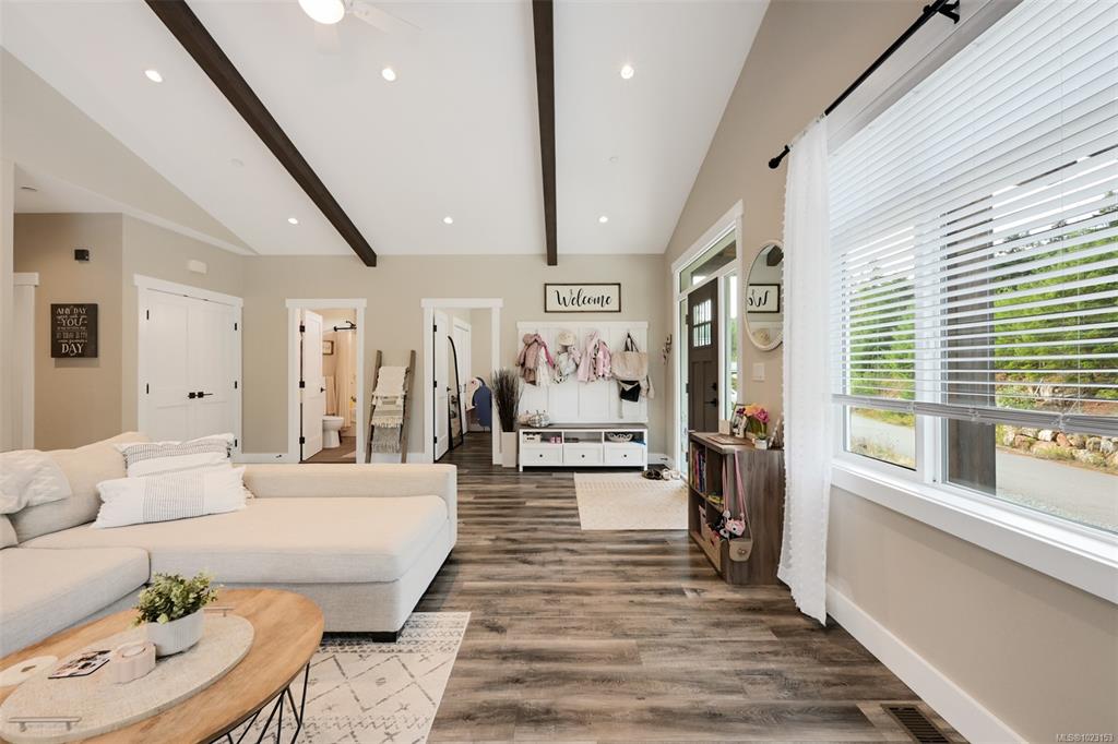 2022 built 2500+sqft four bedroom three bathroom home at Malahat Forest Estates! Three bed two bath main residence with bonus 500+sqft rec room and two garages on the lower level. Legal one bedroom suite with private entry and insuite laundry is an ideal mortgage helper. Well laid out floorplan with open concept main level featuring vaulted ceilings, heat pump for year round comfort, 16x12 primary bedroom with luxurious ensuite, gourmet kitchen with quartz countertops, shaker cabinets and stainless steel ap...