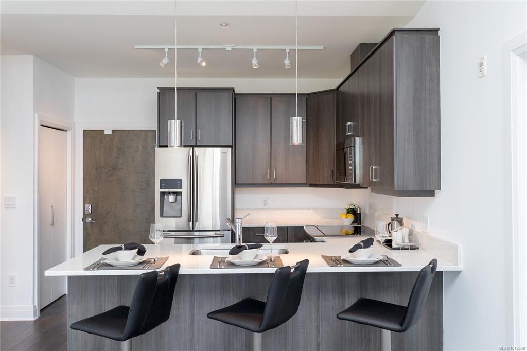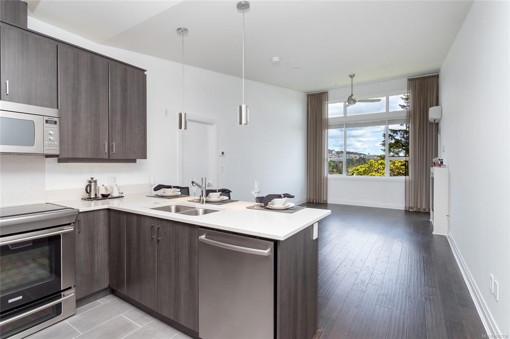 Act now and be Home for the Holidays! TOP FLOOR UNIT Perched on a hill offering sweeping, spectacular water views, & gorgeous mountain views, this tranquil 2 bed + 2 bath residence is elevated above it all. A private sanctuary featuring exquisitely upgraded interior, including 12' vaulted ceilings, a Heat Pump to keep you cool in summer, high-end appliances, rich hardwood floors, custom closet organizers, & elegant floor-to-ceiling custom draperies. The chef’s kitchen blends beauty & function, & expansive w...