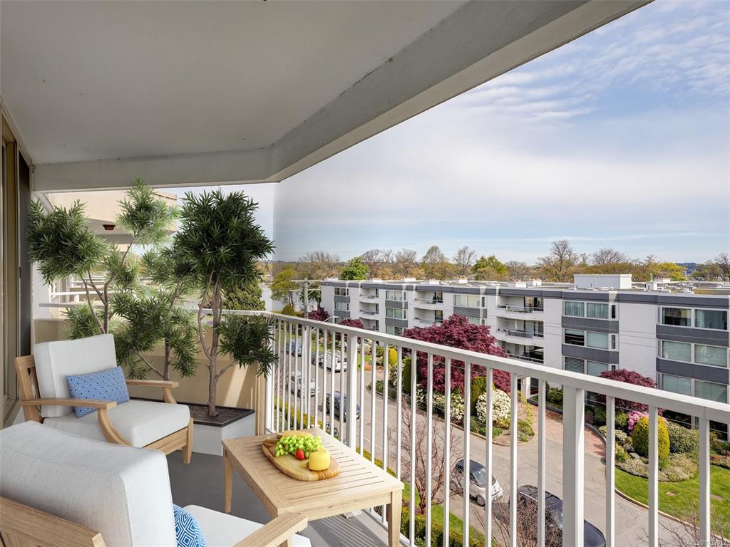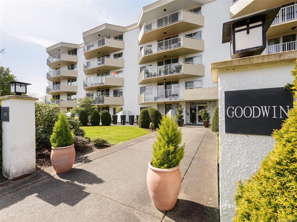 Welcome to 506, 1148 Goodwin Street.April 25th Located in South Oak Bay located off Windsor and Beach Drive.Highly desirable layout + arguably the best location in the building. With two Bedrooms and two Bathrooms this Top Floor Corner unit is fresh, bright, and inviting. Newer Vinyl Plank floors in the Living + Dining Room. Well maintained by the current owners. Large Living room leads to a spacious balcony ideal for enjoying a warm sunny morning. Generous sized principle rooms, thermal windows, and in-u...