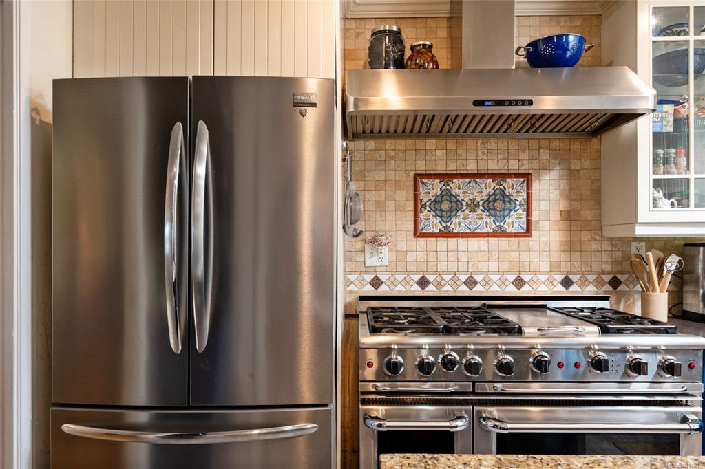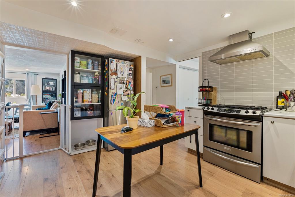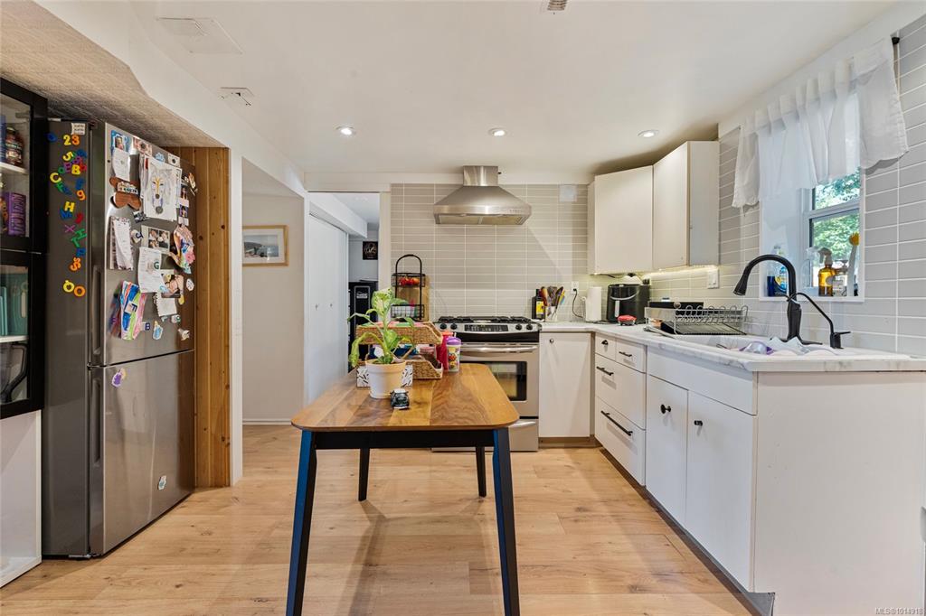 NEW Listing! Tucked away on a quiet cul-de-sac in a family-oriented neighbourhood, this 2000+ sq ft home backs onto ALR forest for ultimate privacy. Steps from schools, parks, & the Galloping Goose Trail, offering a unique interior w hardwood floors & updated powder room, w lower level in-law suite complete w its own washer/dryer, fridge, & gas stove. Chef’s kitchen boasts premium appliances: Capital gas range ($6K), JennAir dishwasher ($2K), & Frigidaire fridge ($1.2K). Additional features incl: Attached c...