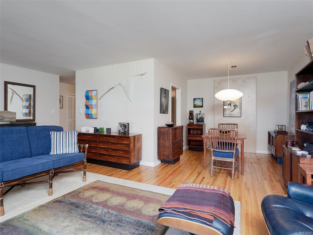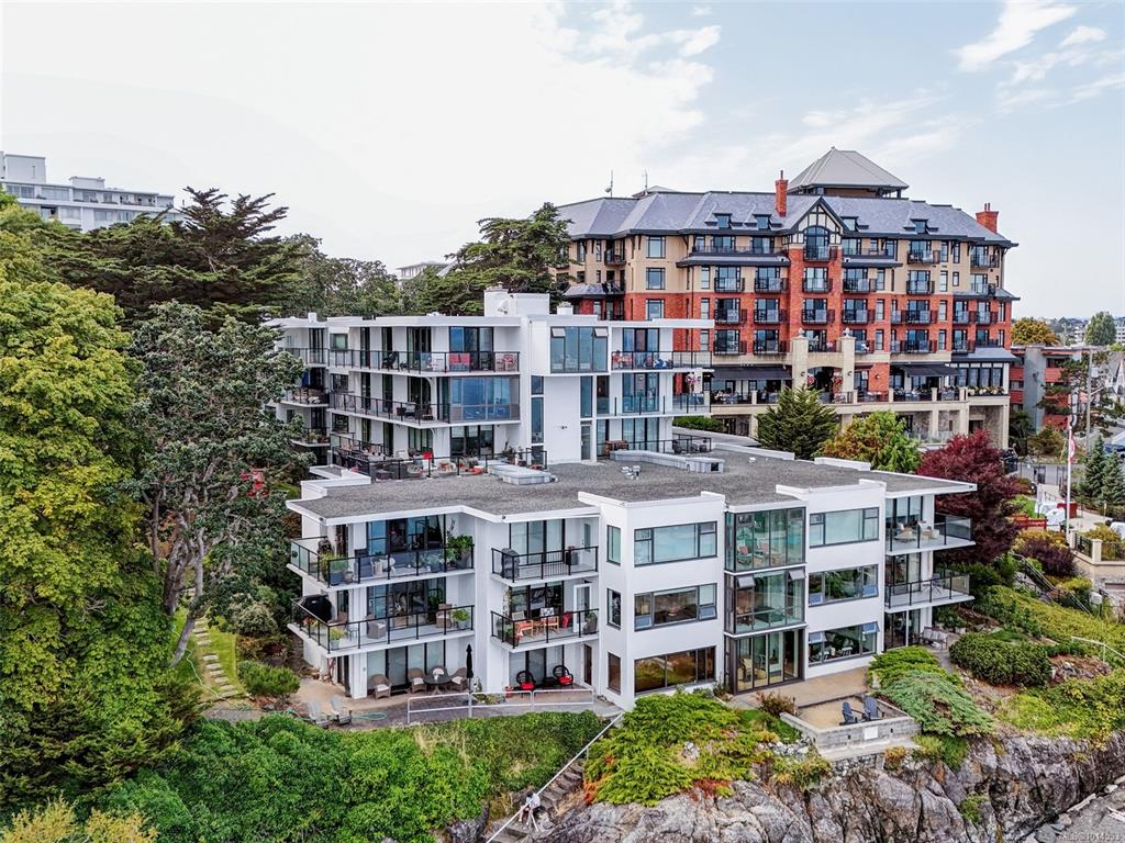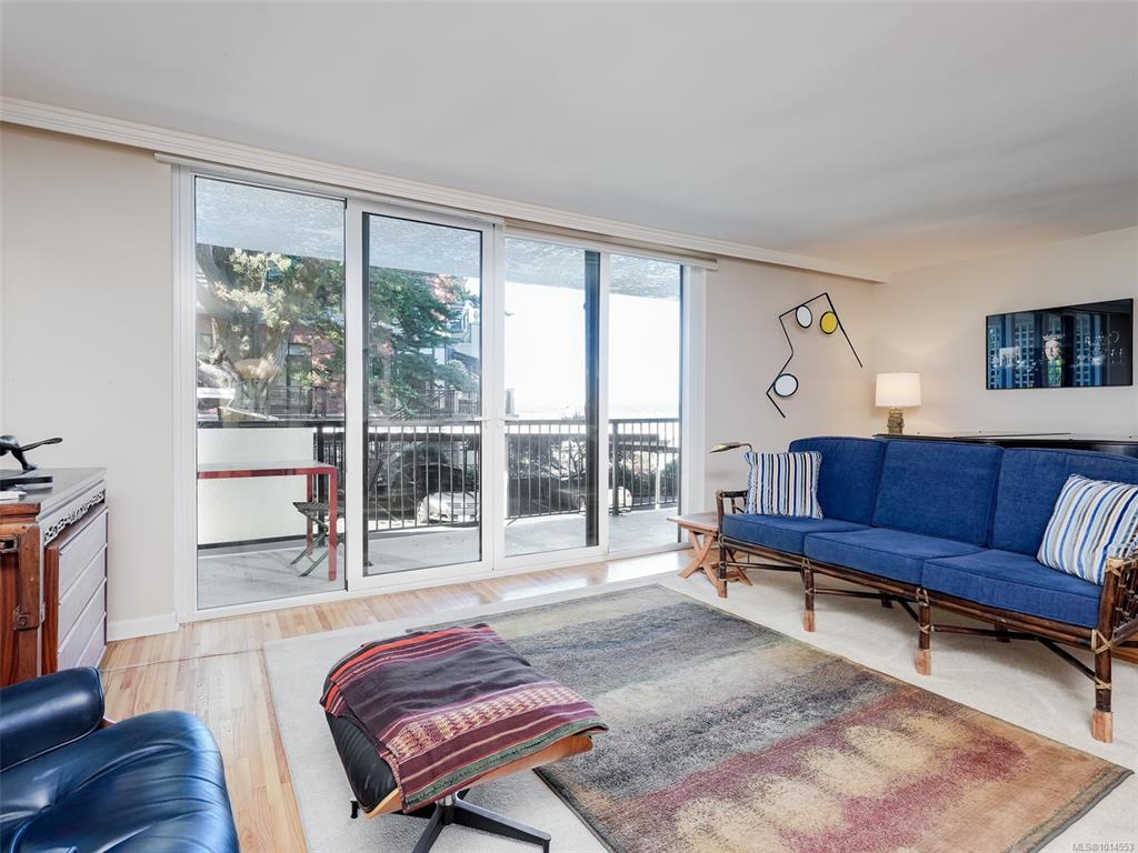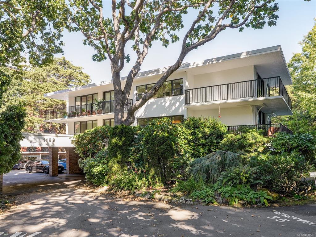 Welcome to this well maintained one bedroom/one bathroom pet friendly unit in the ideally located Hampshire House with delicious ocean views! Tucked away off Beach Drive this 866 square foot well laid out condo features oak floors, generous living/dining area with ocean views and access to the large deck through the floor to ceiling sliding glass doors, galley kitchen and large bedroom with a Murphy bed. This classic modernist steel and concrete building includes a guest suite, common viewing lounge with ex...