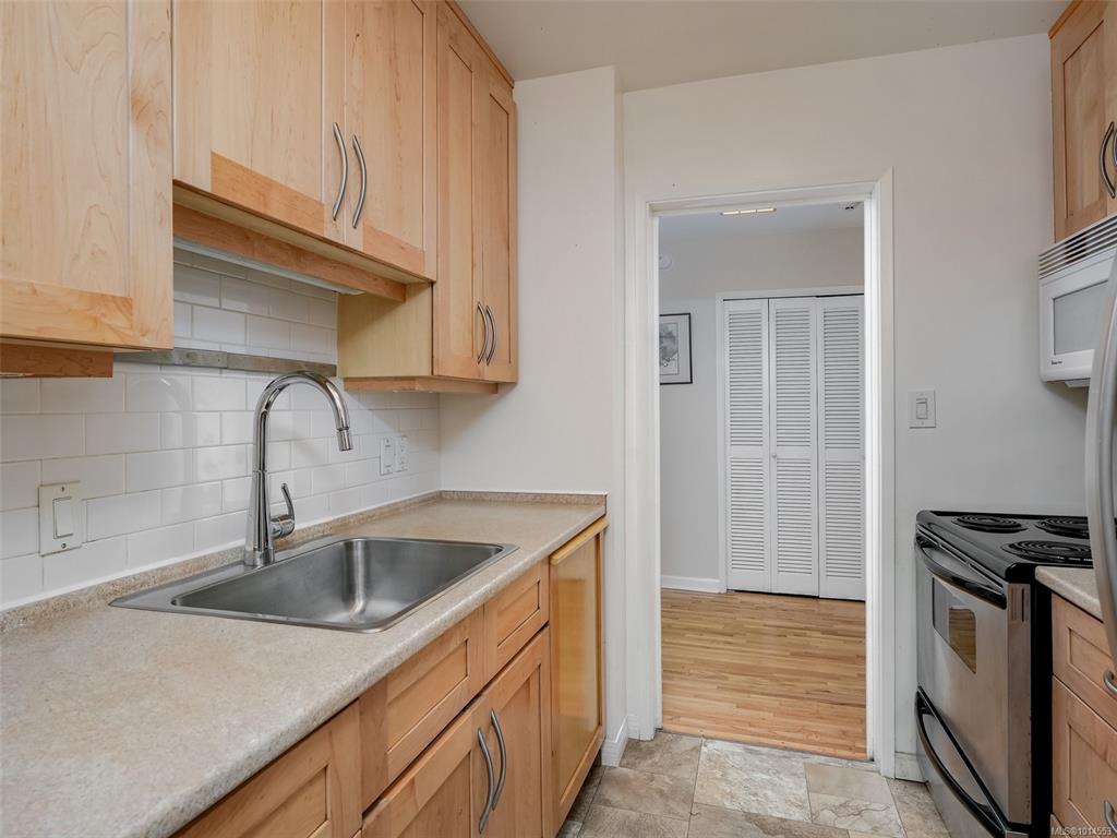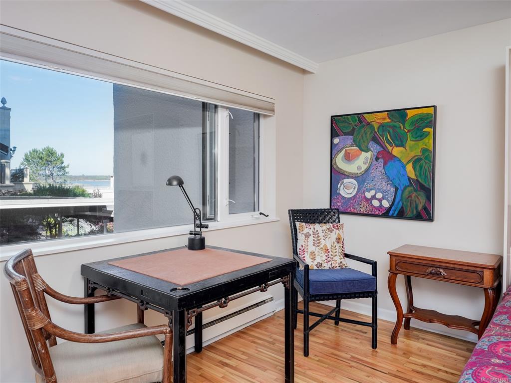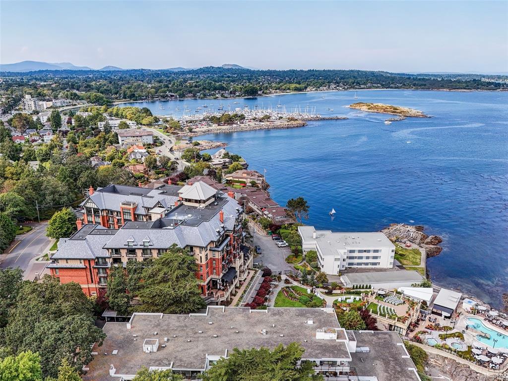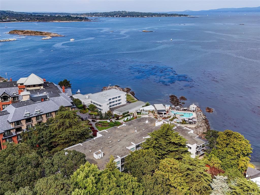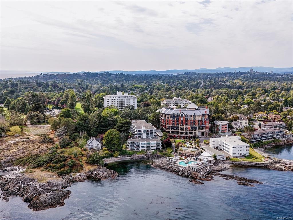 Welcome to this well maintained one bedroom/one bathroom pet friendly unit in the ideally located Hampshire House with delicious ocean views! Tucked away off Beach Drive this 866 square foot well laid out condo features oak floors, generous living/dining area with ocean views and access to the large deck through the floor to ceiling sliding glass doors, galley kitchen and large bedroom with a Murphy bed. This classic modernist steel and concrete building includes a guest suite, common viewing lounge with ex...