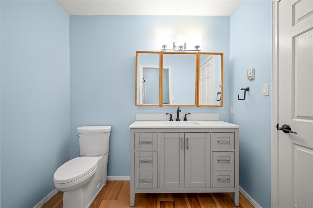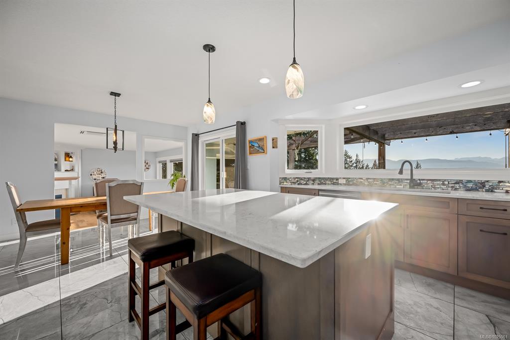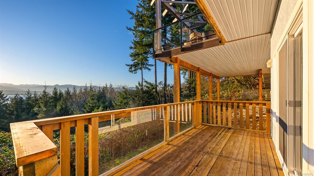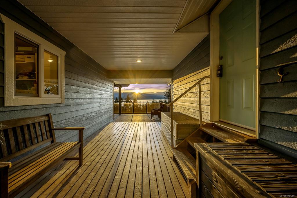 Enjoy panoramic ocean views of the Georgia Strait, Goose Spit, Mt. Washington, and the Comox Glacier from the expansive back deck—perfect for entertaining and watching eagles soar. Views continue from the kitchen, living room, primary bedroom, and lower-level family room. Set on a private 1.3-acre no-through road, this 4-bedroom plus den, 3-bath home offers outstanding flexibility. In-floor heated tile floors, updated gas fireplaces, and a gas stove, oven, and dryer enhance everyday living. Twenty-Five sola...