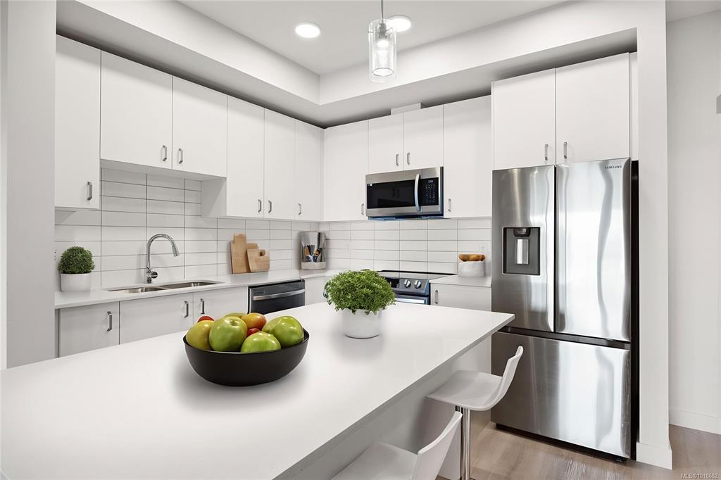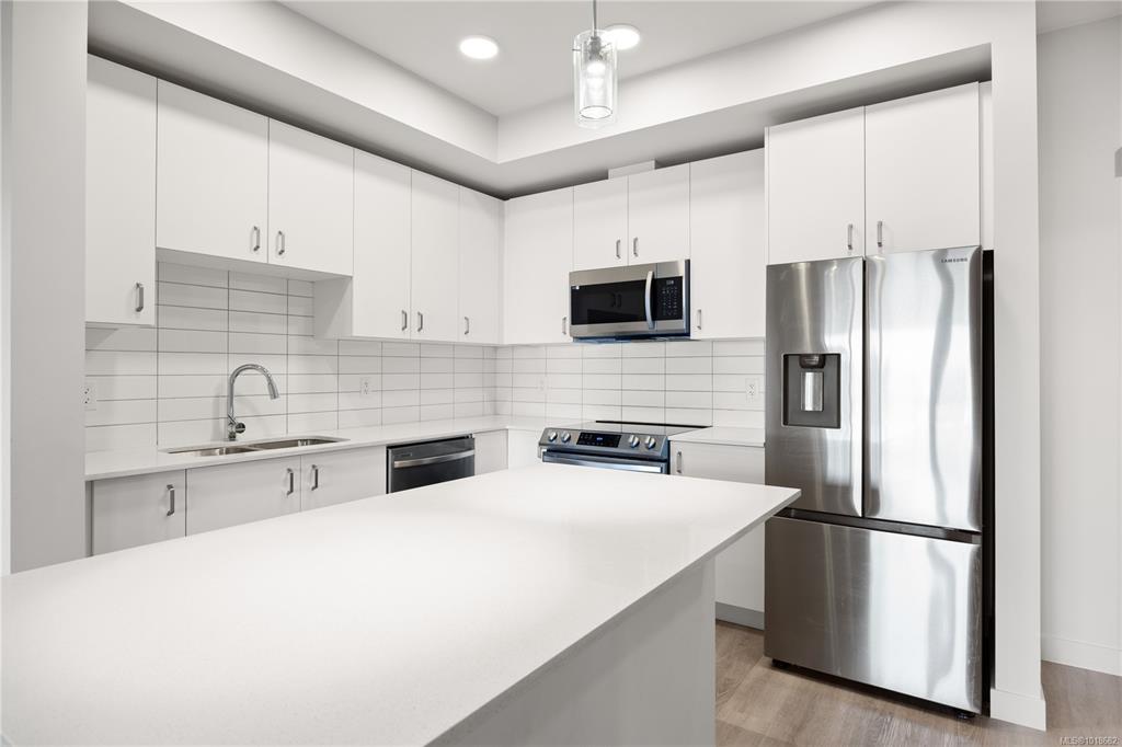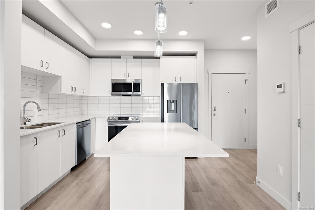Welcome to Unit 209–120 Jensen Ave W, Parksville — a modern ocean-view 1-bed condo in the eco-conscious Mosaic complex (built 2023). This bright, open-concept home features 9-ft ceilings, and quality finishes throughout. The kitchen offers quartz countertops, undermount sink, subway-tile backsplash, and an island for extra workspace. Enjoy comfort with two wall A/C units (living area & bedroom) and peace of mind with smart water-leak sensors and an auto shut-off valve on the main line. The building includes...