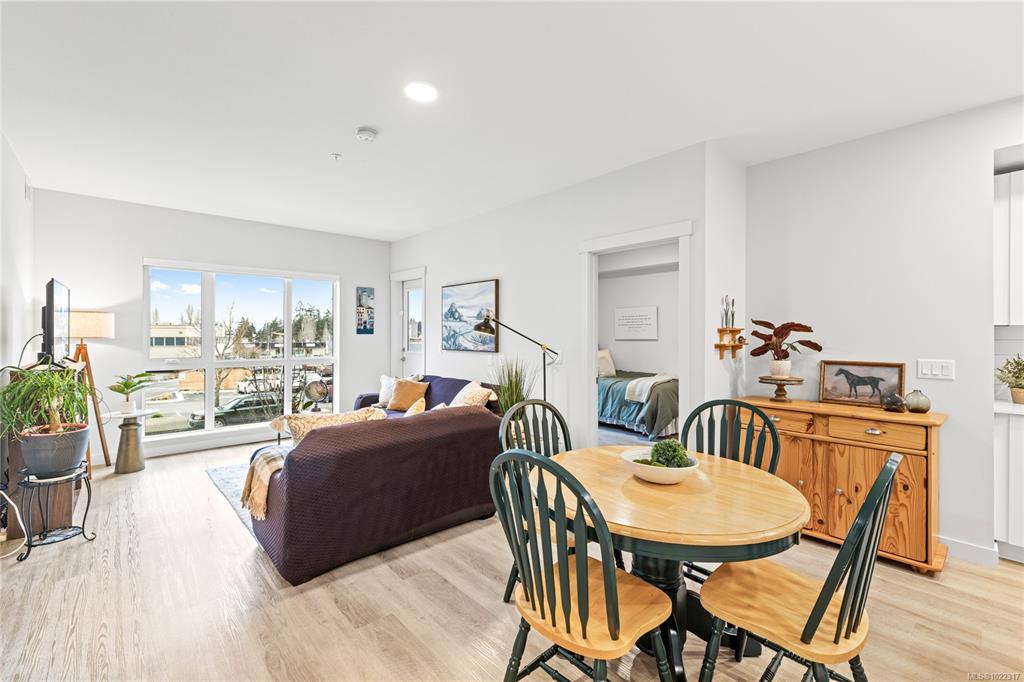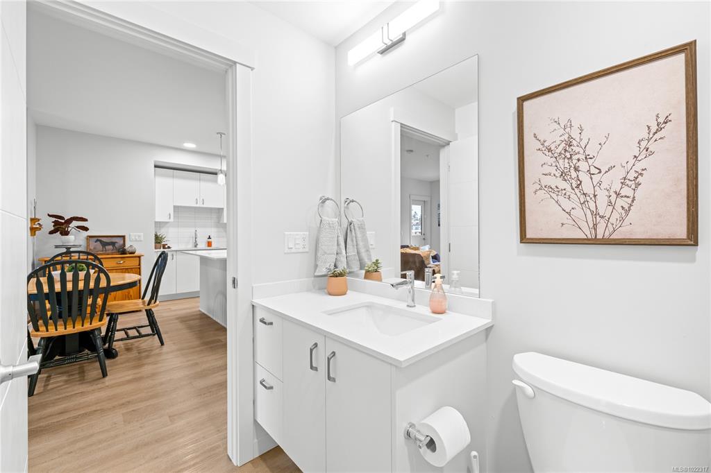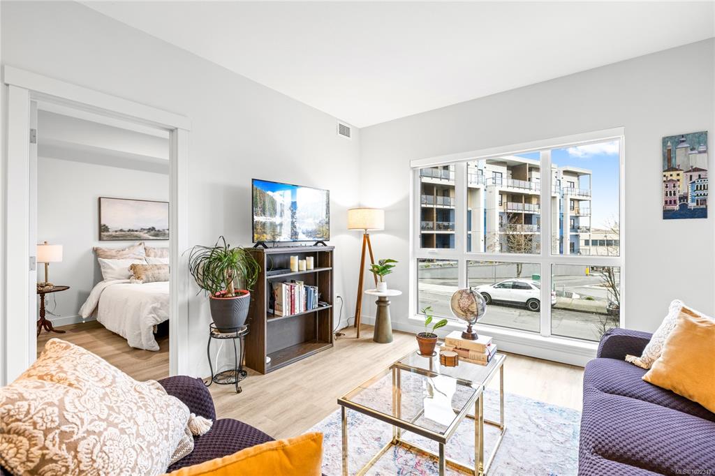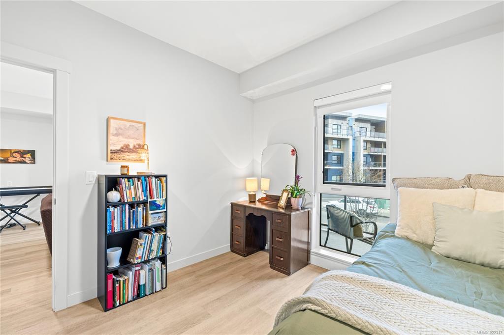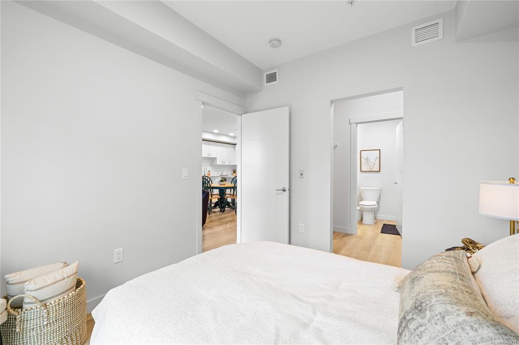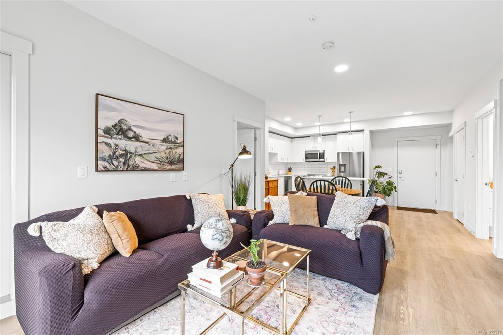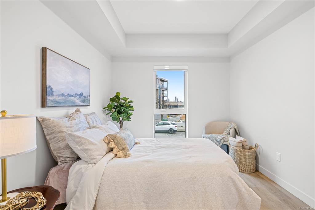 Welcome to Mosaic, a modern 2 bed/2 bath home built in 2023. This light filled first floor unit offers easy access while sitting above street level for added privacy, with open sightlines to the coastal mountains and a peekaboo ocean view. Oversized windows enhance the airy feel, while the stylish kitchen features quartz countertops, soft close cabinetry and a large island. The open floor plan is ideal for entertaining and extends to a covered balcony perfect for morning coffee or summer evenings. Both bedr...