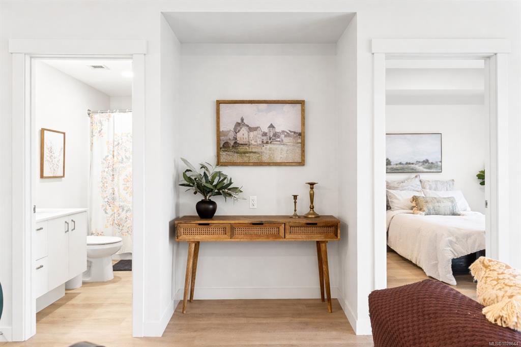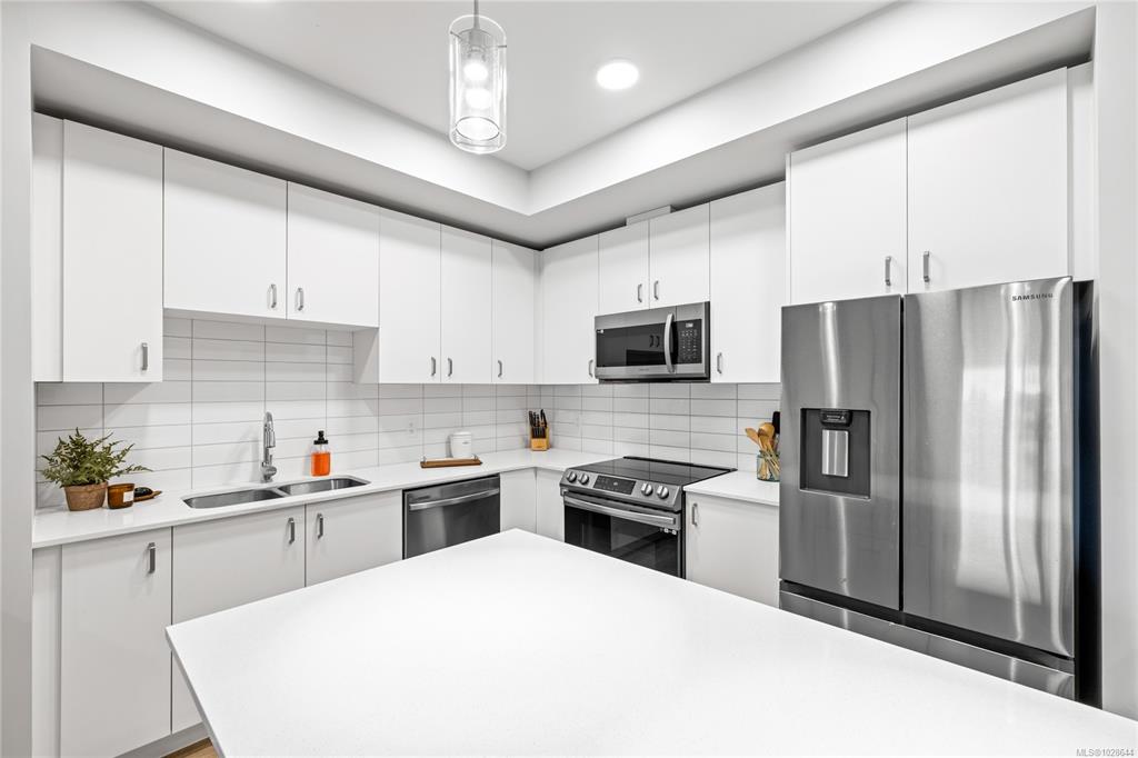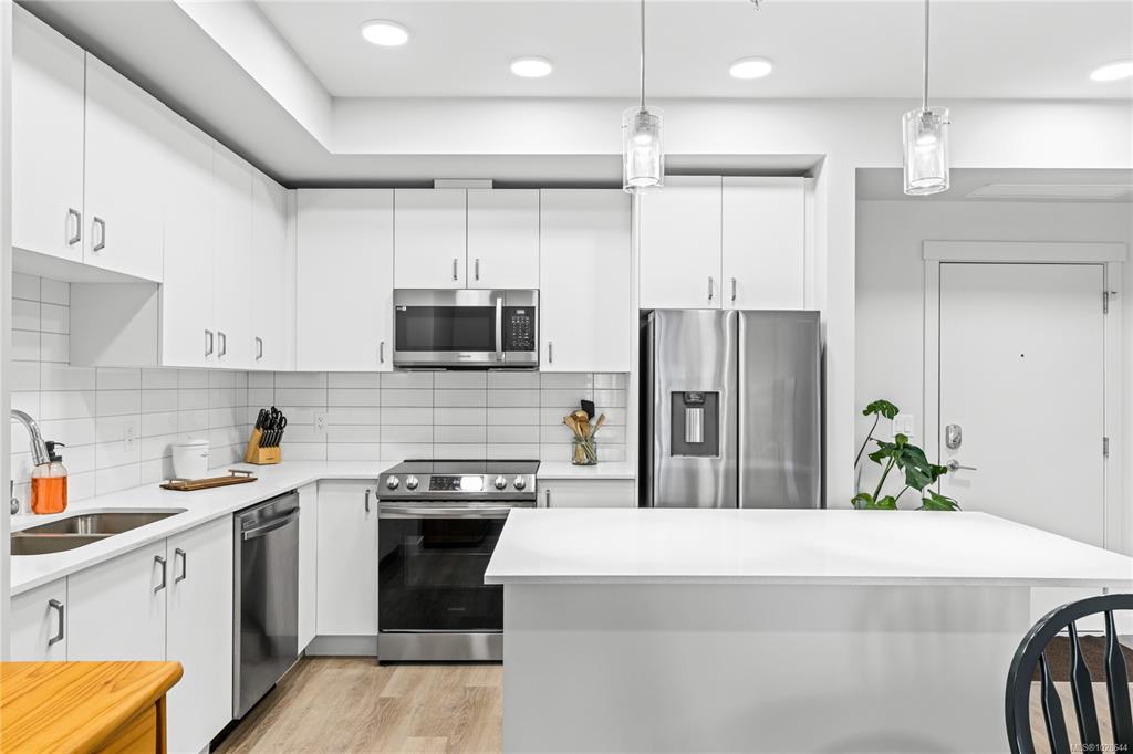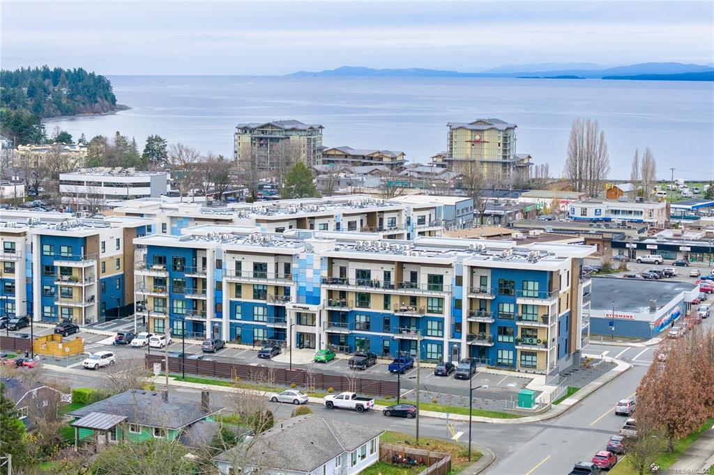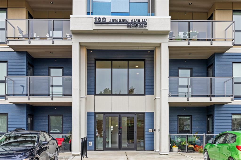 Welcome to Mosaic, a modern 2 bed/2 bath home built in 2023. This light filled first floor unit offers easy access while sitting above street level for added privacy, with open sightlines to the coastal mountains and a peekaboo ocean view. Oversized windows enhance the airy feel, while the stylish kitchen features quartz countertops, soft close cabinetry and a large island. The open floor plan is ideal for entertaining and extends to a covered balcony perfect for morning coffee or summer evenings. Both bedr...