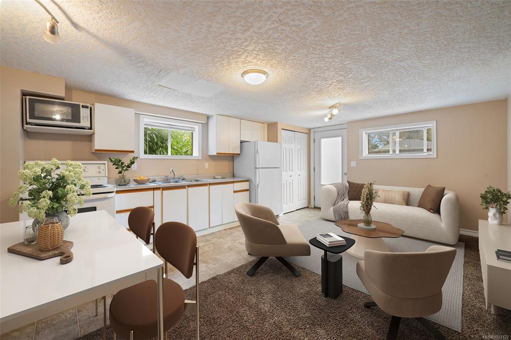 Full of charm and potential, this 5-bedroom, 2-bathroom character home sits in the heart of Saanich West. Warm hardwood floors, a crackling wood-burning fireplace, and graceful coved ceilings create a timeless, inviting feel. The bright main level flows easily into a spacious kitchen and dining area with direct access to the sunny patio and flat backyard—ideal for gatherings or quiet mornings. Downstairs, 2-bedrooms add versatility for extended family or any other ideas. Walkable to shopping, schools, parks...