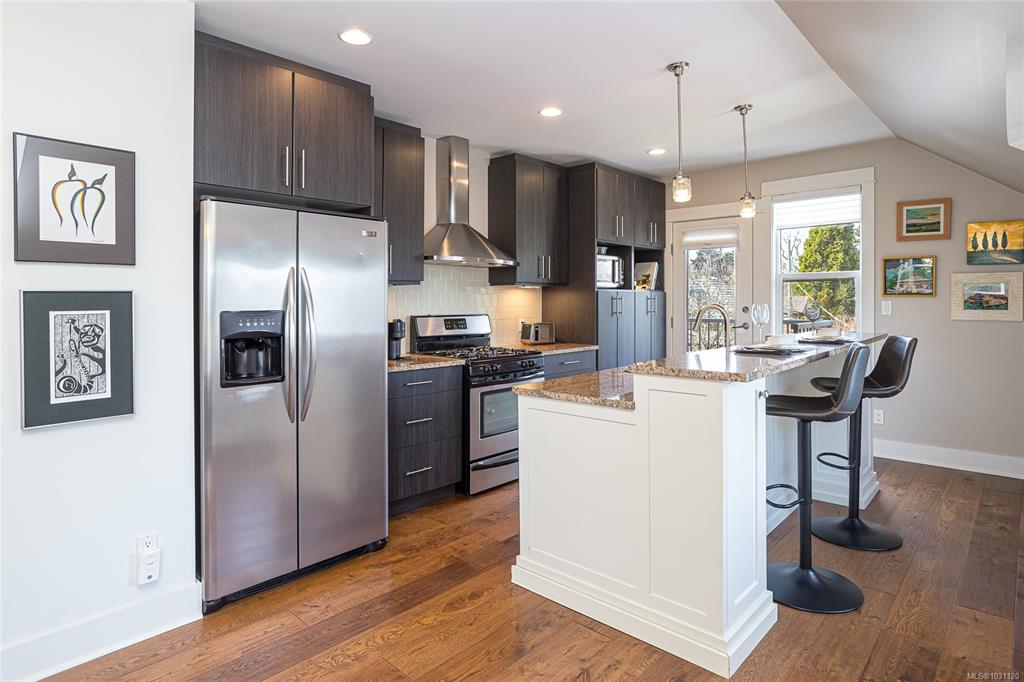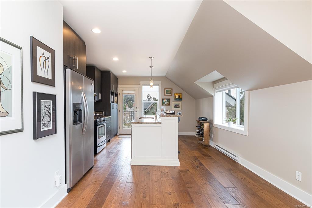 Beautifully updated top floor 3 bed/2 bath home in a charming character conversion in sought-after Vic West! A bright, spacious home, filled with natural light from four exposures and a fresh, modern feel throughout. Featuring gleaming hardwood floors, gas fireplace & a well-appointed kitchen w/ large island. The primary bedroom has a walk-in closet & 3-pce ensuite. A private west-facing balcony with gas BBQ hookup is accessible from both kitchen & primary bedroom. Enjoy beautiful Banfield Park views along ...