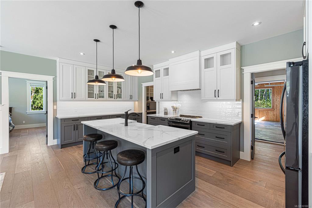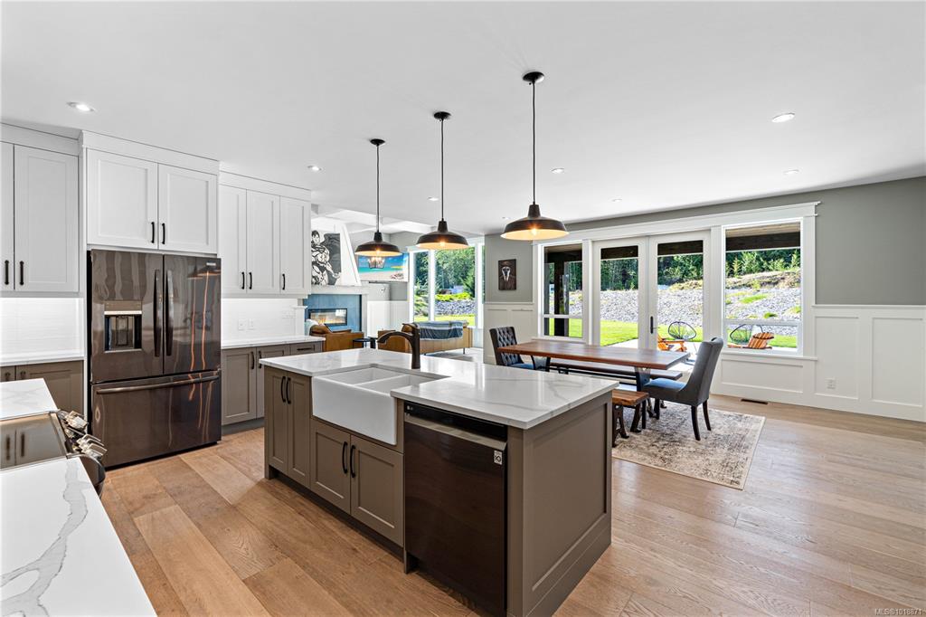 Meticulous 3-bed, 2-bath rancher on 3.1 acres with an incredible 4,000 sq ft shop. Built in 2018, this 2,084 sq ft home shows pride of ownership throughout—featuring engineered oak floors, quartz counters, a spacious walk-in pantry, oversized wood-burning fireplace, and wainscoting in the main living area. The thoughtful layout includes a large foyer, 5-piece ensuite, and a finished garage with plywood-lined walls. Outside, you’ll find RV hookups with sani-dump, hot/cold hose bibs, a Carrier heat pump, and ...