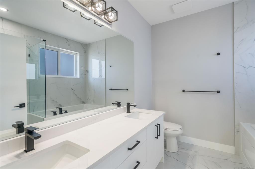 Enjoy ocean views and modern comfort in this stunning North Nanaimo home. With six bedrooms and four bathrooms, this thoughtfully designed residence features a spacious open concept layout and a massive kitchen complete with quartz countertops, stainless steel appliances, a gas range, and designer finishes. Take in views of the Georgia Strait from the main living area or from the private deck off the primary bedroom. The luxurious ensuite offers double vanities, a glass shower, and a deep soaker tub. The lo...