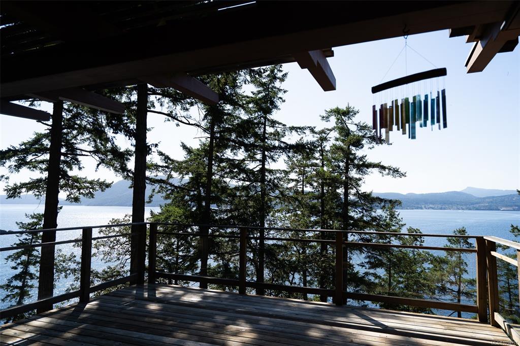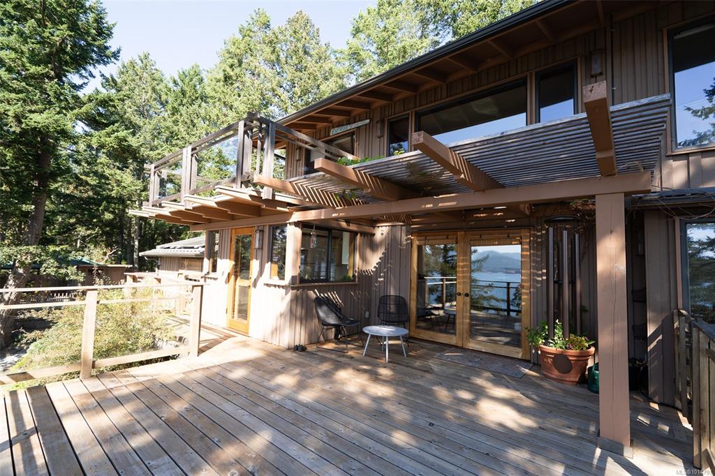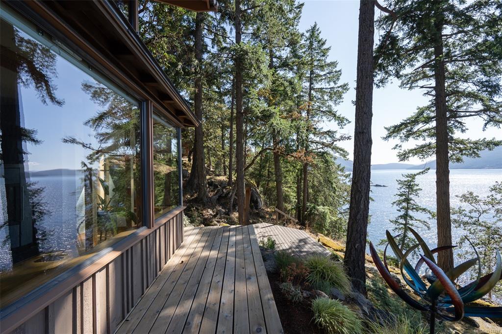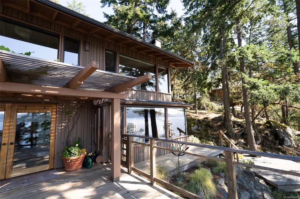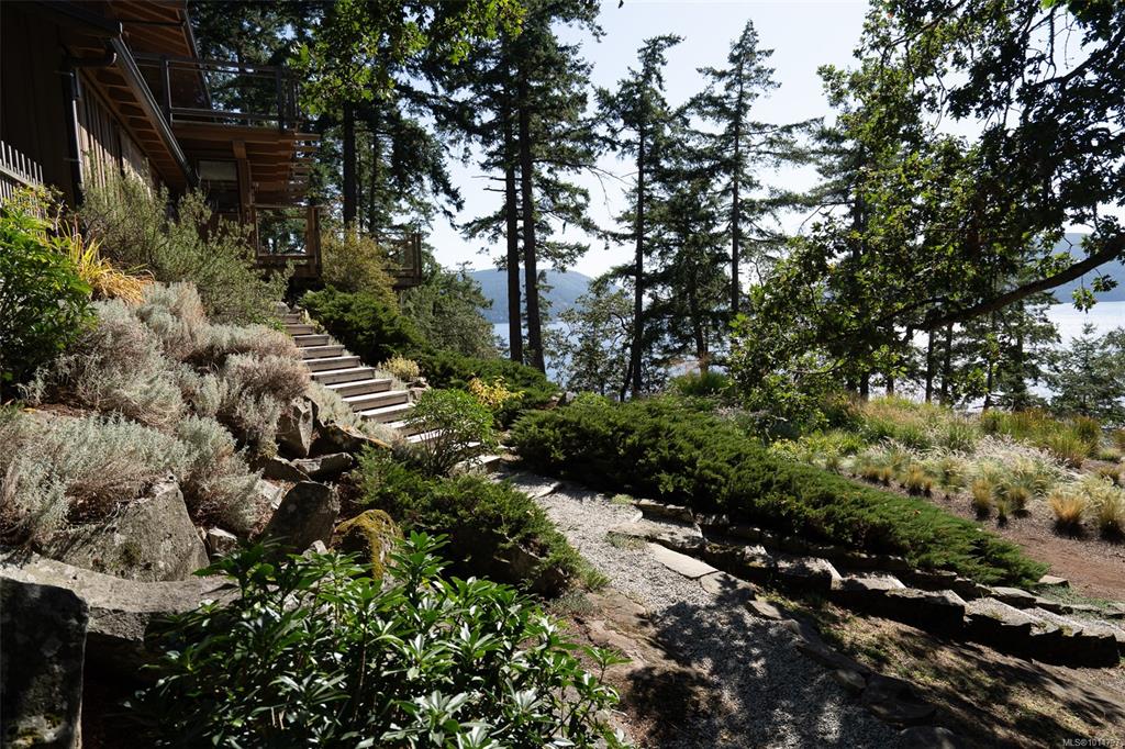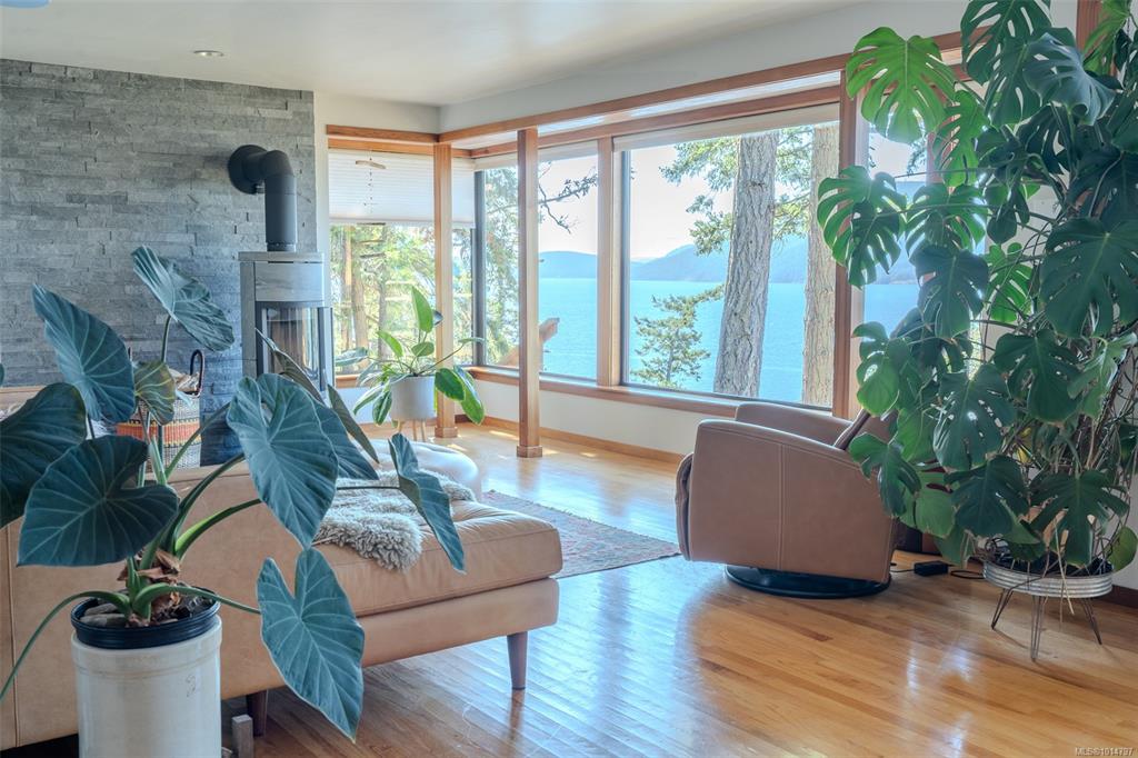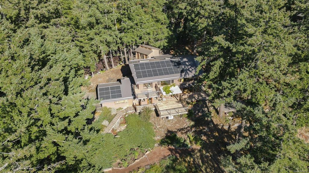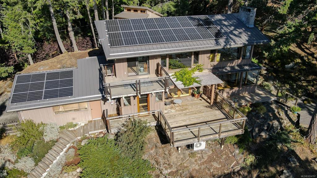 Architect-designed Hank Schubart waterfront retreat — sun-drenched, thoughtfully composed spaces with panoramic southwest views of Sansum Narrows and Vancouver Island. Move-in ready 3 bed, 2 bath plus serene studio (perfect for yoga, meditation or guests) with over 2,400 sq ft of finished living and an open, luminous main living area that flows to the water. Extensive upgrades include grid-tied solar with battery storage, metal roof, upgraded systems, and impeccably designed manicured landscaping with rainw...