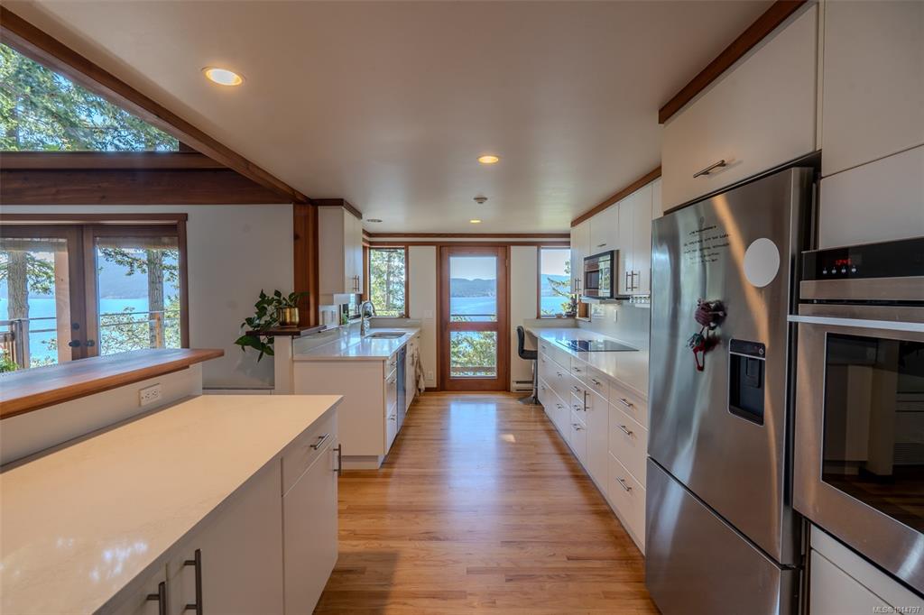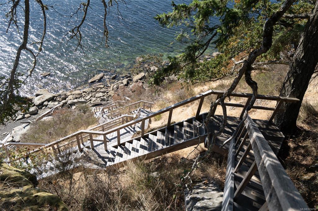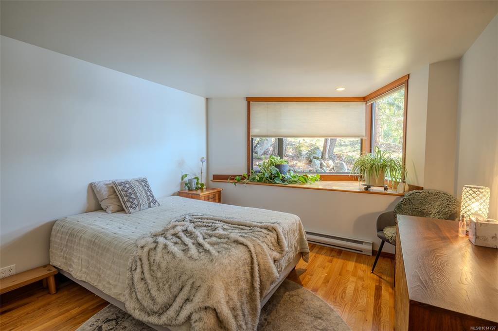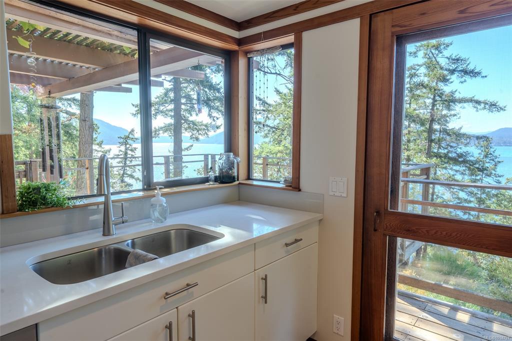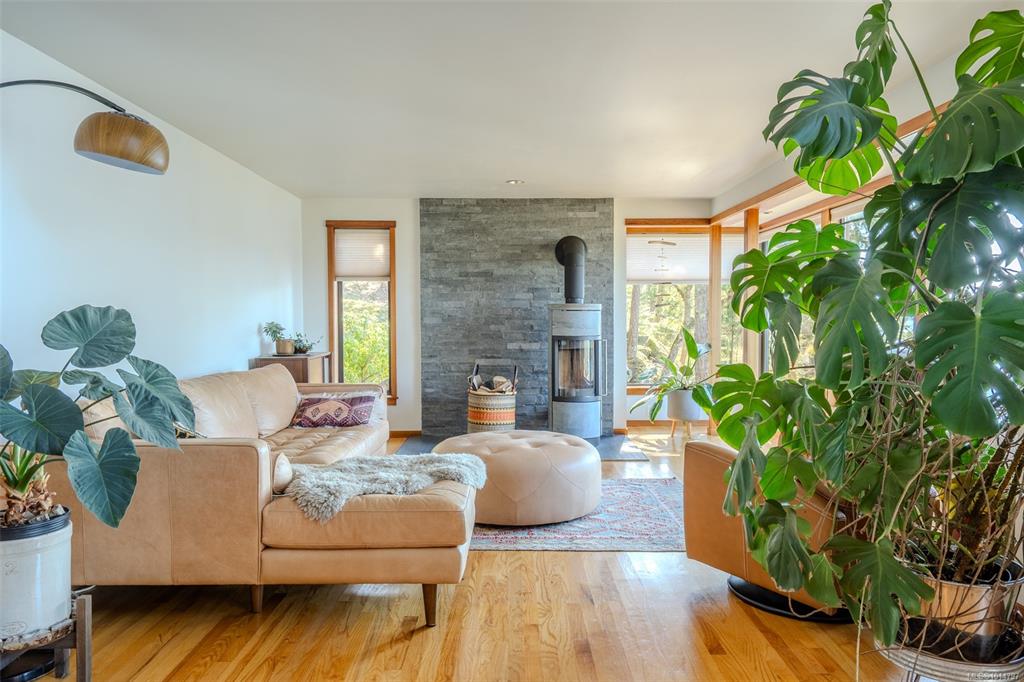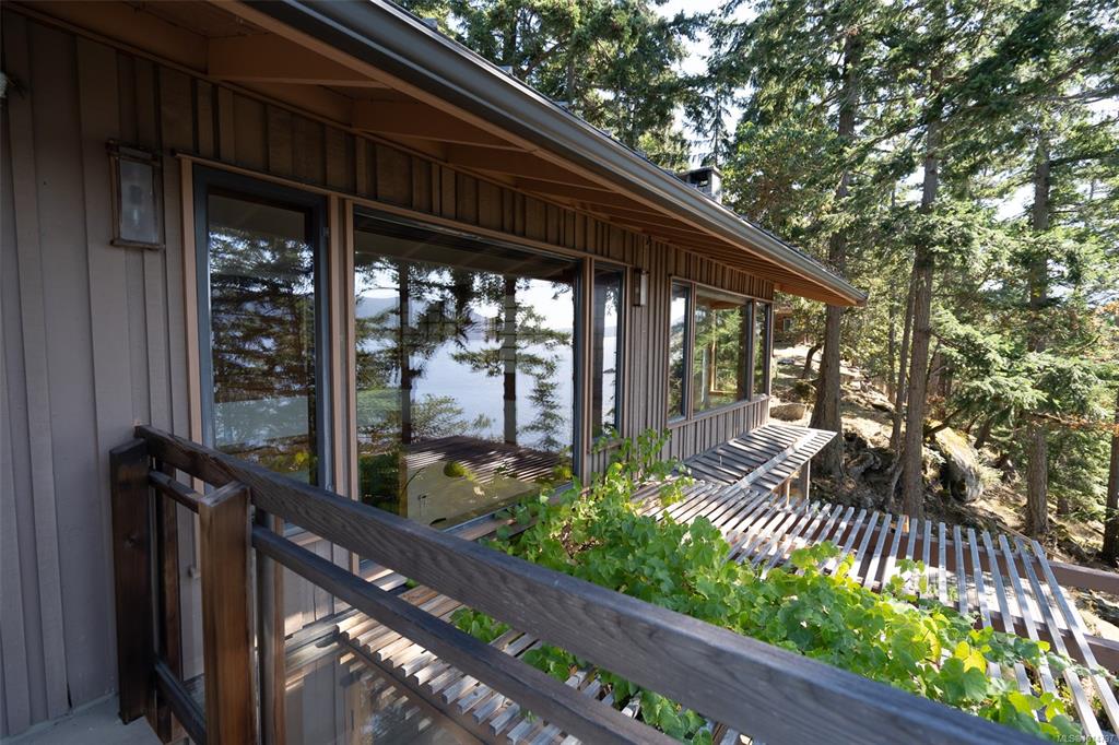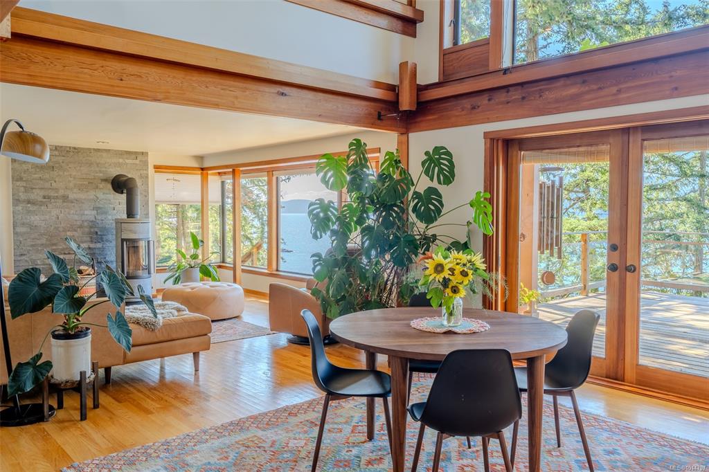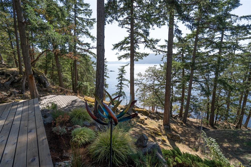 Architect-designed Hank Schubart waterfront retreat — sun-drenched, thoughtfully composed spaces with panoramic southwest views of Sansum Narrows and Vancouver Island. Move-in ready 3 bed, 2 bath plus serene studio (perfect for yoga, meditation or guests) with over 2,400 sq ft of finished living and an open, luminous main living area that flows to the water. Extensive upgrades include grid-tied solar with battery storage, metal roof, upgraded systems, and impeccably designed manicured landscaping with rainw...