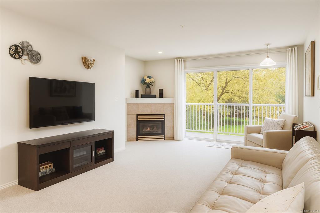RARE THREE-BEDROOM CONDO IN BRENTWOOD BAY VILLAGE! Rarely available and quietly set on the garden-facing side of this well-maintained, family-friendly building in the heart of Brentwood Bay Village. This bright, move-in-ready home offers a spacious 1,297 sqft layout with 3 bedrooms and 2 bathrooms—ideal for growing families. Large windows fill the home with natural light, while a generous balcony overlooks peaceful gardens, perfect for summer mornings. Cozy winter evenings are made easy with a gas fireplace...