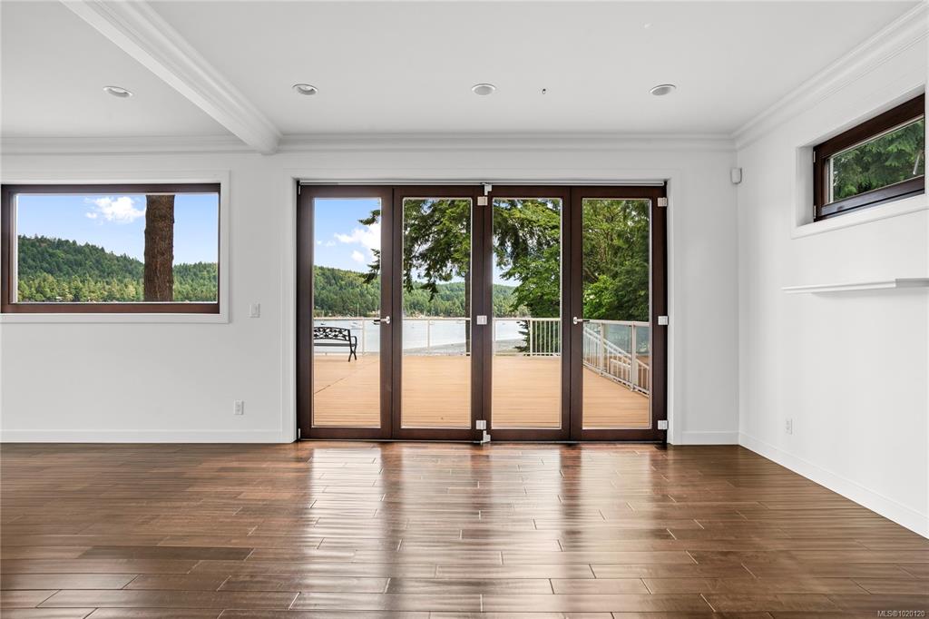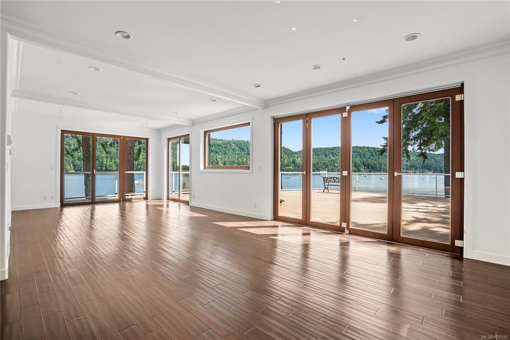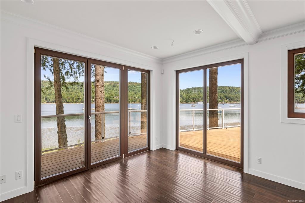 This extraordinary oceanfront property is nestled on 0.78 acres of low bank shoreline with an impressive 249 feet of oceanfront. A gated entry opens to a beautiful stone courtyard & custom-built stone wall with wood-burning fireplace. Walking from the courtyard onto the 2,100 sq ft deck is like walking onto the deck of a ship; the sea breeze & view is extraordinary. Inside, hardwood floors and high-end European windows & doors set a tone of quality. This 5-bed, 5-bath home offers a rare combination of priva...