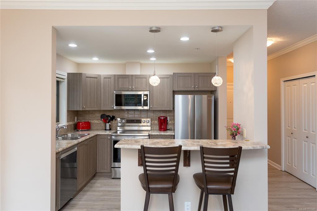 Experience ocean breezes and abundant natural light in this beautifully appointed two-bedroom, two-bathroom corner unit at Admirals Landing, surrounded by windows on all sides. A true View Royal gem, this award-winning 2008 Manchester Homes development offers an exceptional location just steps from top amenities, the ocean, and scenic walking trails—embracing the very best of West Coast living. This spacious condominium features tasteful updates throughout, including upgraded flooring and cabinetry, stainle...