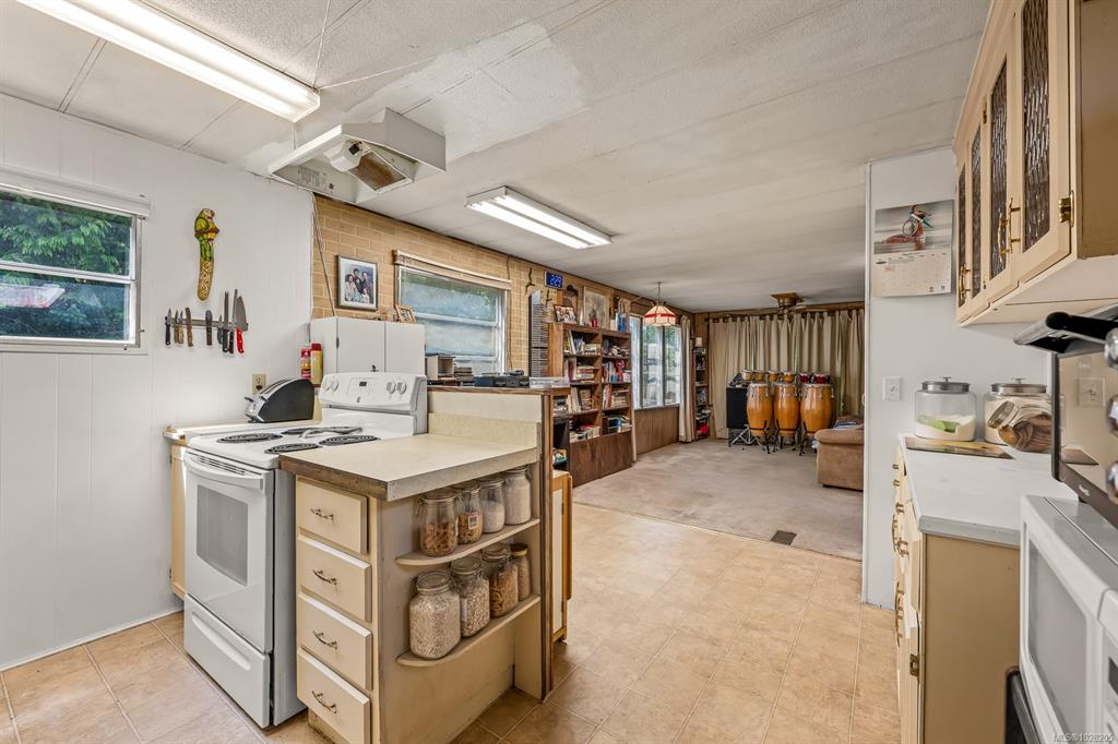 Affordable coastal living in the Little River neighbourhood. This 2-bedroom, 1-bathroom mobile home sits on a generous 0.24-acre lot, just a short stroll to the beach. An addition provides extra space with a workshop on one side and a bright family room on the other, featuring vaulted ceilings and a skylight. With some drywall and finishing, this flexible area can become a polished extension of the home. The spacious yard offers room for gardening, recreation, or future potential, all while being minutes fr...
