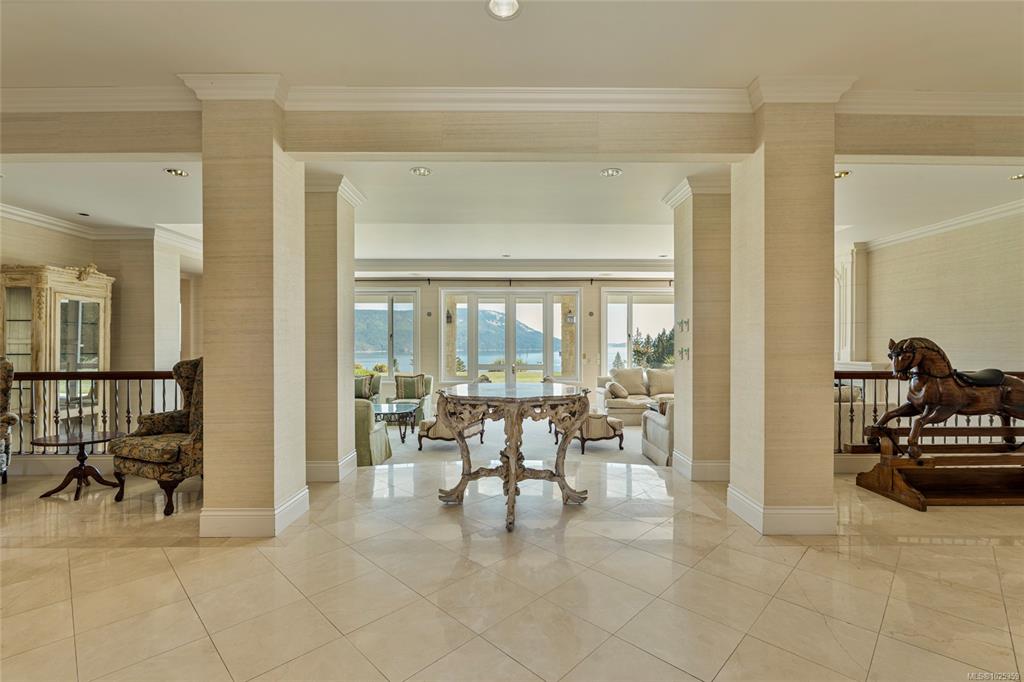 A world of timeless elegance and unrivalled privacy awaits in this Cowichan Bay waterfront estate; an extraordinary residence where every detail speaks of refinement. Comprised of 3 parcels of land, on 82 acres, a breathtaking drive & manicured grounds unveil a grand residence with a marble entry, soaring vaulted ceilings, sunken living room, formal dining, and a chef’s kitchen with butler's pantry and bar. 6 serene bedrms, including primary suites, grace the upper level, while a lower level offers a privat...