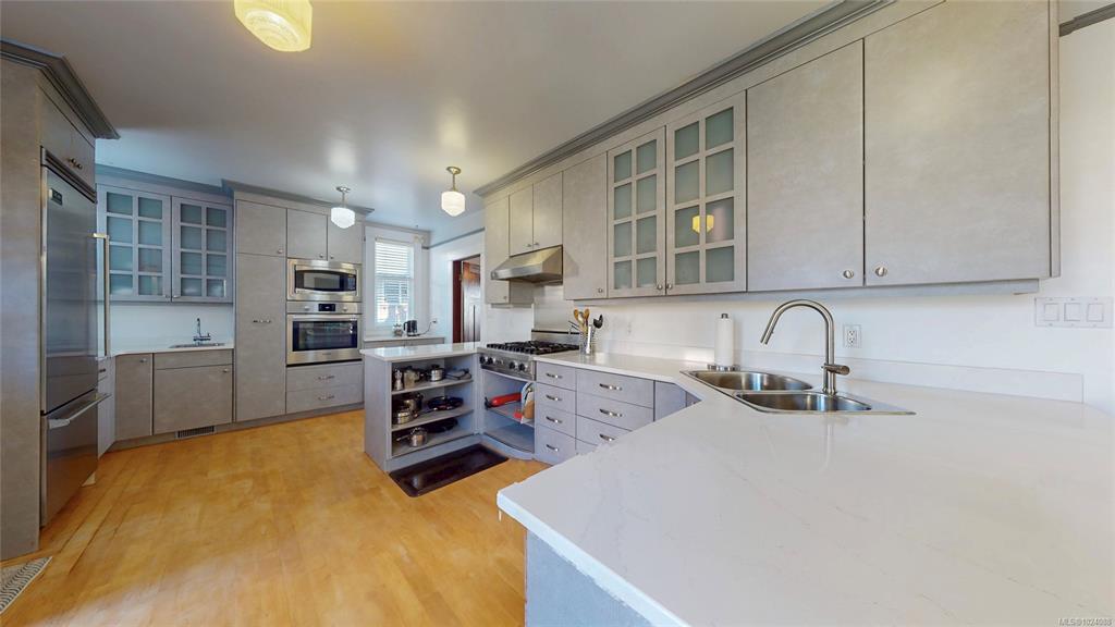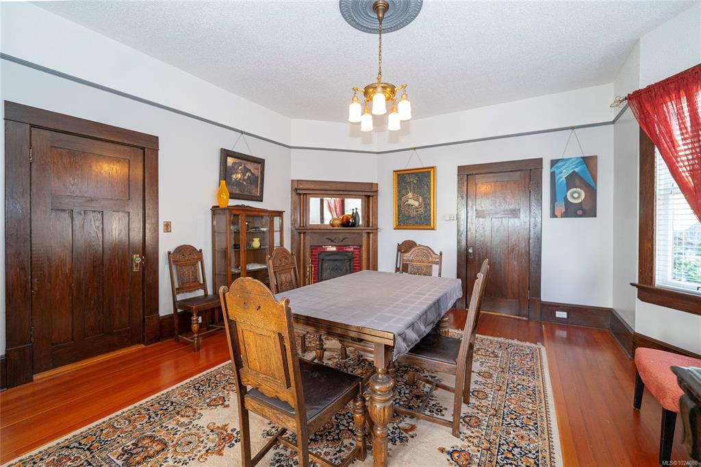 Welcome to this remarkable & well loved Edwardian Vernacular Style home built around 1912. Perched high on the hill, this beauty looks south over the City of Victoria & beyond to the Juan de Fuca Strait. If that doesn't capture your attention, wait until you enter the front door into a time where homes were built with elegance & style. This large family home features two original fireplaces with full surrounds (one converted to gas), pressed tin detailing on front hall ceiling, gorgeous period light fixture...