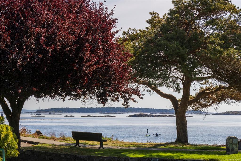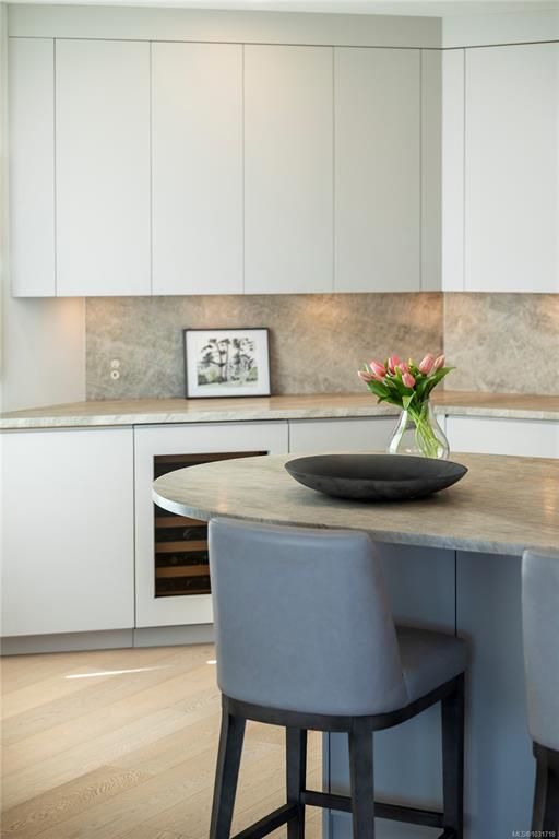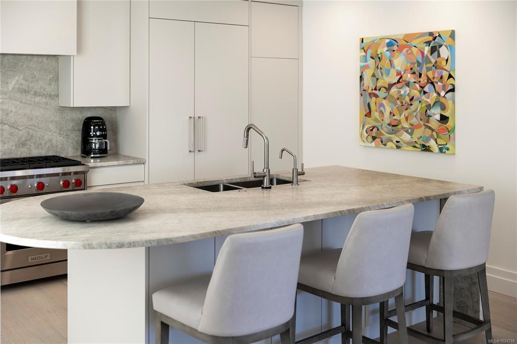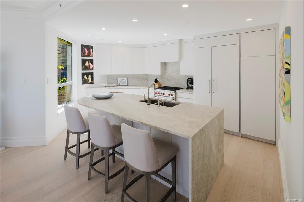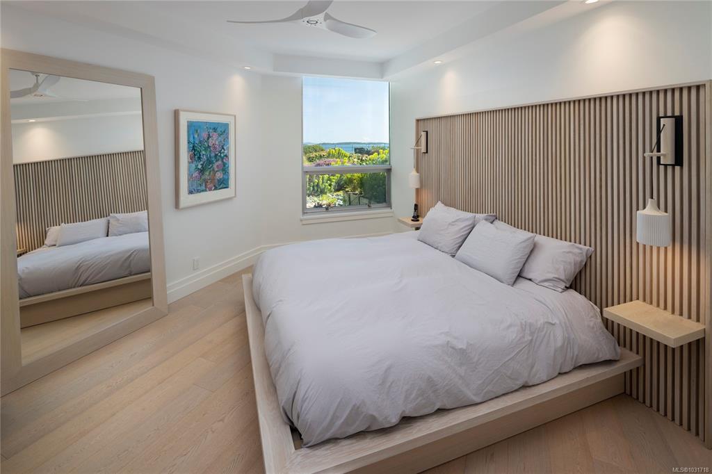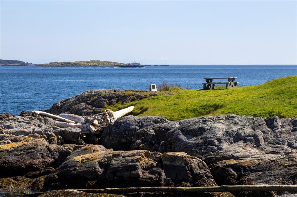 Discover this stunning garden-level home situated on the waterfront in Oak Bay offering unobstructed views of the ocean and Mount Baker. This newly renovated home boasts an open floor plan of over 1600 square feet with 9-foot ceilings, natural stone counters, upscale appliances, including subzero, and Wolfe. This layout features beautiful hardwood floors and two large bedrooms with ensuite washrooms. The building is concrete with a slate tile exterior, concrete, party walls, and a floor in floor radiant hot...