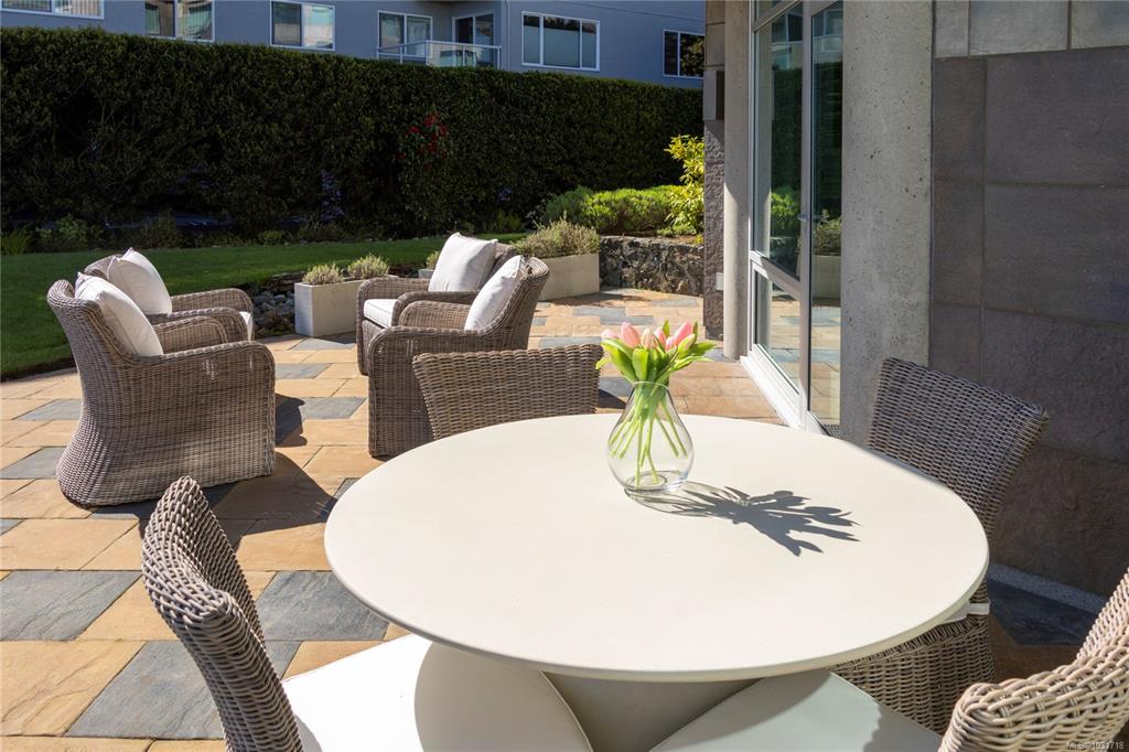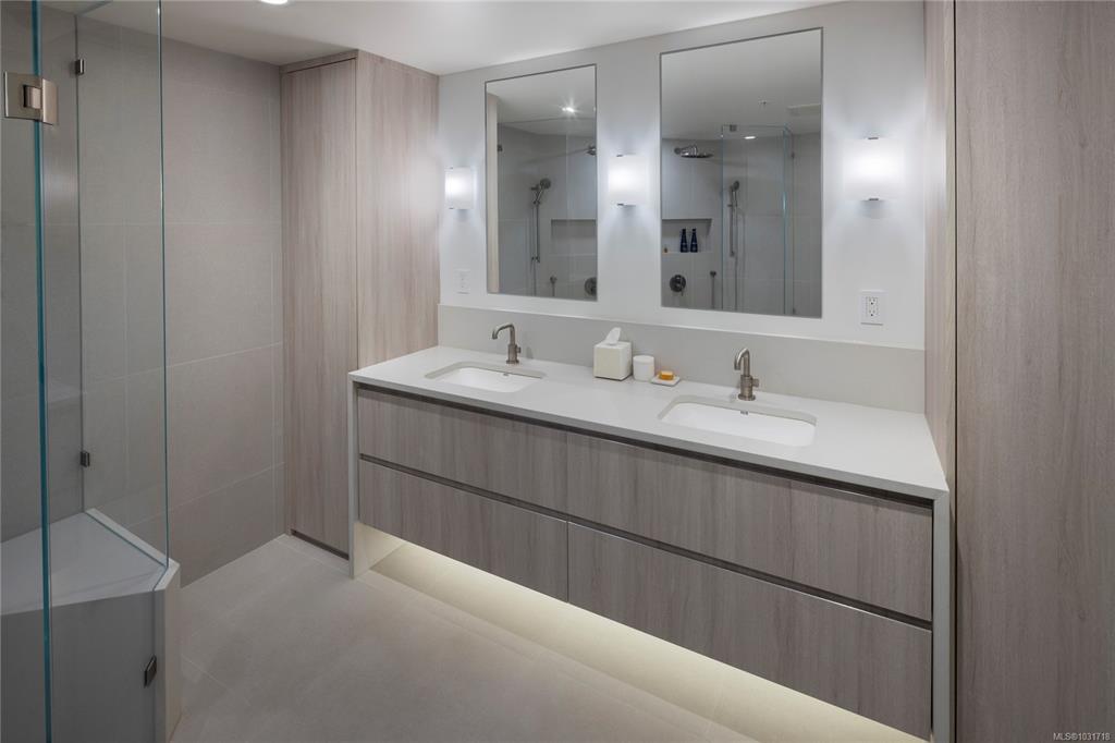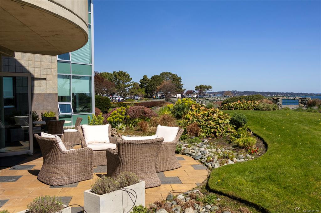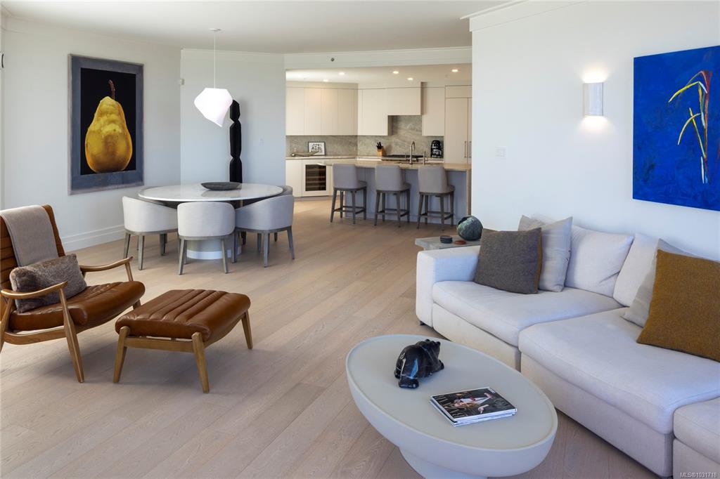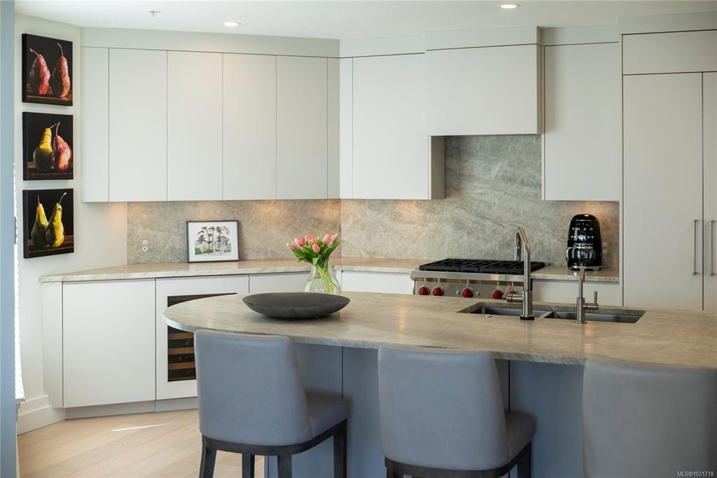 Discover this stunning garden-level home situated on the waterfront in Oak Bay offering unobstructed views of the ocean and Mount Baker. This newly renovated home boasts an open floor plan of over 1600 square feet with 9-foot ceilings, natural stone counters, upscale appliances, including subzero, and Wolfe. This layout features beautiful hardwood floors and two large bedrooms with ensuite washrooms. The building is concrete with a slate tile exterior, concrete, party walls, and a floor in floor radiant hot...