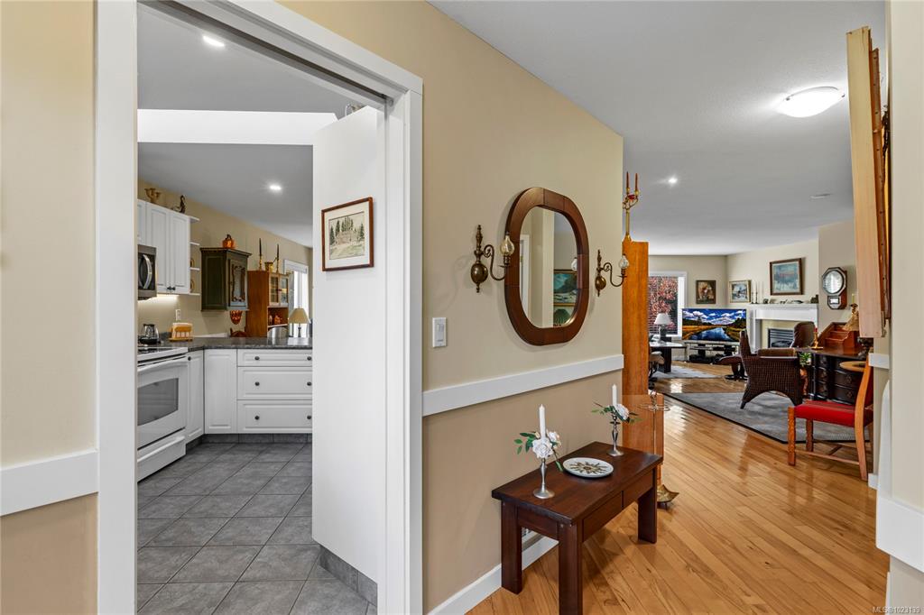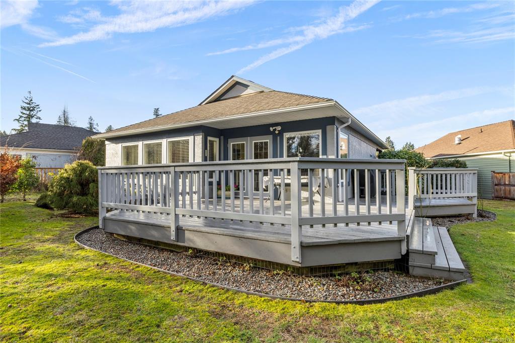 Located in the sought-after Oceanside development in Eaglecrest, this well-maintained rancher sits on one of the largest lots in the neighbourhood, offering exceptional space for gardens and outdoor enjoyment. The spacious living room features hardwood flooring and a cozy gas fireplace, while the kitchen offers abundant cabinetry, an eating bar, and updated appliances. The dining room provides direct access to an expansive deck, ideal for entertaining or relaxing outdoors. The primary bedroom includes a wal...