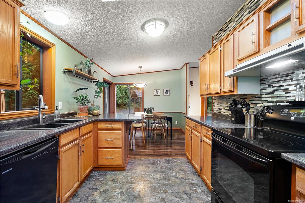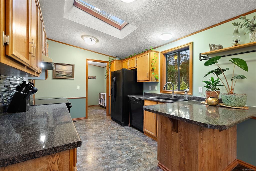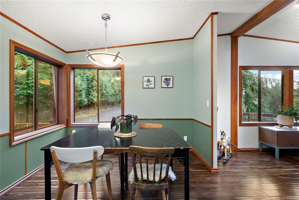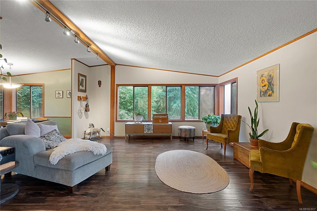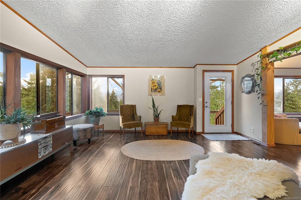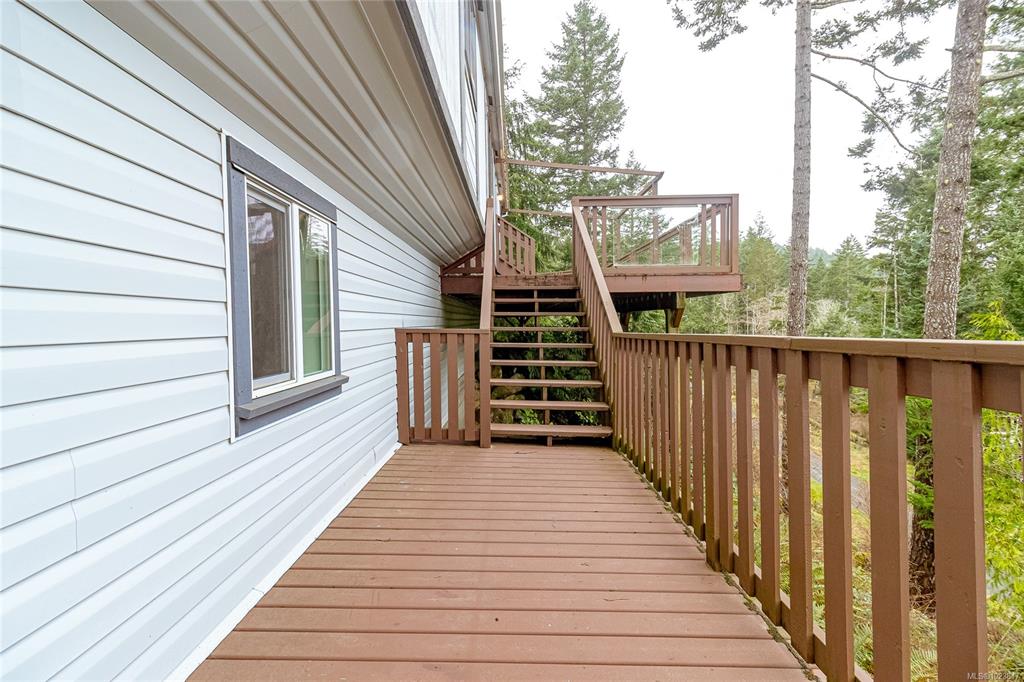 Nested atop a private 2.5-acre East Sooke retreat, this inviting home offers comfort, privacy, and true West Coast wilderness. Enjoy sweeping views of the Sooke Basin and mountains from the living room, family room, and two expansive decks. Main 2-bed, 2-bath layout features an oak kitchen, spacious living room, and a cozy family room w/ wood stove. Upstairs beds are spacious, w/ main living on one level including a practical mudroom/laundry. Downstairs, a versatile bonus room offers endless possibilities—u...