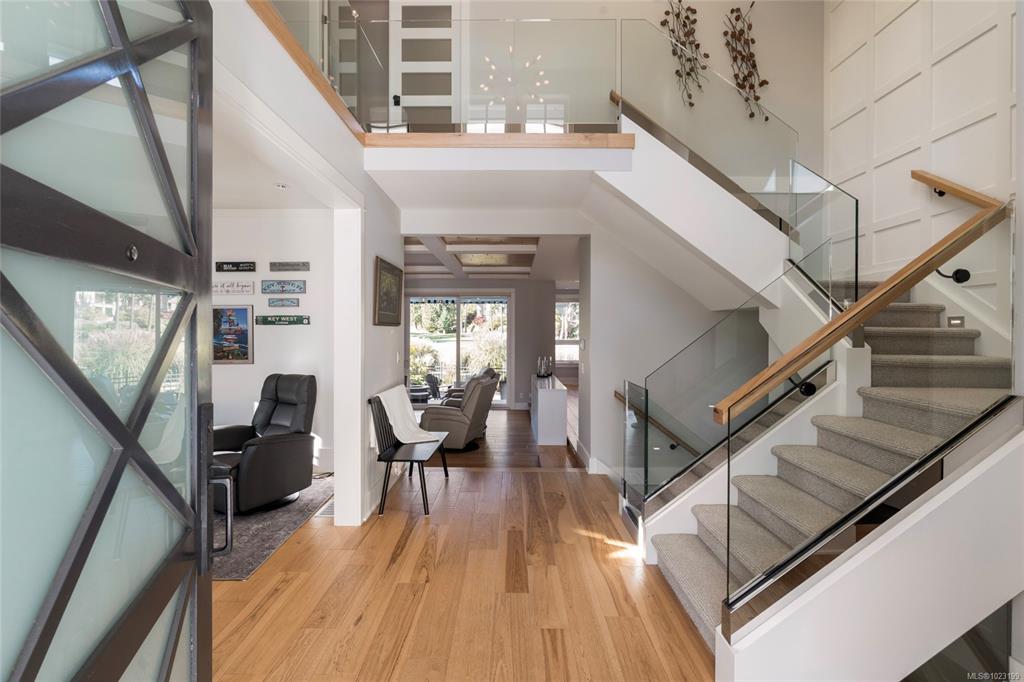 Architecturally crafted residence commanding fairway views. Sophisticated interiors showcase the scenic landscape through expansive picture windows. Open-concept design is ideal for entertaining, anchored by a chef’s kitchen with premium cabinetry, stone surfaces, walk-in pantry, professional-grade appliances, & island seating for casual dining. The elegant dining area flows into a welcoming living room with fireplace & custom millwork. A versatile rec room, private study, powder room, & mudroom with laundr...