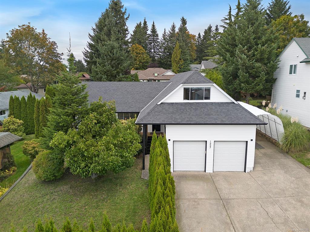 Wonderful Courtenay East home with privacy and tons of shop and storage space! 1327 Malahat Dr is tucked behind hedges and offers main level living, privacy, a detached 510sqft shop, and almost 900sqft of excellent storage. In addition, there is a double garage and RV parking. The main level features a living room and family room with a gas fireplace, plus the primary suite and second bedroom. Upstairs offers a large bonus room or third bedroom, with access to a unique attic space which could be re-develope...
