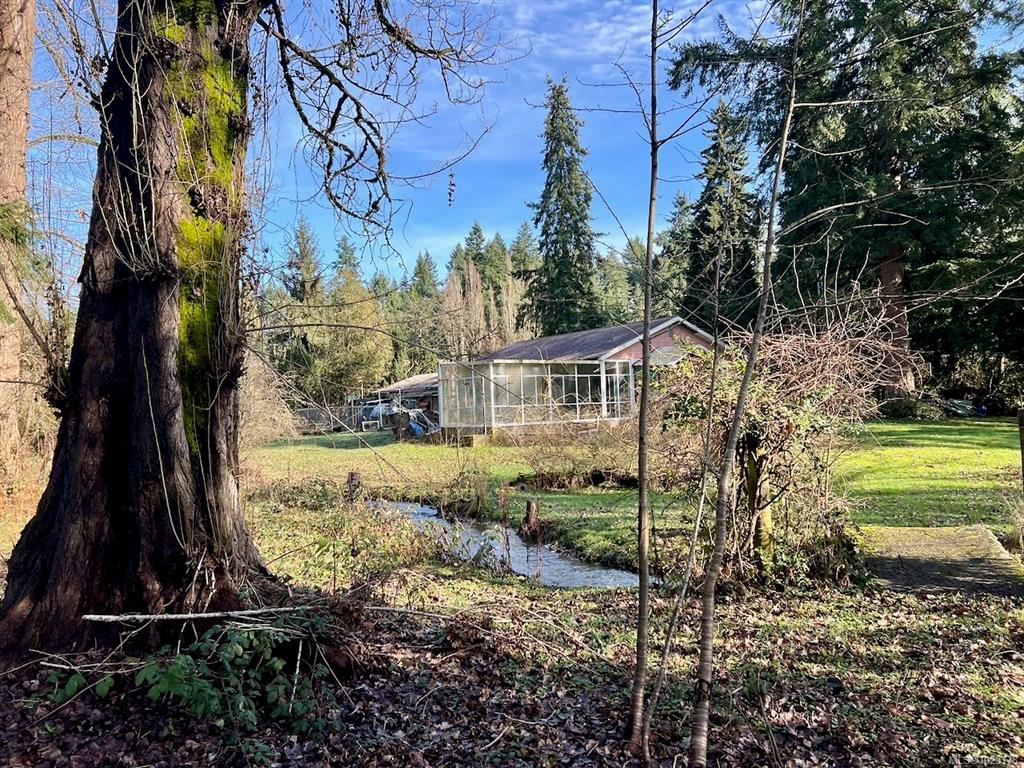 Situated on 2.3 acres, this property features a small watercourse running through the land and a two-bedroom home around 1300 ft2 with a two-car, approximately 1,000 FT2 garage. While the house and garage requires some TLC, it offers an excellent opportunity for buyers looking to build equity through their own improvements. Small shop on back of property around 150 ft2. The land is gated and fenced, backing onto a farm and conveniently located close to the airport, with easy highway access for commuting. T...