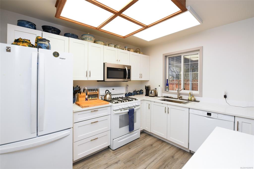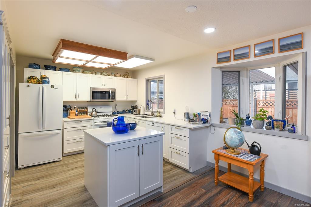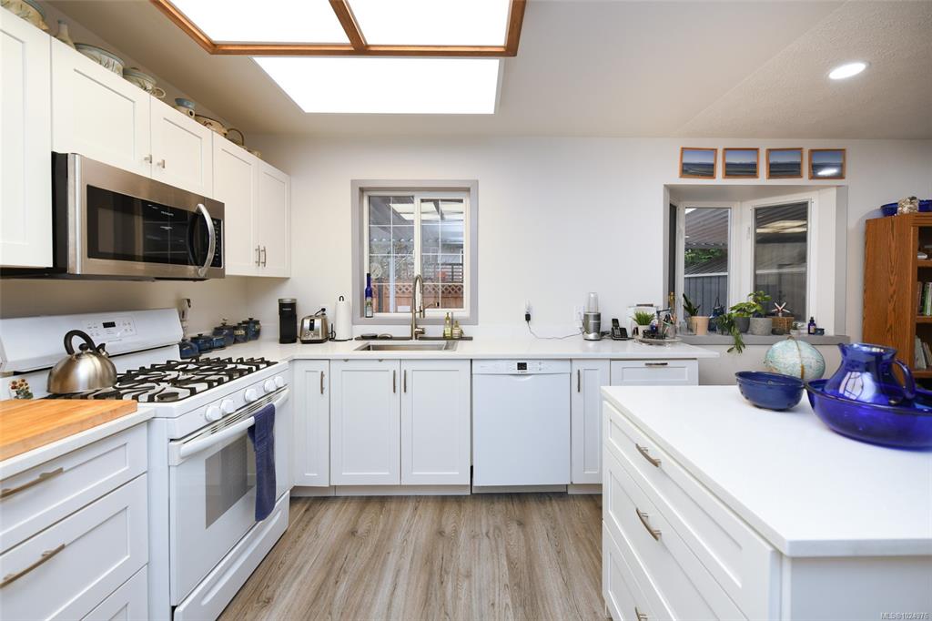 Welcome to this well-maintained 3 bed/2 bath Comox rancher offering comfortable one-level living & located on a quiet cul-de-sac. Step inside through the spacious entryway & into the bright open-concept kitchen, living & dining area. The updated, efficient kitchen has quartz countertops & excellent flow to the main living area, where you can relax by the cosy gas fireplace. Sliding doors lead to a sunroom then out to the yard. Features: heat pump, extra attic insulation (2020), newer gas hot water tank and ...