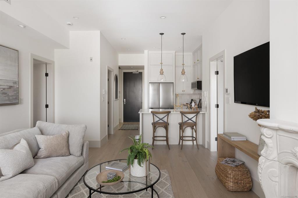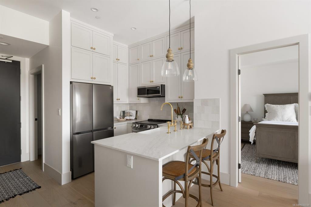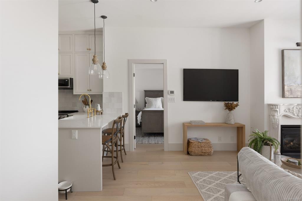 Beautifully updated TOP FLOOR residence in Ponds Landing, ideally located in the village at Bear Mountain Resort.This 2-bedroom plus den home blends modern elegance with timeless design, featuring curated finishes, designer lighting, and a soft neutral palette throughout.The airy 10-ft ceilings and open-concept layout frame a chef-inspired kitchen with a quartz waterfall island, custom wood cabinetry, farmhouse sink, and striking brass details.The inviting living room centers around a custom stone gas firep...