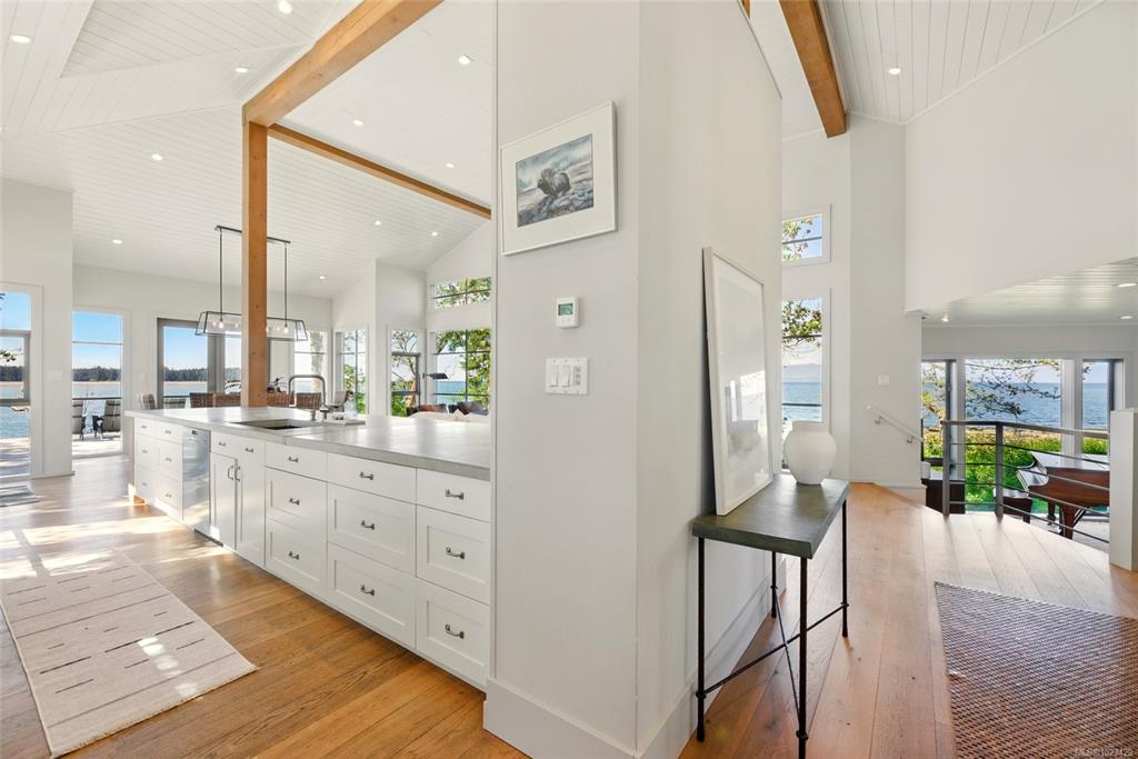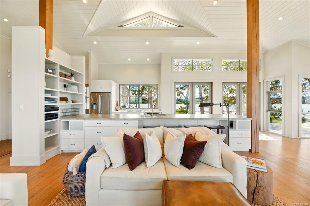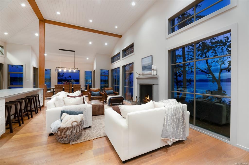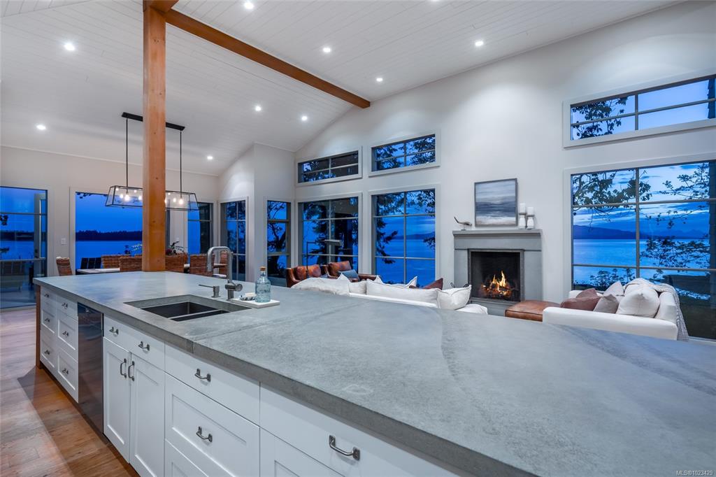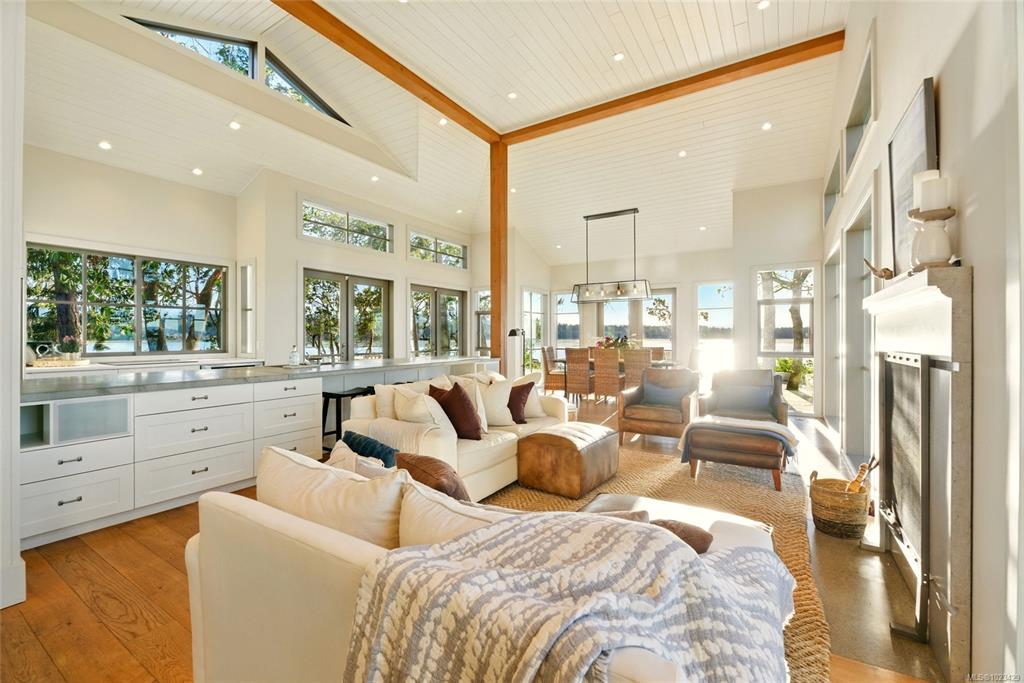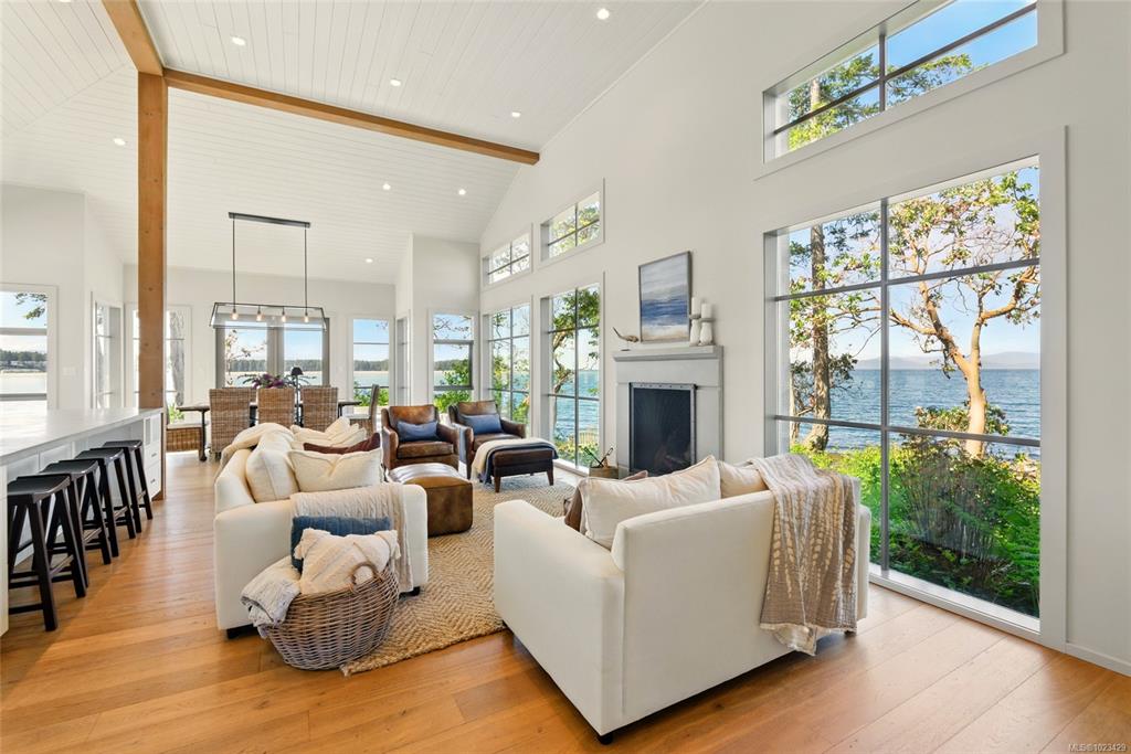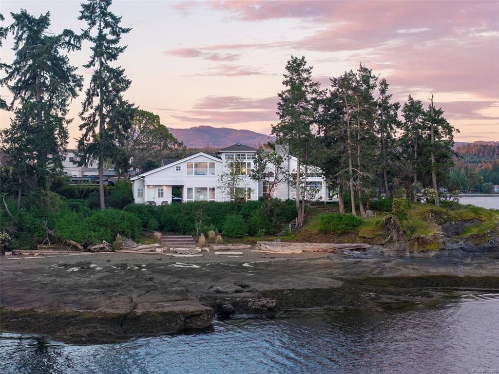 Located at the private tip of Madrona Point, this exceptional Nanoose Bay waterfront residence sits where parkland & the Pacific converge. Set on a tranquil 1/2 acre lot, the home blends classic Cape Cod influence with a refined coastal aesthetic, featuring soaring 14-foot pine ceilings, fir posts, beams & radiant in-floor heating. The open-concept main level is anchored by a striking 12-foot custom concrete island & floor-to-ceiling windows that frame uninterrupted ocean views. A wood-burning fireplace add...