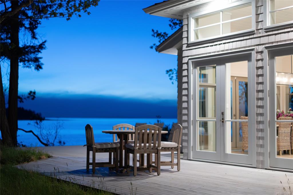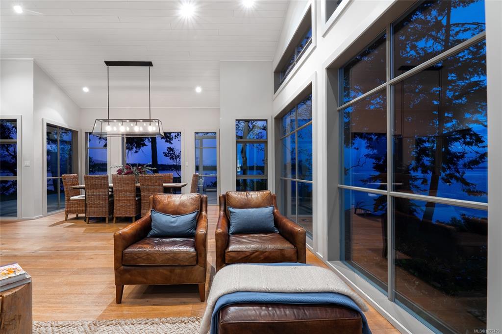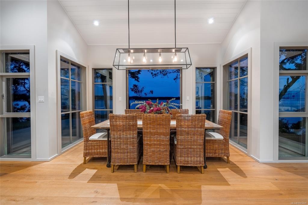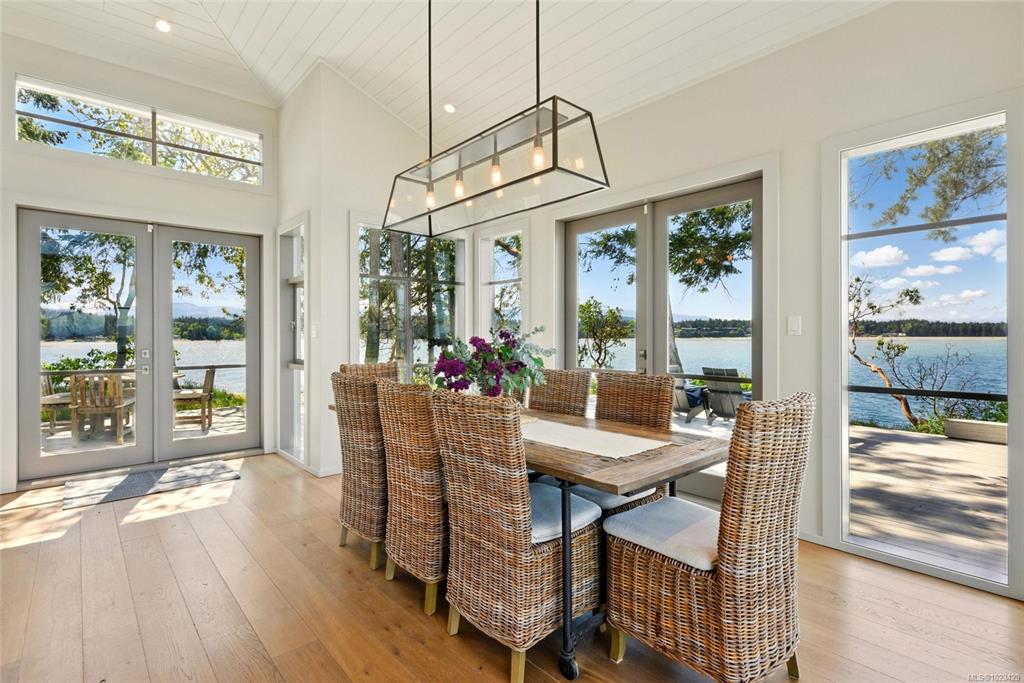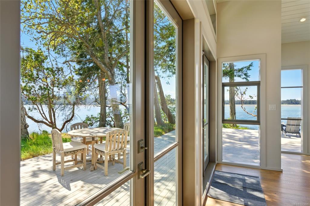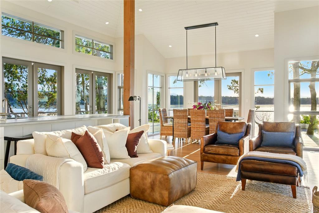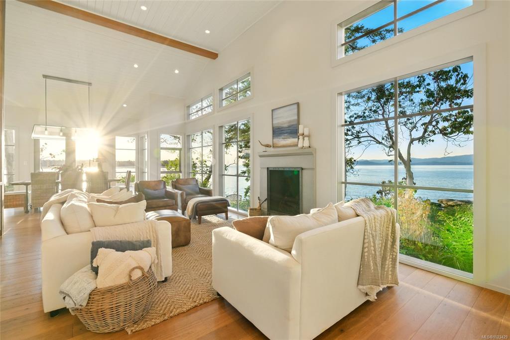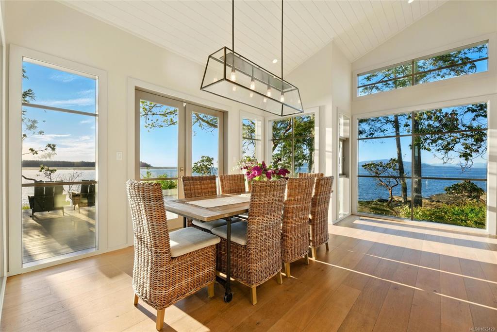 Located at the private tip of Madrona Point, this exceptional Nanoose Bay waterfront residence sits where parkland & the Pacific converge. Set on a tranquil 1/2 acre lot, the home blends classic Cape Cod influence with a refined coastal aesthetic, featuring soaring 14-foot pine ceilings, fir posts, beams & radiant in-floor heating. The open-concept main level is anchored by a striking 12-foot custom concrete island & floor-to-ceiling windows that frame uninterrupted ocean views. A wood-burning fireplace add...