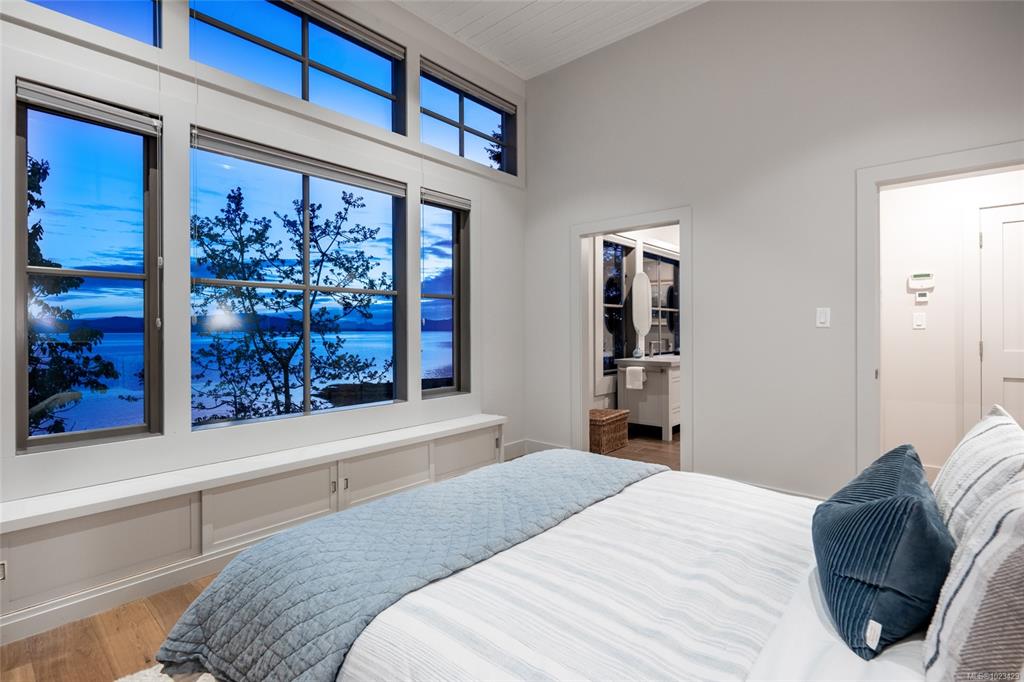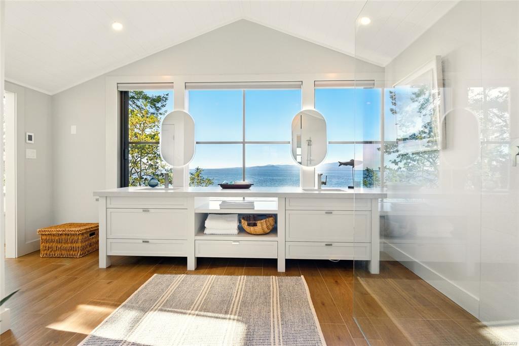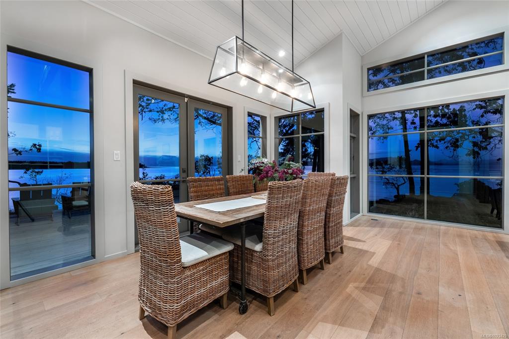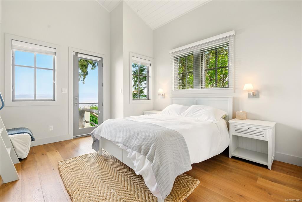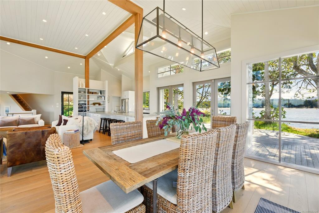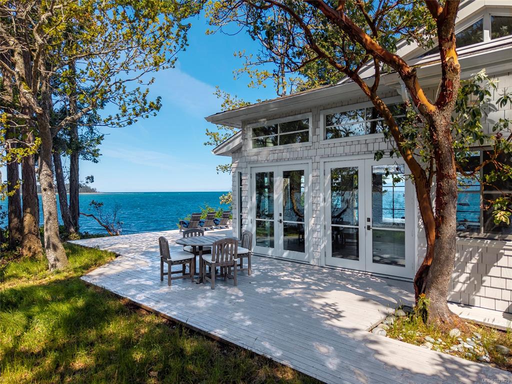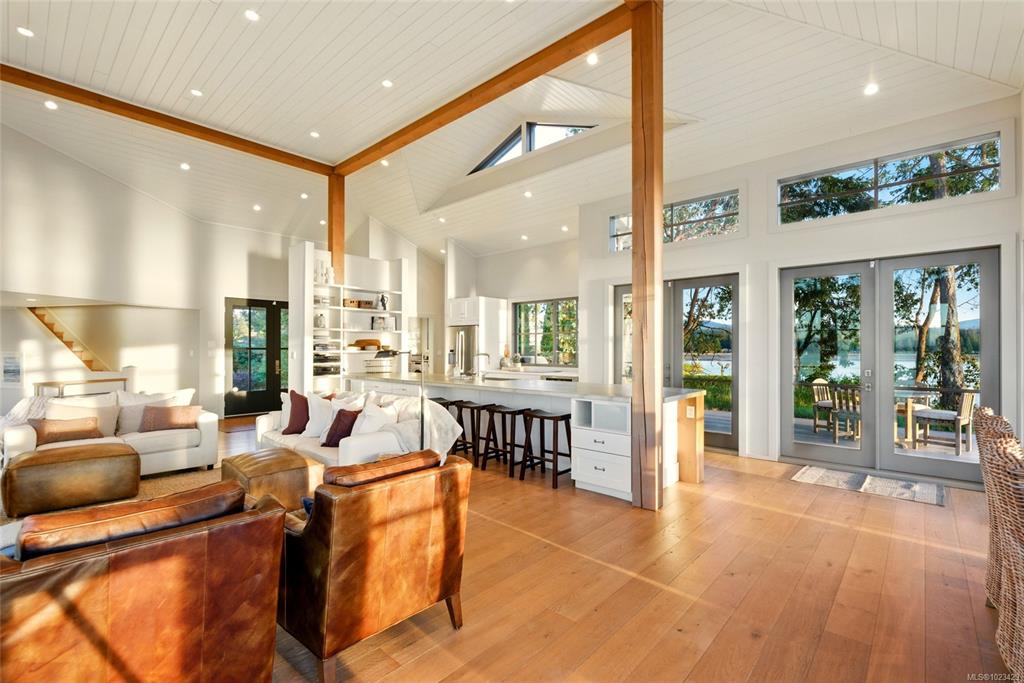 Located at the private tip of Madrona Point, this exceptional Nanoose Bay waterfront residence sits where parkland & the Pacific converge. Set on a tranquil 1/2 acre lot, the home blends classic Cape Cod influence with a refined coastal aesthetic, featuring soaring 14-foot pine ceilings, fir posts, beams & radiant in-floor heating. The open-concept main level is anchored by a striking 12-foot custom concrete island & floor-to-ceiling windows that frame uninterrupted ocean views. A wood-burning fireplace add...