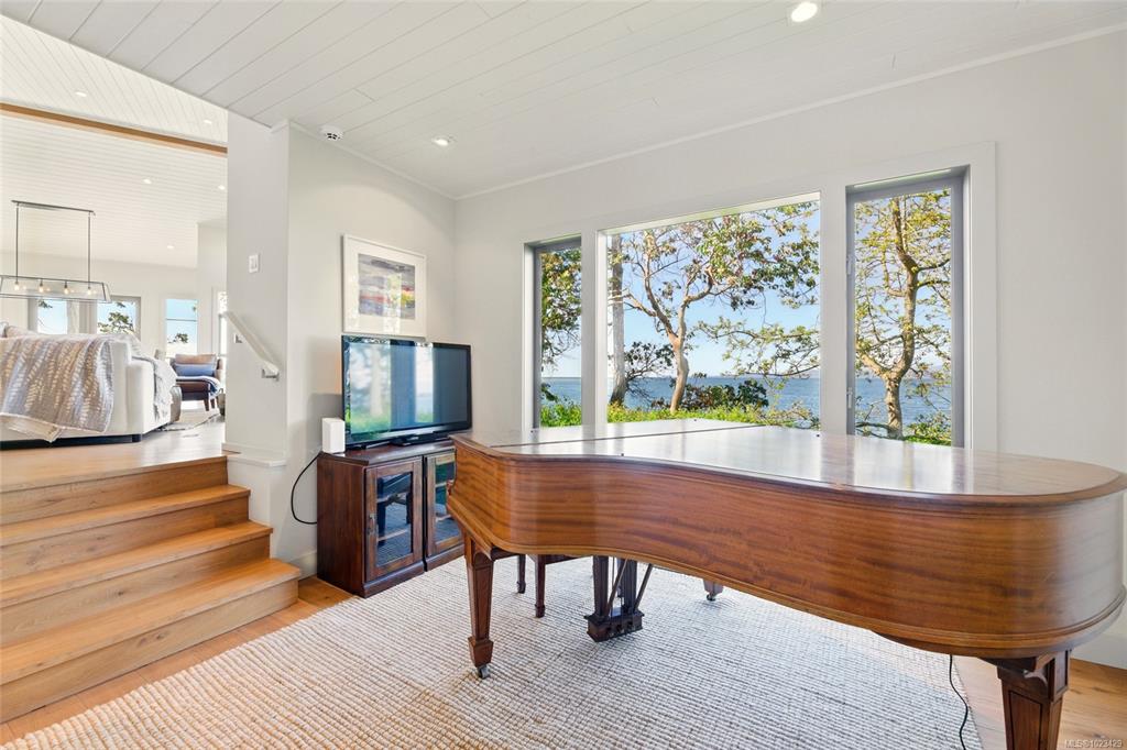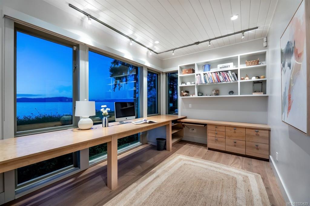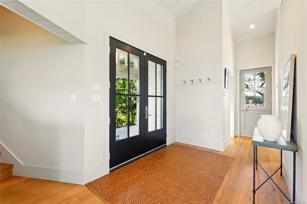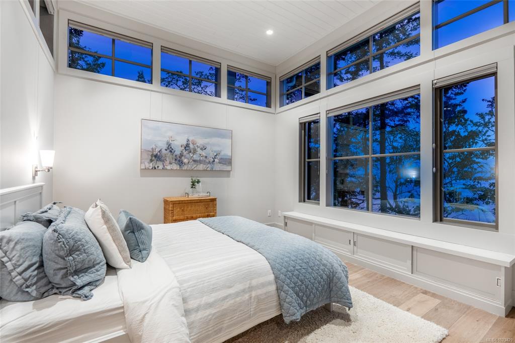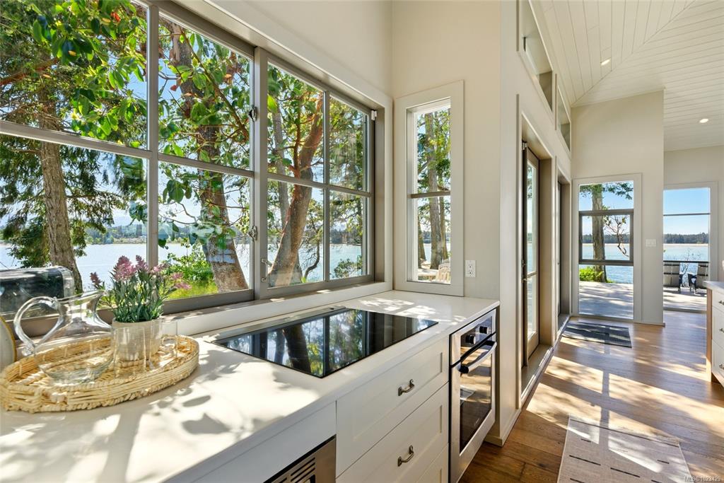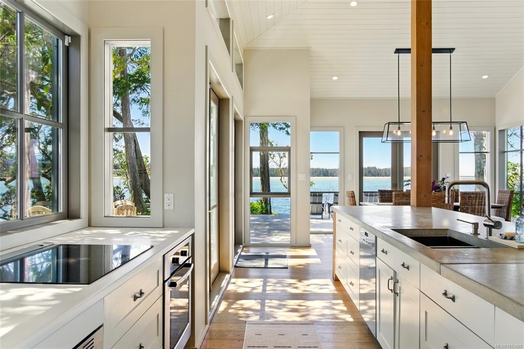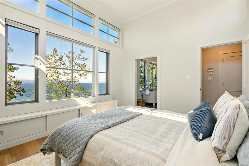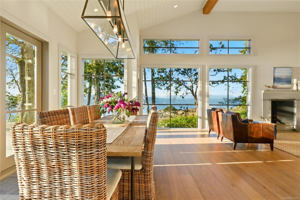 Located at the private tip of Madrona Point, this exceptional Nanoose Bay waterfront residence sits where parkland & the Pacific converge. Set on a tranquil 1/2 acre lot, the home blends classic Cape Cod influence with a refined coastal aesthetic, featuring soaring 14-foot pine ceilings, fir posts, beams & radiant in-floor heating. The open-concept main level is anchored by a striking 12-foot custom concrete island & floor-to-ceiling windows that frame uninterrupted ocean views. A wood-burning fireplace add...
