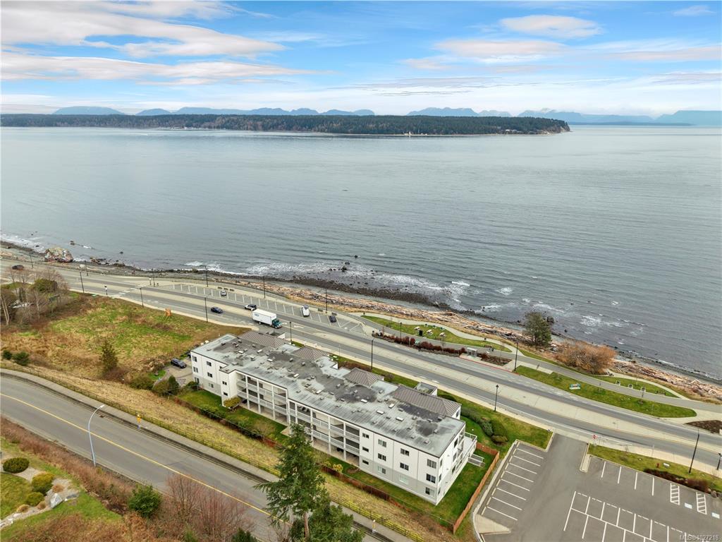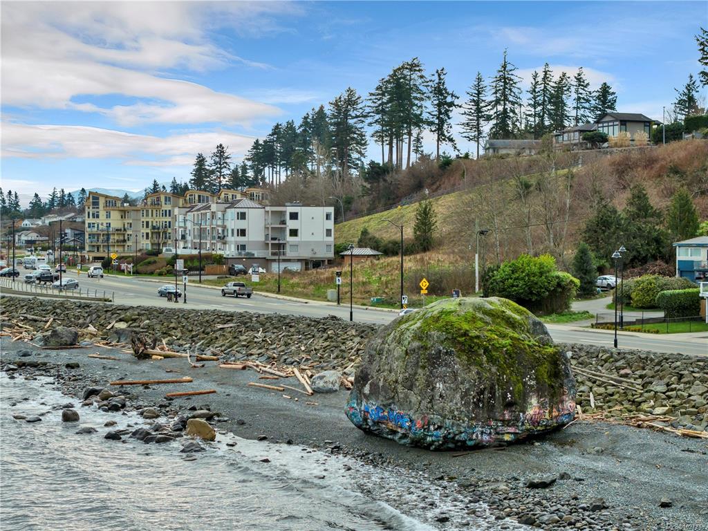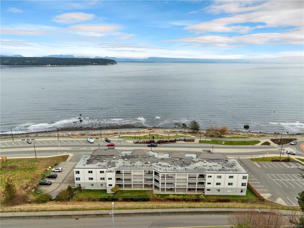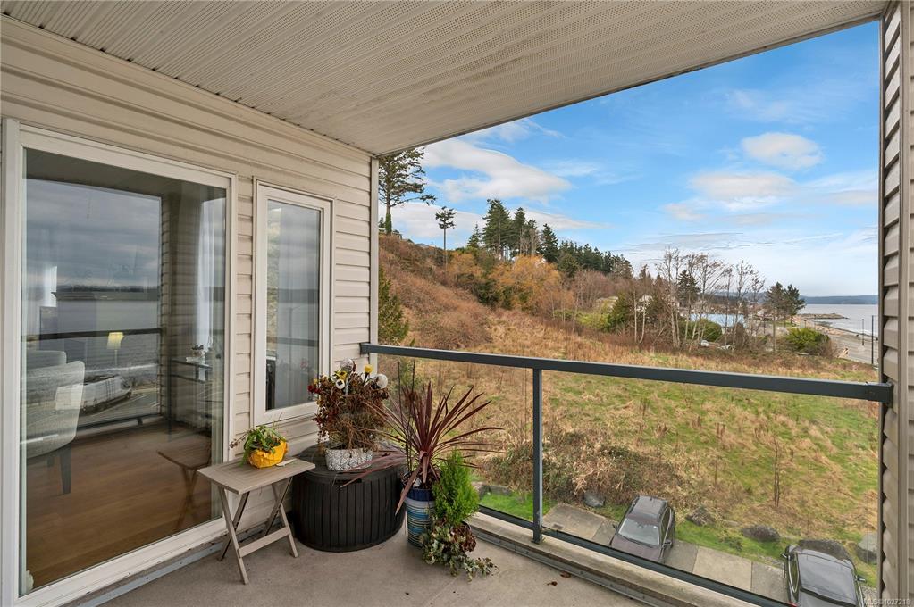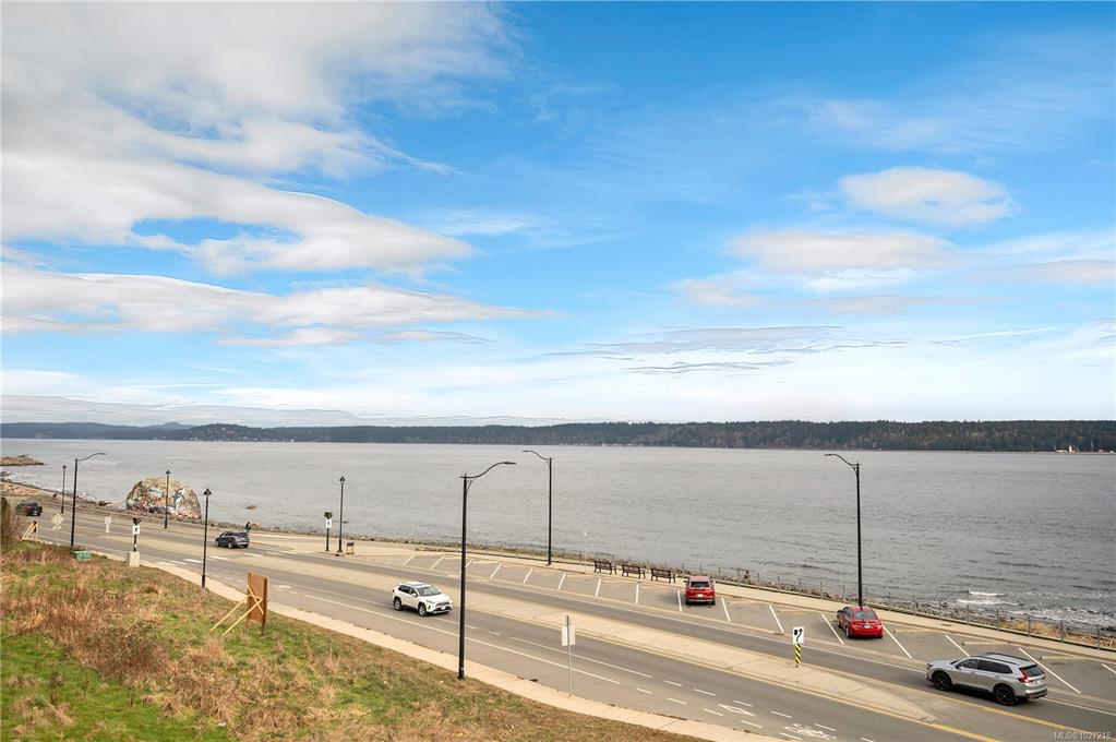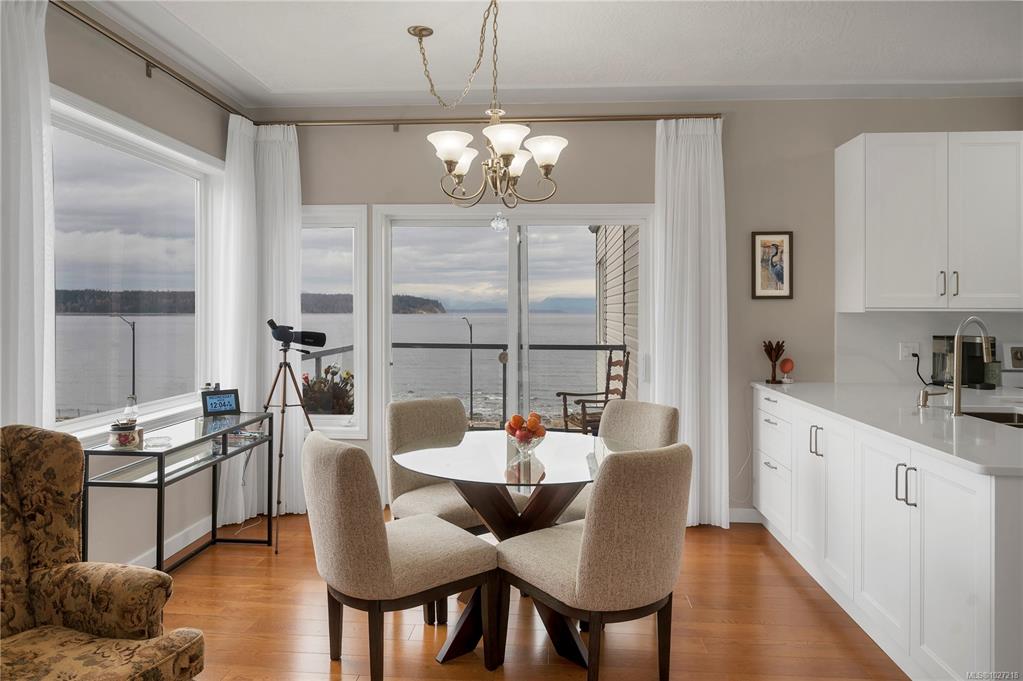 Ocean-view, top-floor corner suite with stunning kitchen and bath renovations! Take in marine views of Quadra Island, the lighthouse, and passing boats. The show-stopping kitchen features new cabinetry, quartz counters and backsplash and flooring. Both bathrooms shine with quartz vanities, new flooring, and further updates. Bedrooms are private, facing a grassy bank with beautiful natural light. Hardwood floors highlight the bright corner windows and cozy gas fireplace. Enjoy a covered entry just two steps ...