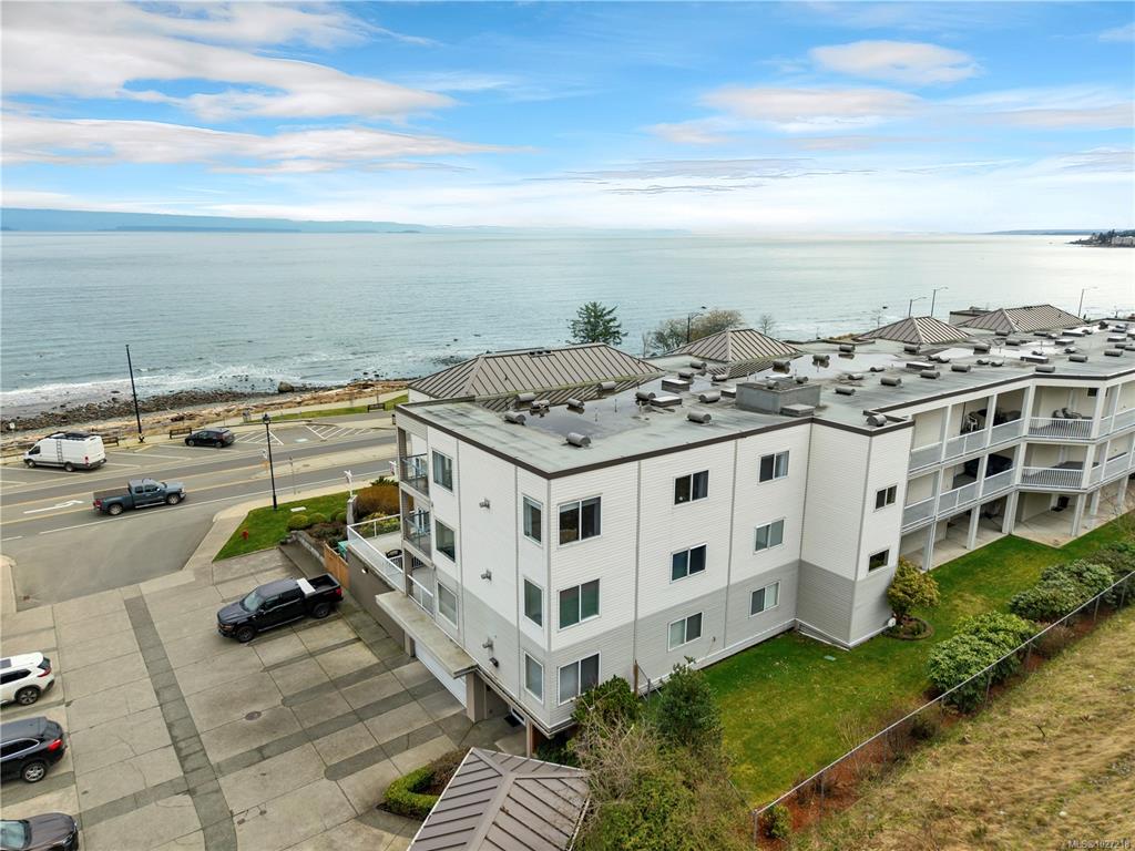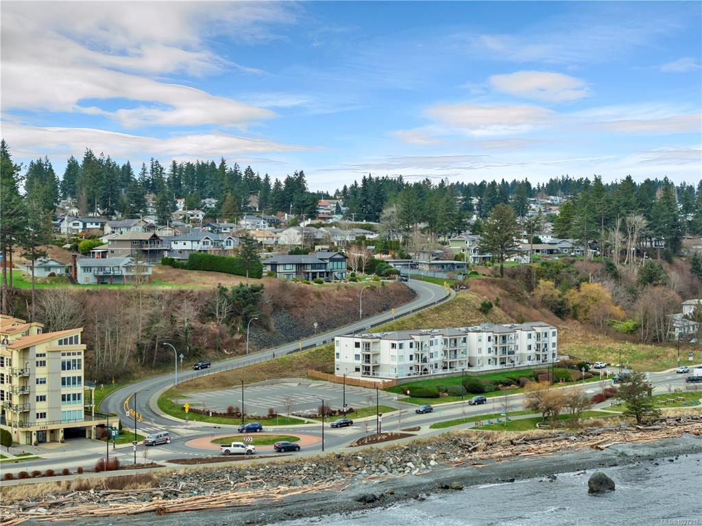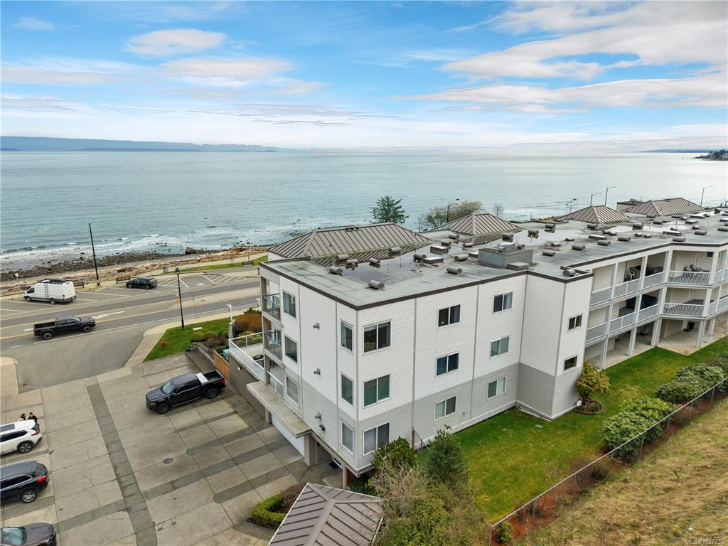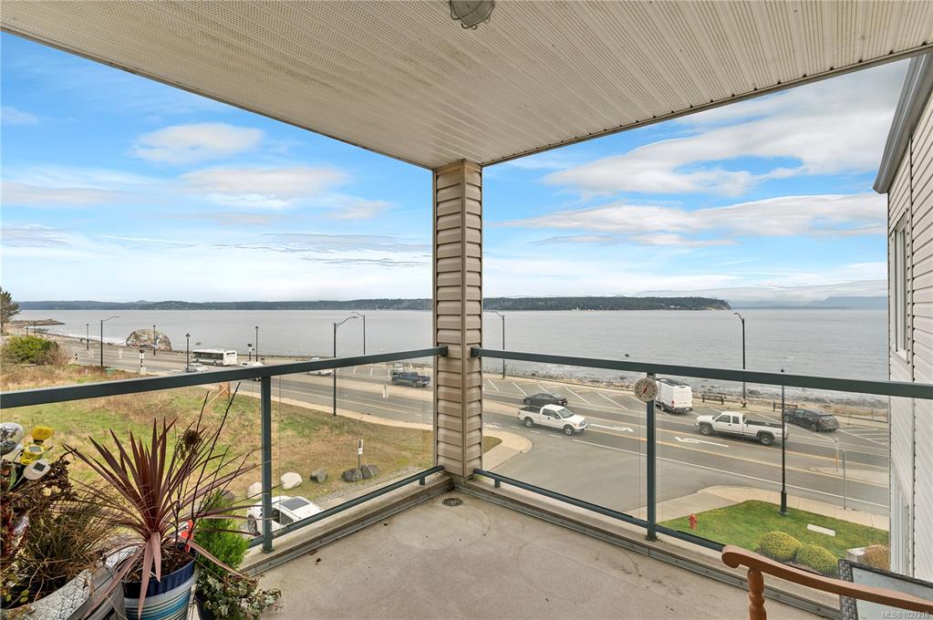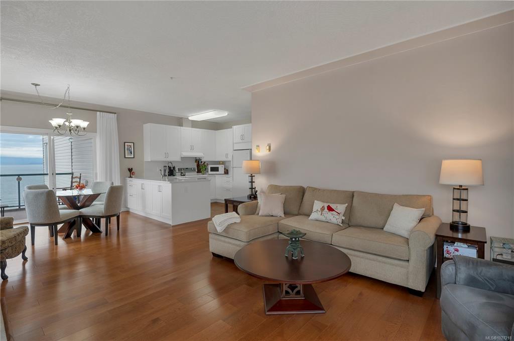 Ocean-view, top-floor corner suite with stunning kitchen and bath renovations! Take in marine views of Quadra Island, the lighthouse, and passing boats. The show-stopping kitchen features new cabinetry, quartz counters and backsplash and flooring. Both bathrooms shine with quartz vanities, new flooring, and further updates. Bedrooms are private, facing a grassy bank with beautiful natural light. Hardwood floors highlight the bright corner windows and cozy gas fireplace. Enjoy a covered entry just two steps ...