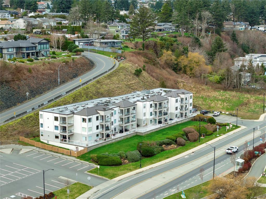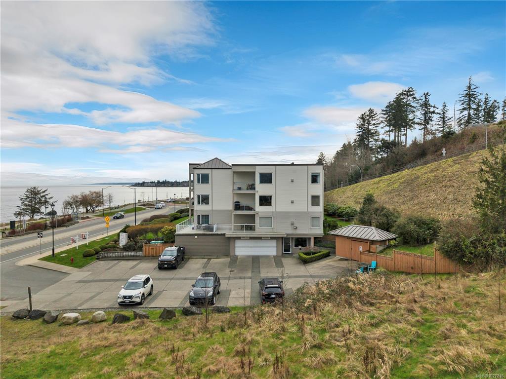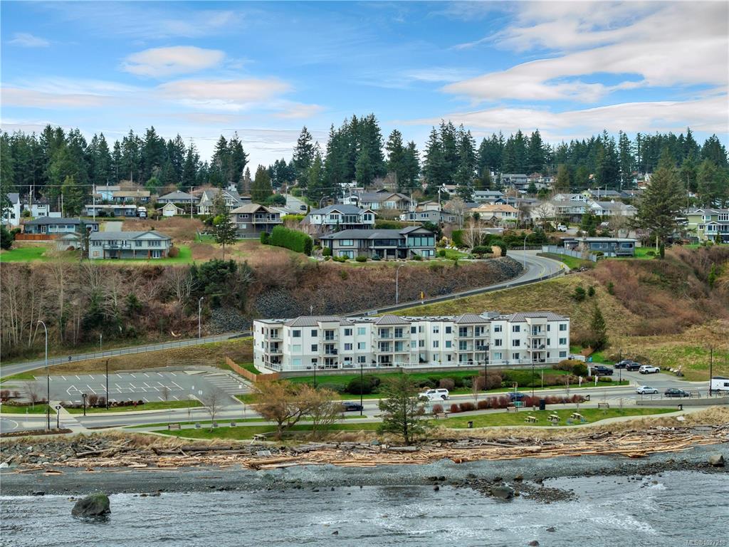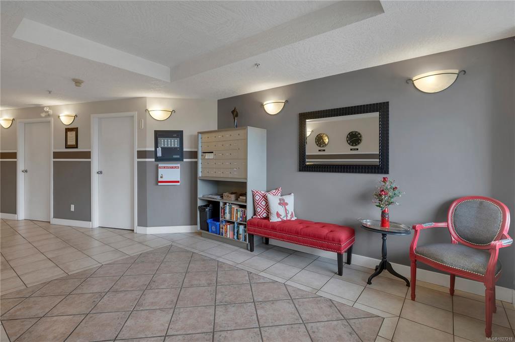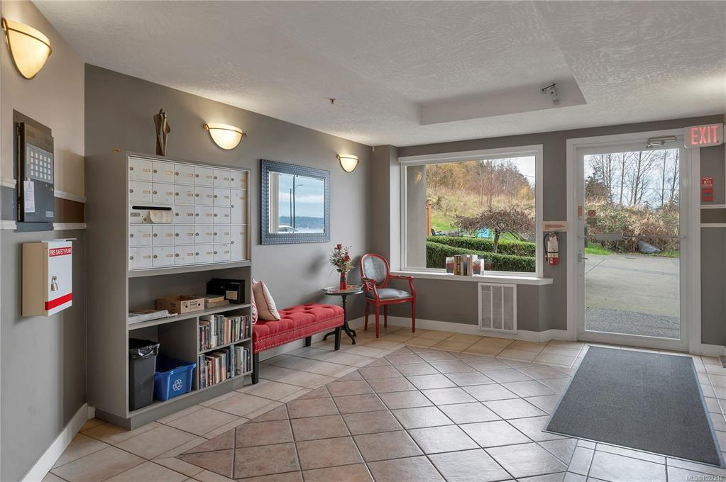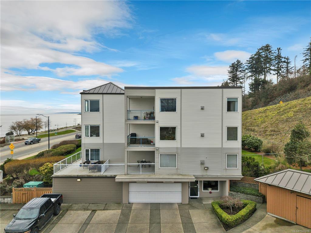 Ocean-view, top-floor corner suite with stunning kitchen and bath renovations! Take in marine views of Quadra Island, the lighthouse, and passing boats. The show-stopping kitchen features new cabinetry, quartz counters and backsplash and flooring. Both bathrooms shine with quartz vanities, new flooring, and further updates. Bedrooms are private, facing a grassy bank with beautiful natural light. Hardwood floors highlight the bright corner windows and cozy gas fireplace. Enjoy a covered entry just two steps ...