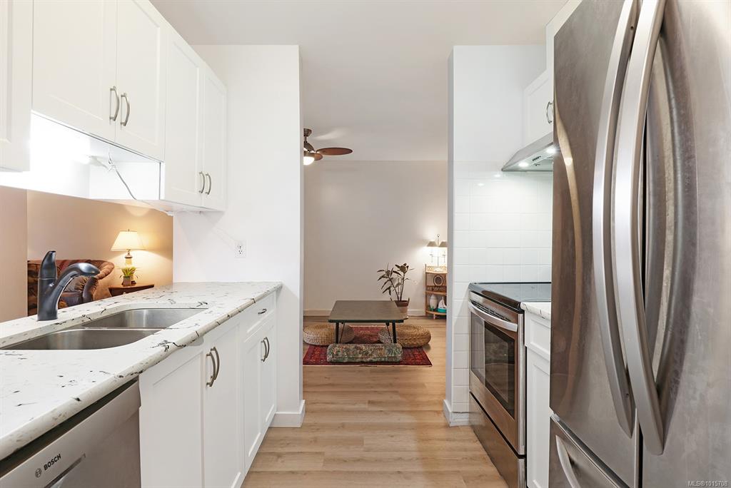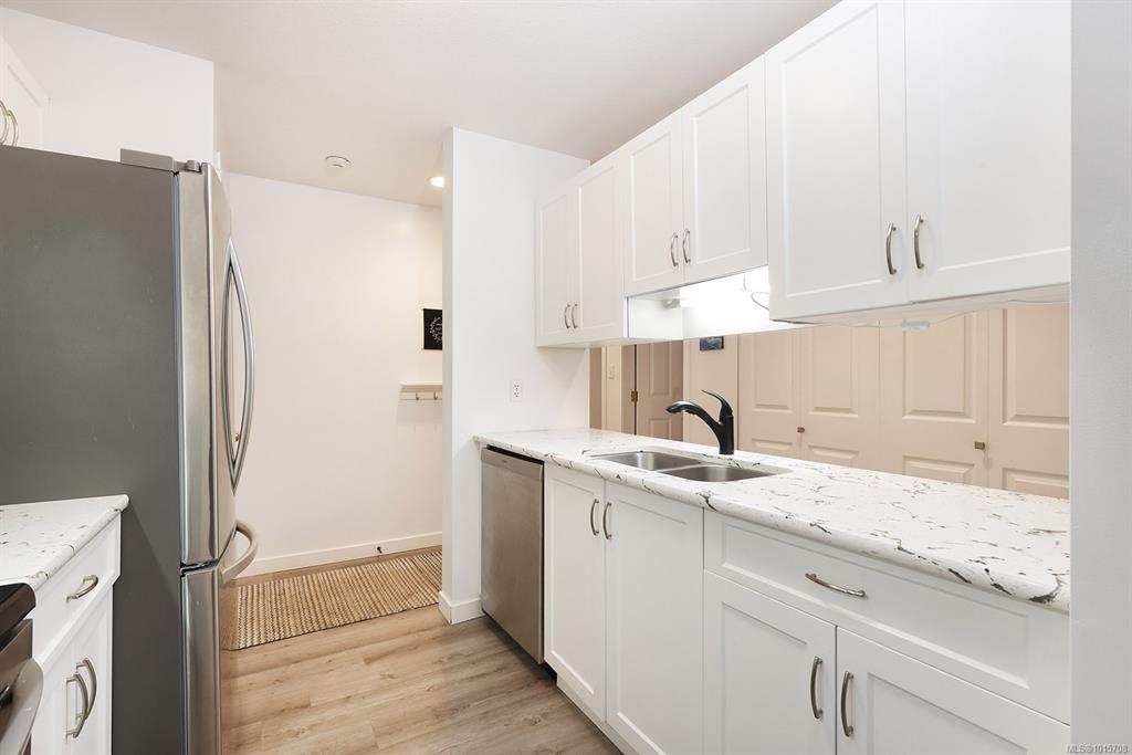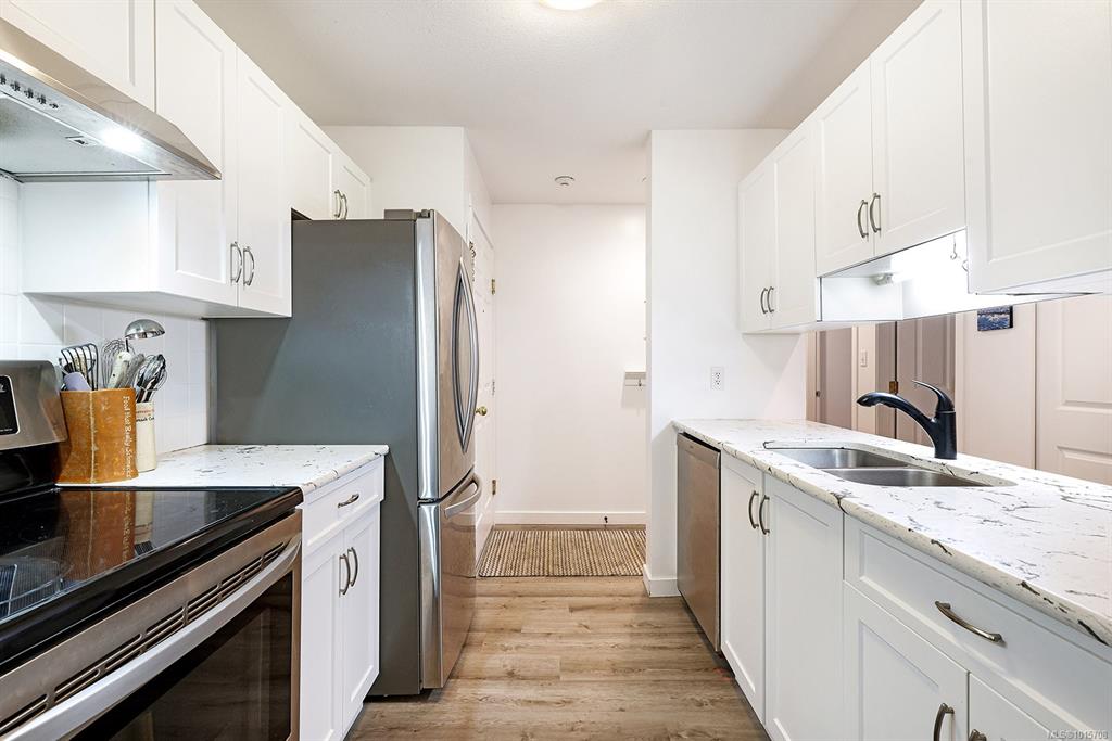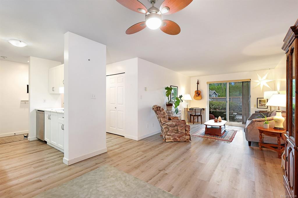 Check out this well kept 2 bedroom, 1 bathroom ground-floor condo in Craigmark Place with 936 sqft of functional living space. Features include newer laminate flooring, open living/dining area, modern kitchen with stainless appliances, and an updated 4-piece bath. Two good size bedrooms, plus in-suite laundry for convenience. Enjoy a private patio with sliding door access. One dog or cat allowed, no age restrictions, and rentals permitted. Convenient location close to downtown Courtenay.