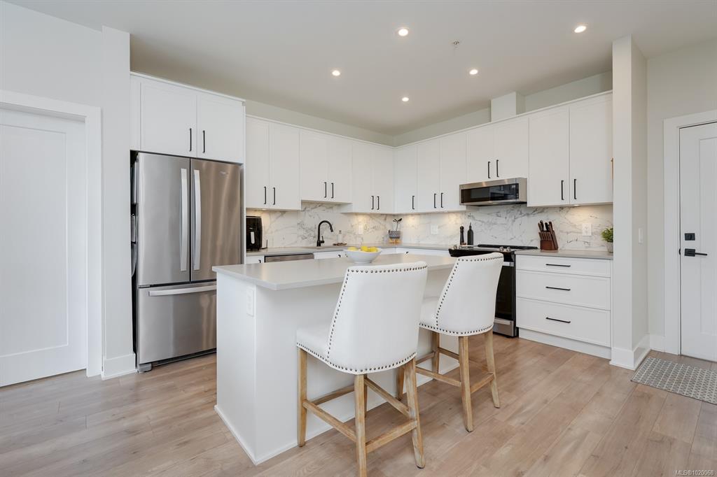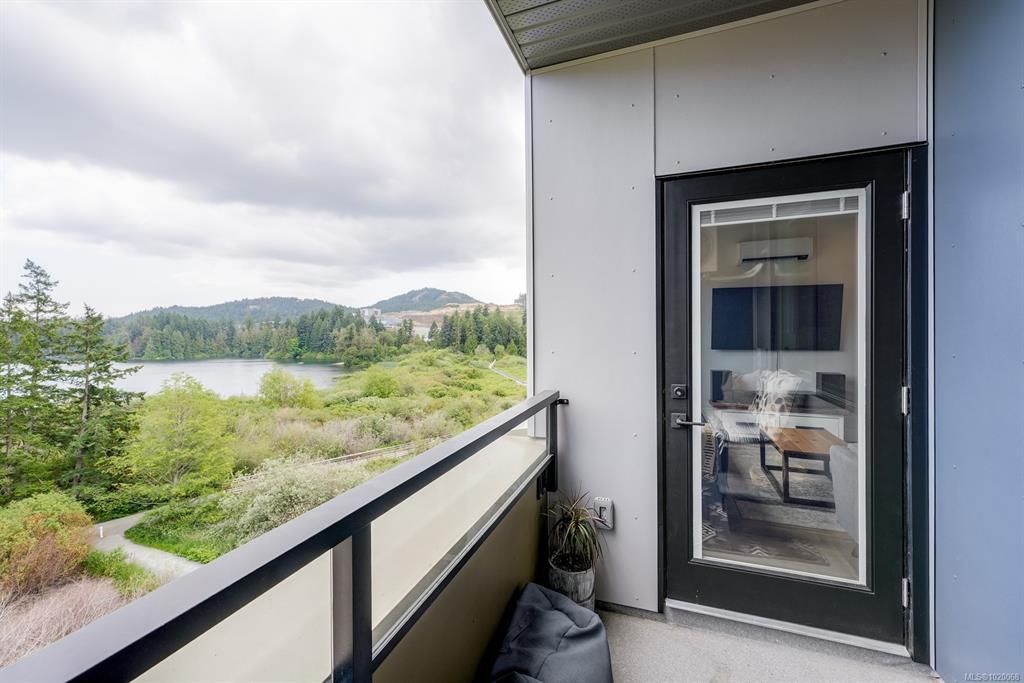 Gorgeous, peaceful lake view, top floor condo w/quality finishings & superb layout! Chef’s kitchen w/abundant counter & cupboard space, quartz counters & huge island eating bar - entertain friends & family! Relax in the living rm & gaze out at protected green space & spectacular Langford Lake! Primary w/upgraded walk thru closet & deluxe ensuite w/quartz, double sink & large shower. Floorplan provides nice separation of BR’s. 9ft ceilings create an airy feel. Top flr ensures extra peace & quiet. South expos...
