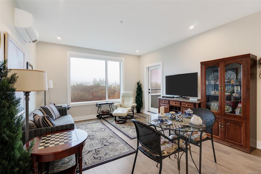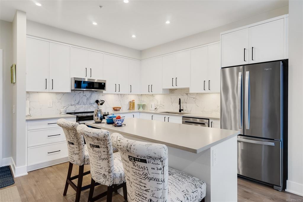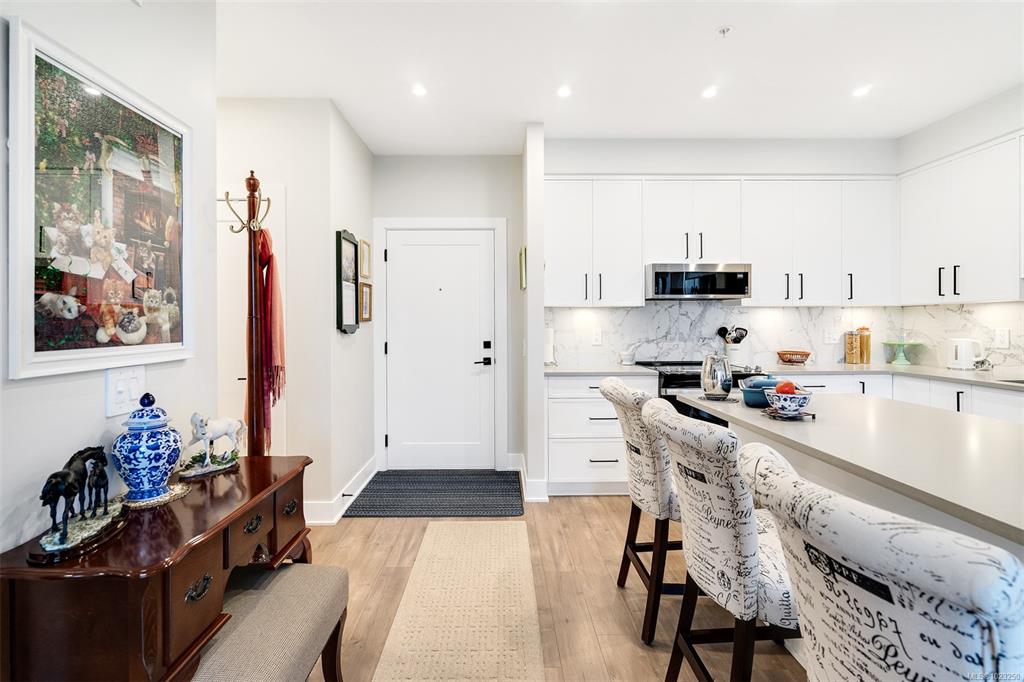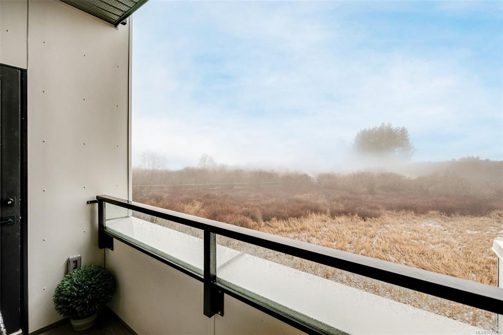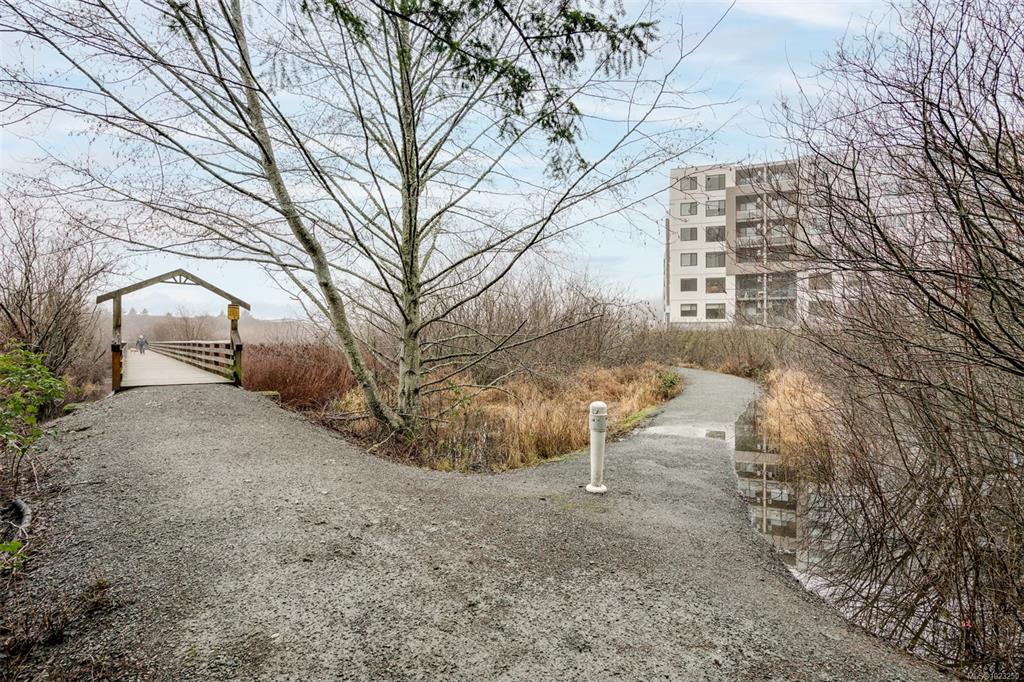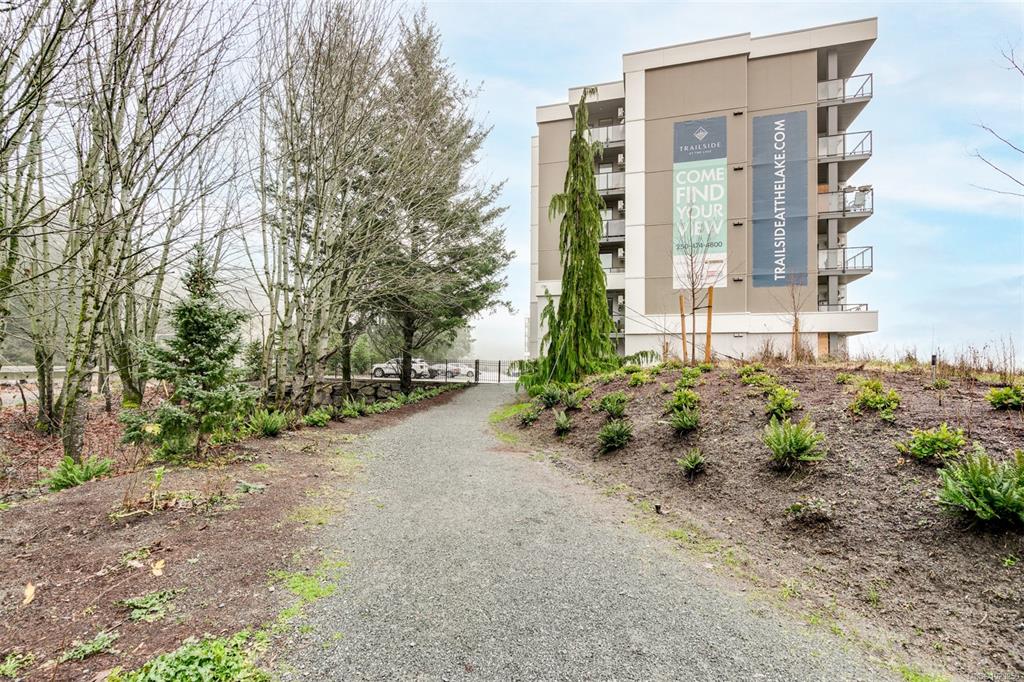 Enjoy lush green views toward Langford Lake overlooking the Ed Nixon trail from this nearly new suite at ‘Trailside at the Lake’. This quality 2023 built two bedroom/two bath suite offers an attractive open plan layout with 9ft ceilings, large southwest facing windows and balcony, great separation of bedrooms and bright modern finishes throughout. Those who love to cook will really appreciate the spacious kitchen with ample storage and quartz countertop workspace including the large island eating bar. Heat...