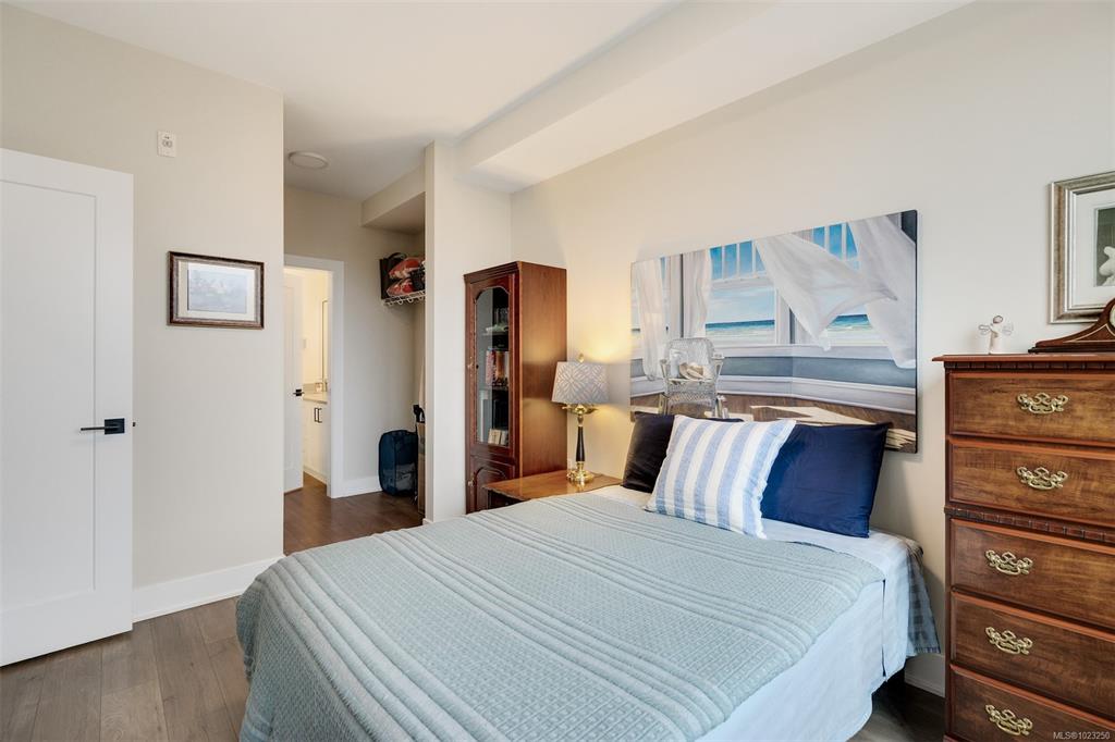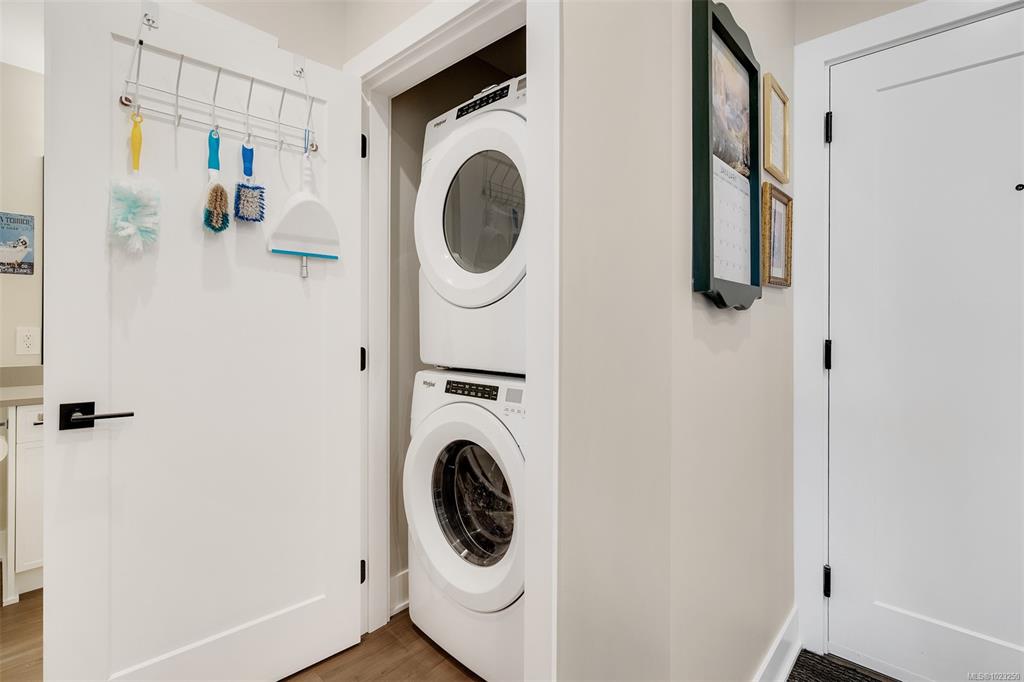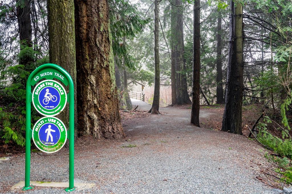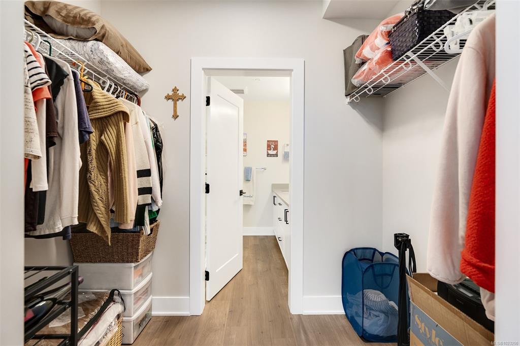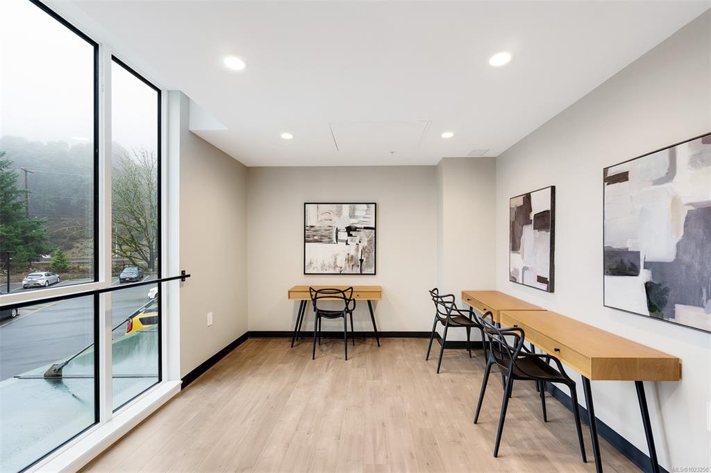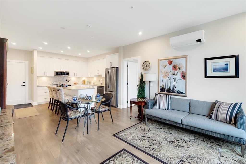 Enjoy lush green views toward Langford Lake overlooking the Ed Nixon trail from this nearly new suite at ‘Trailside at the Lake’. This quality 2023 built two bedroom/two bath suite offers an attractive open plan layout with 9ft ceilings, large southwest facing windows and balcony, great separation of bedrooms and bright modern finishes throughout. Those who love to cook will really appreciate the spacious kitchen with ample storage and quartz countertop workspace including the large island eating bar. Heat...