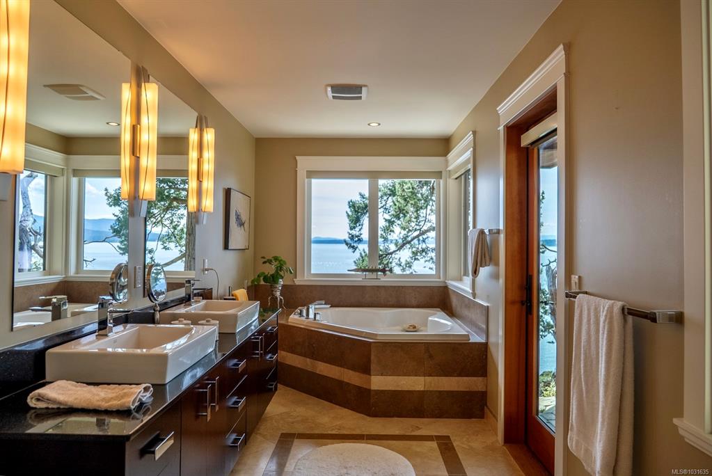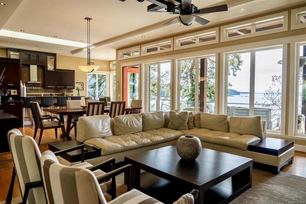 Madrona Grove is a rare and remarkable oceanfront estate, set within 4.42 acres of sunlit, arbutus-strewn landscape. The thoughtfully designed 2,617 sqft, 3 bed 3.5 bath custom rancher blends West Coast warmth with refined, contemporary design. The home is filled with natural light, anchored by a great room with soaring ceilings and floor-to-ceiling windows to enjoy the expansive ocean views with the ferries and passing boats adding to the ever-evolving coastal backdrop. Three ocean-side bedrooms, each w...